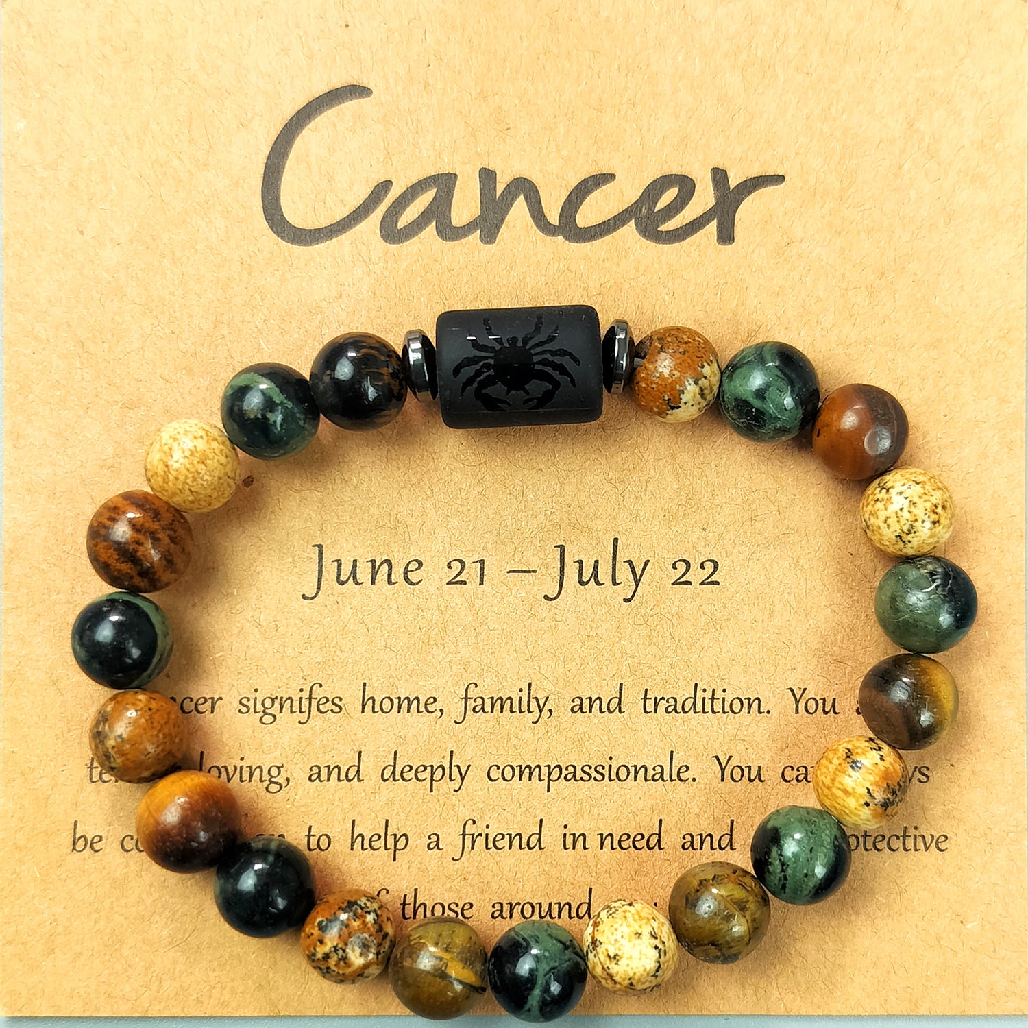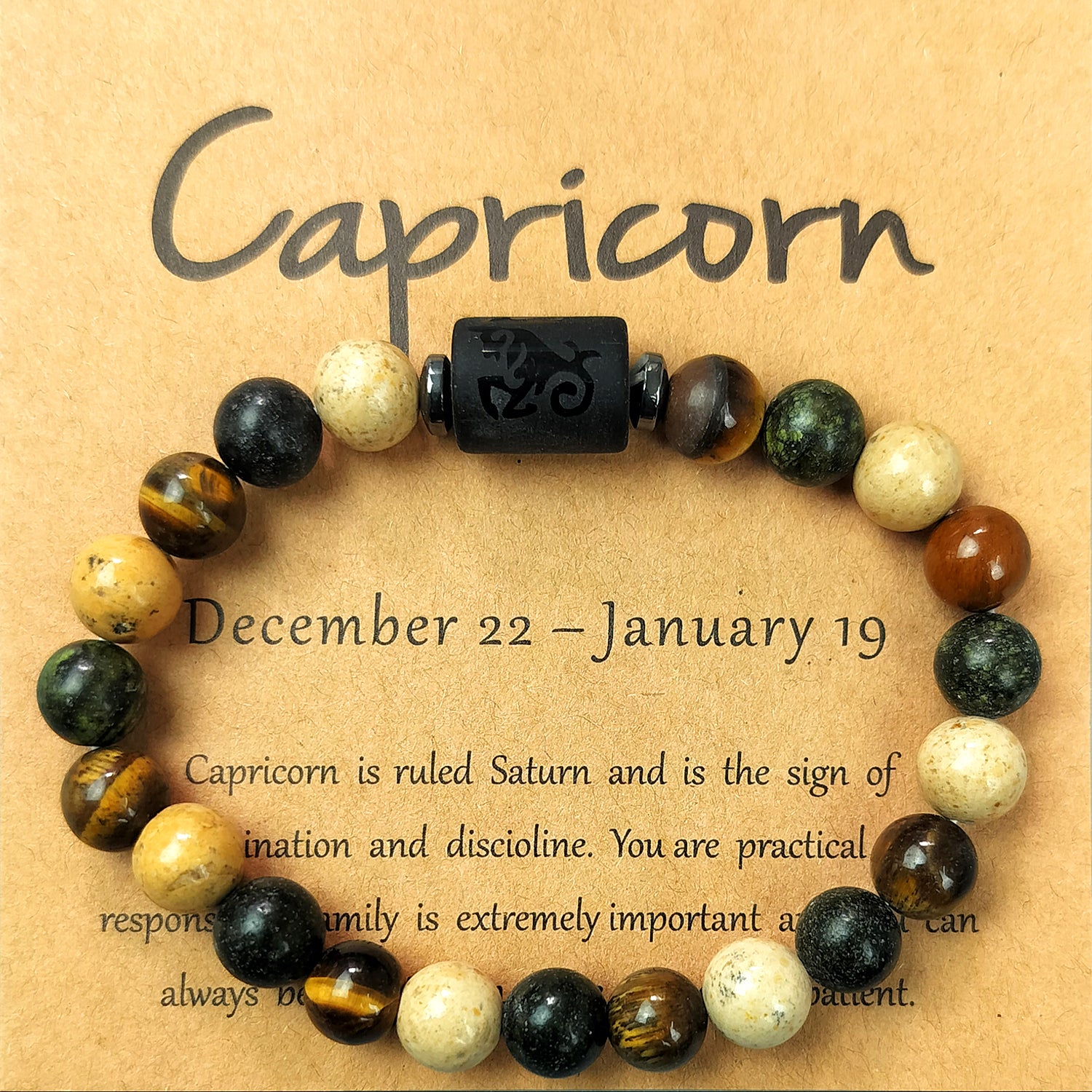 - Astrology charm stone bracelet features distinct designs for each zodiac sign