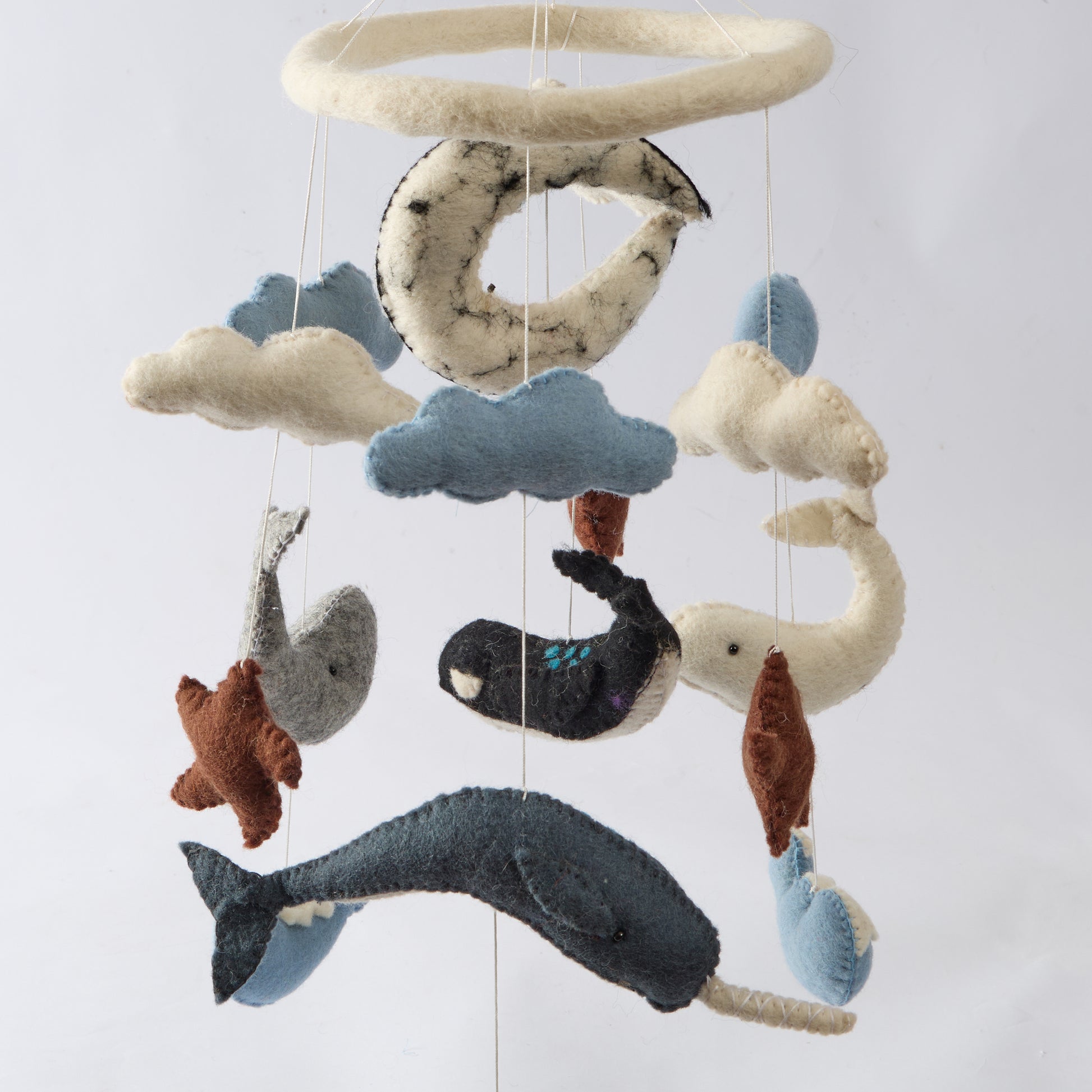 Animal Wool Felt Baby Mobile For Crib Children's & Nursery Room - Whale