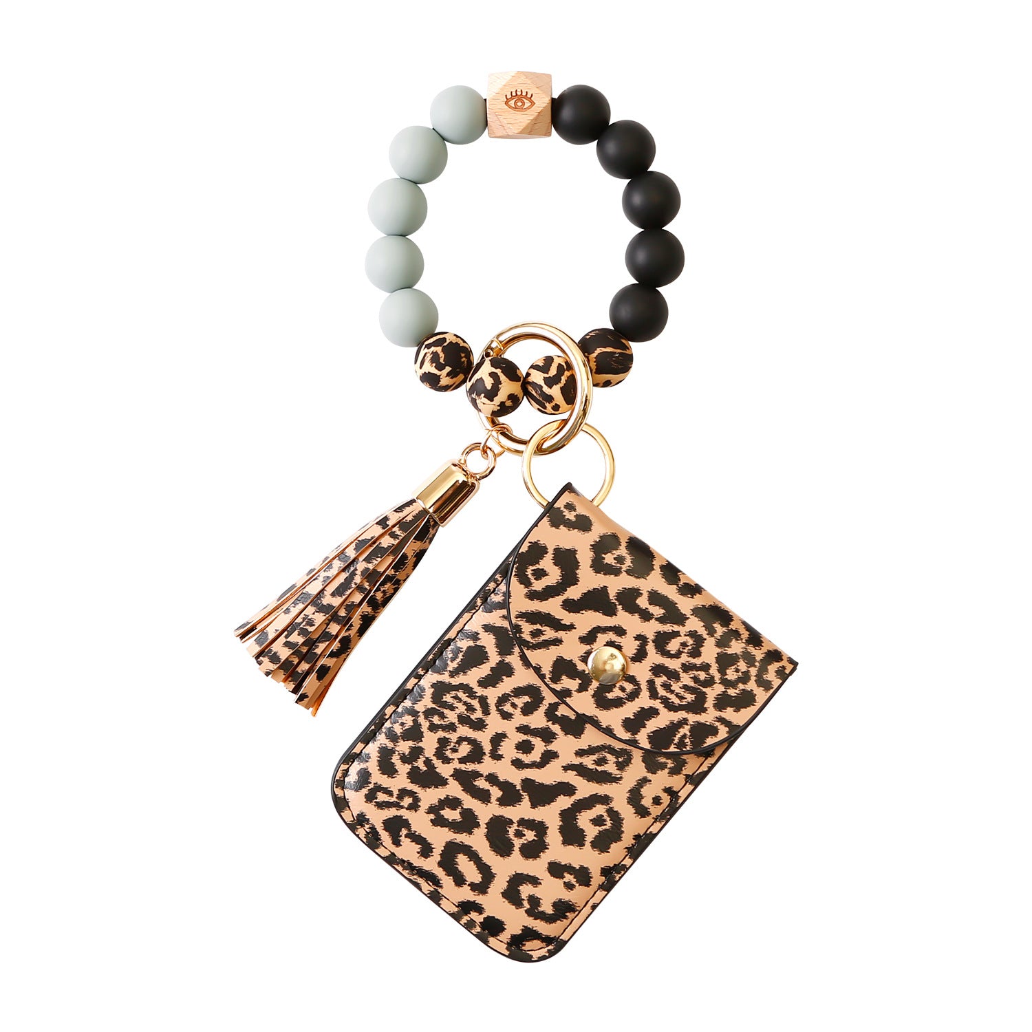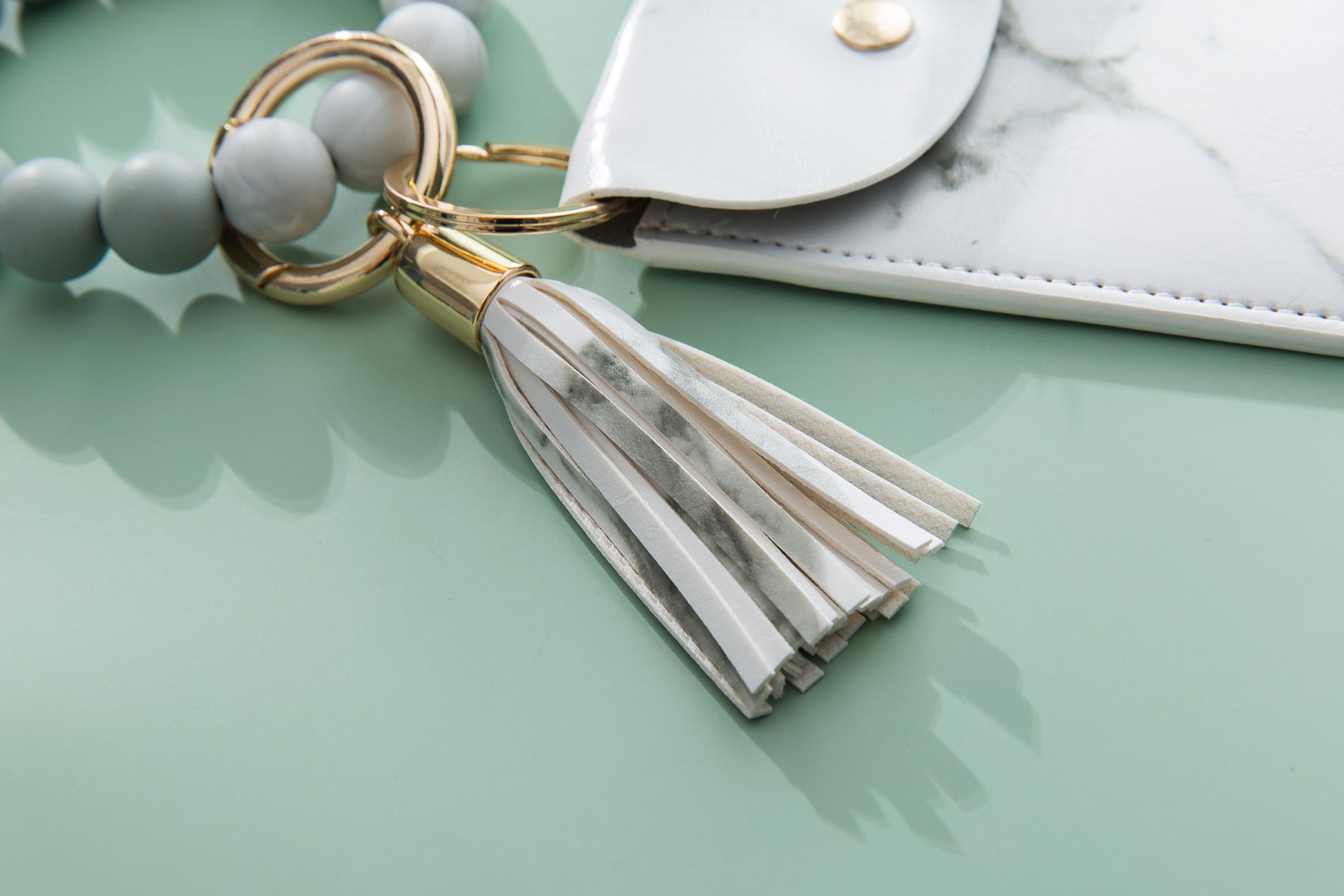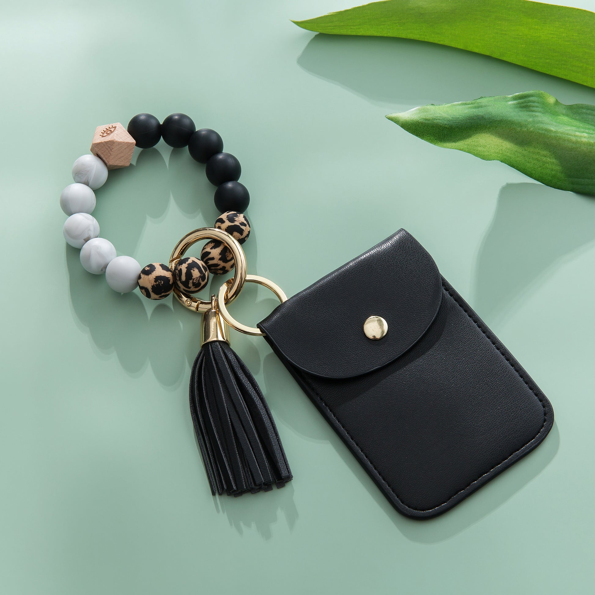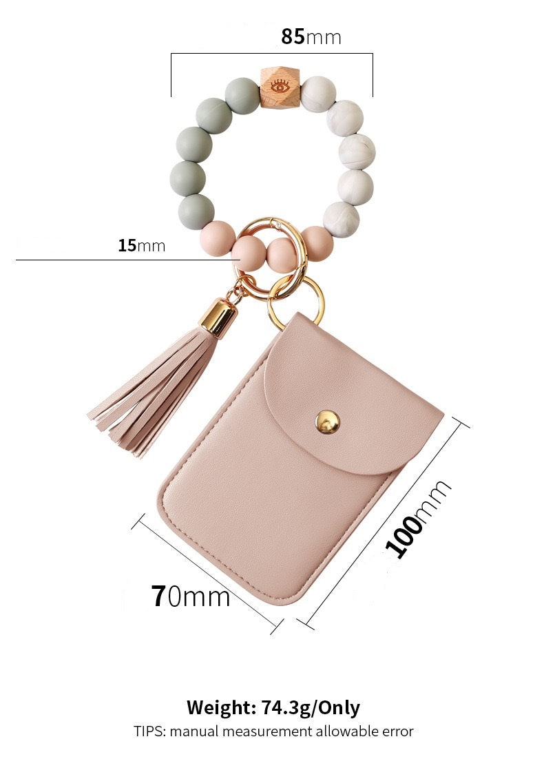 Silicone Beaded Tassel Bracelet Keychain - Card & Coin Purse Wallet (Laura)