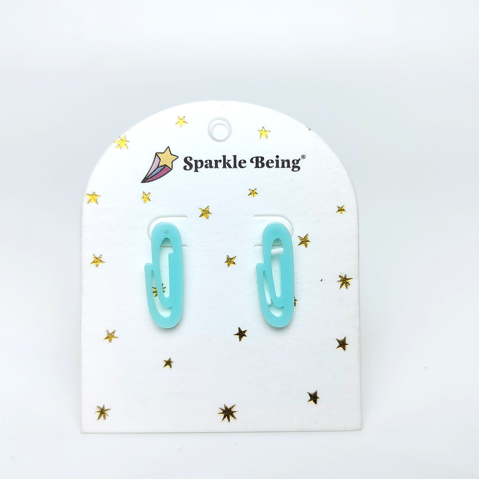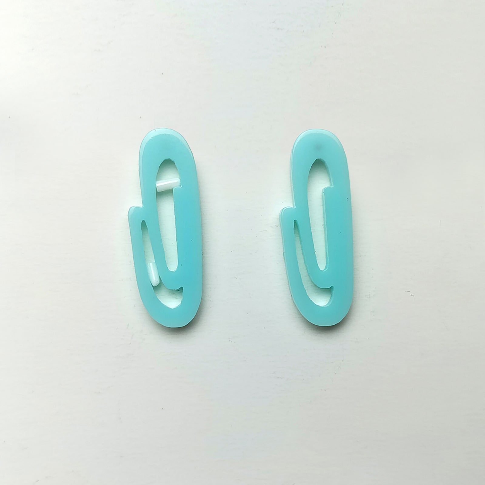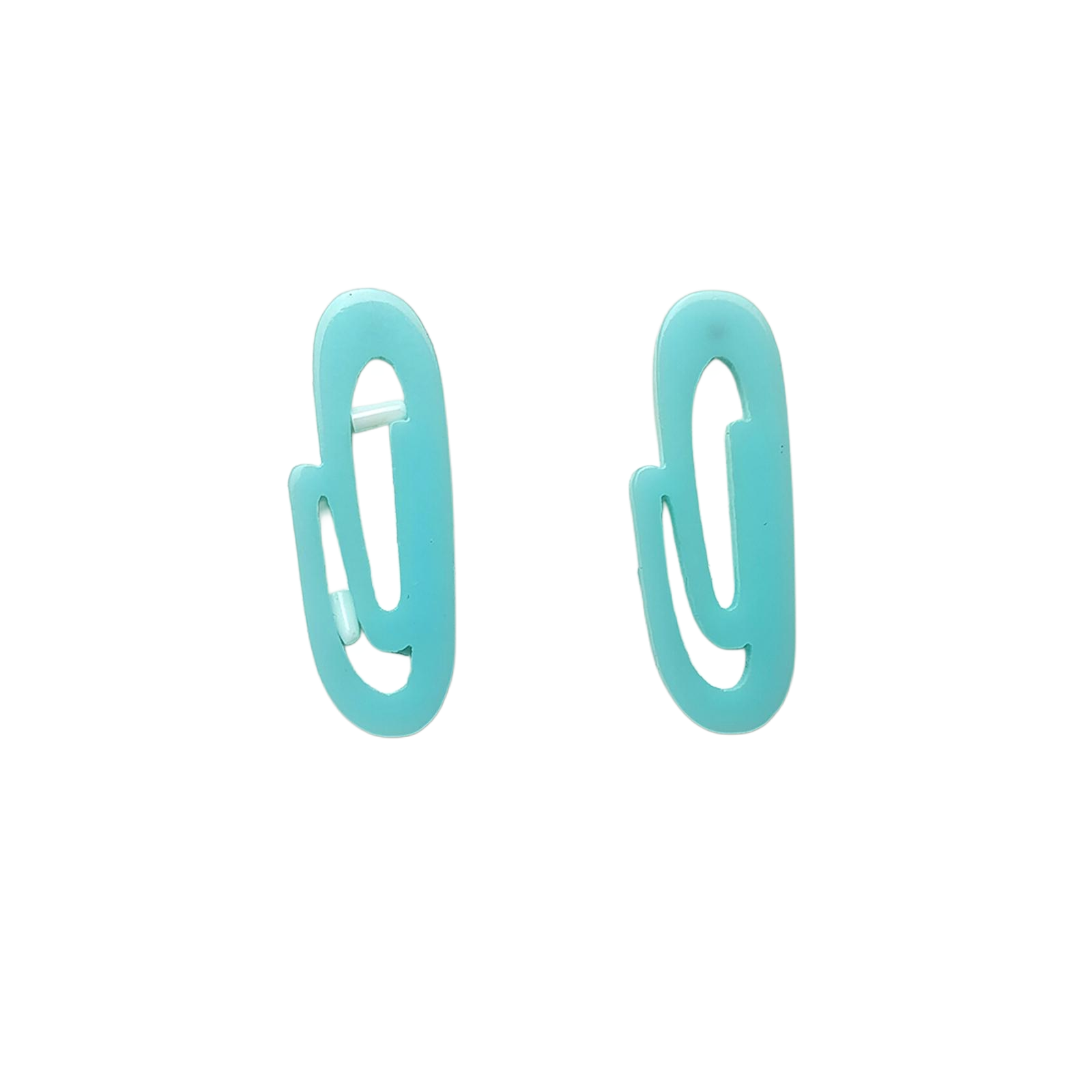 A clever twist on a classic office essential. These blue paperclip studs add a fun, minimalist pop of color to your everyday look. Lightweight and quirky, they’re perfect for students, teachers, or anyone who loves playful statement jewelry.