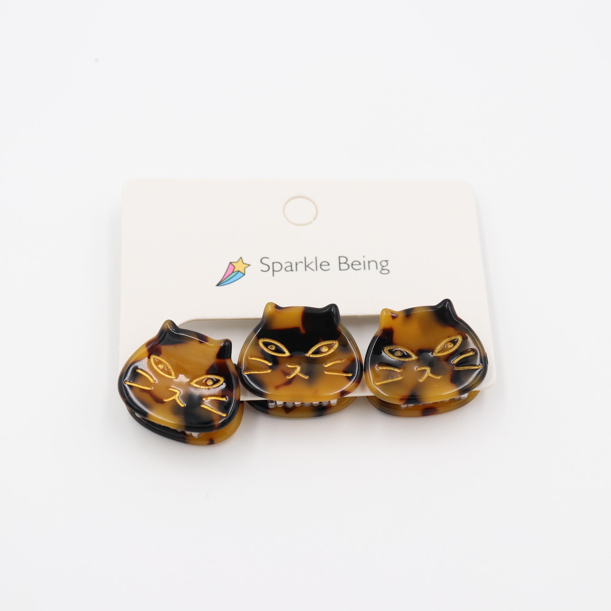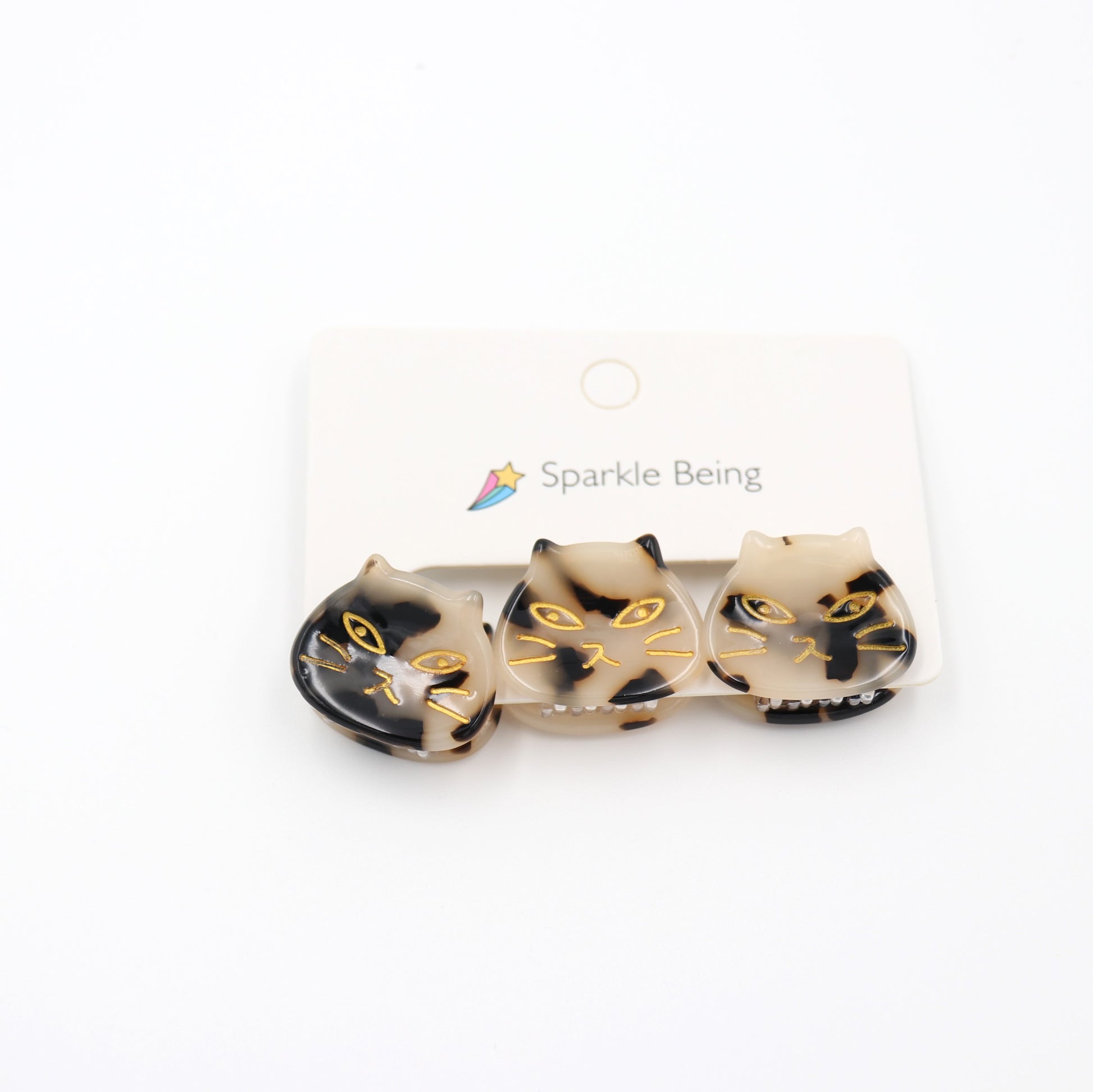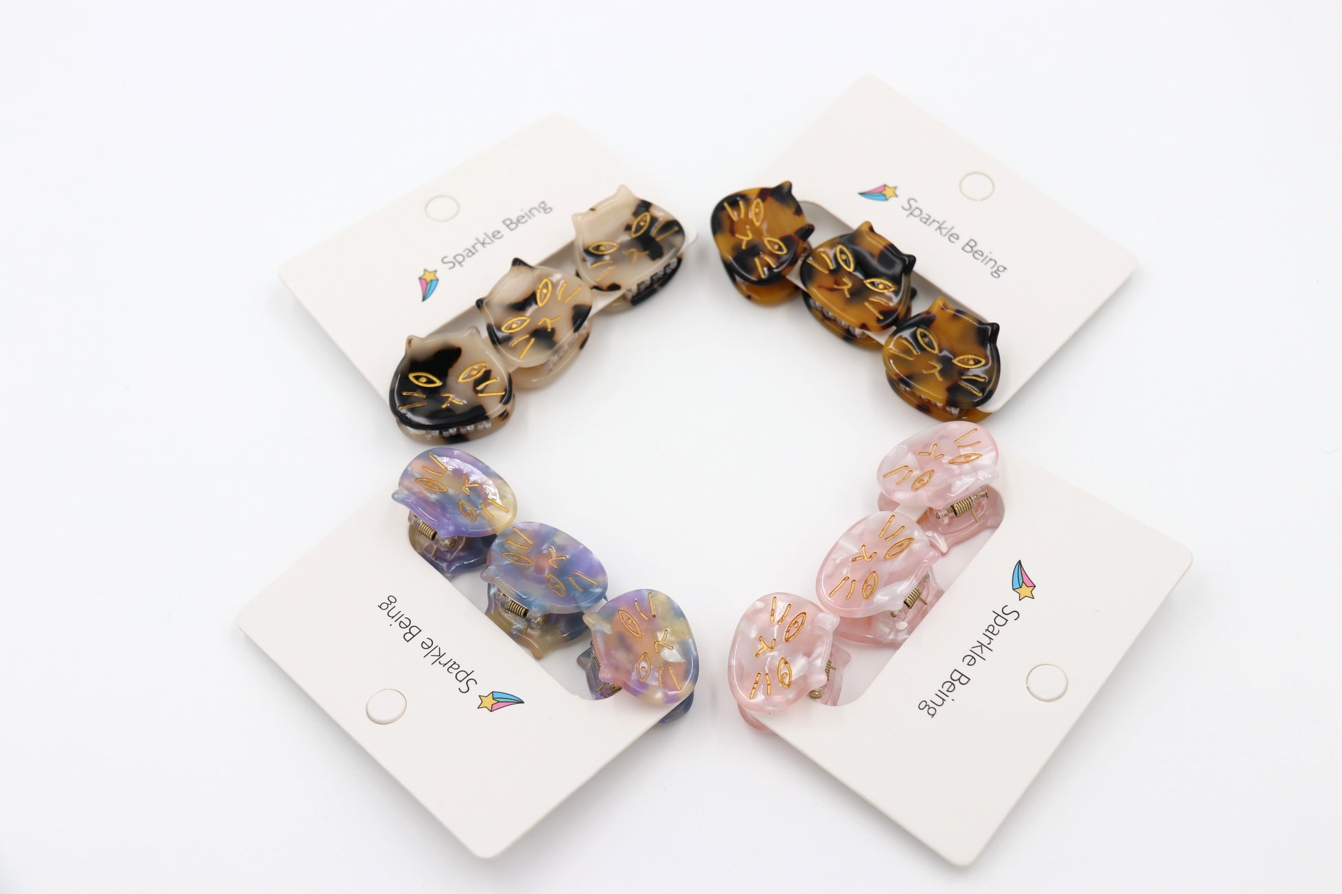 1 Inch Cat Head Acetate Hair Claw & Hair Clip - Set of 3