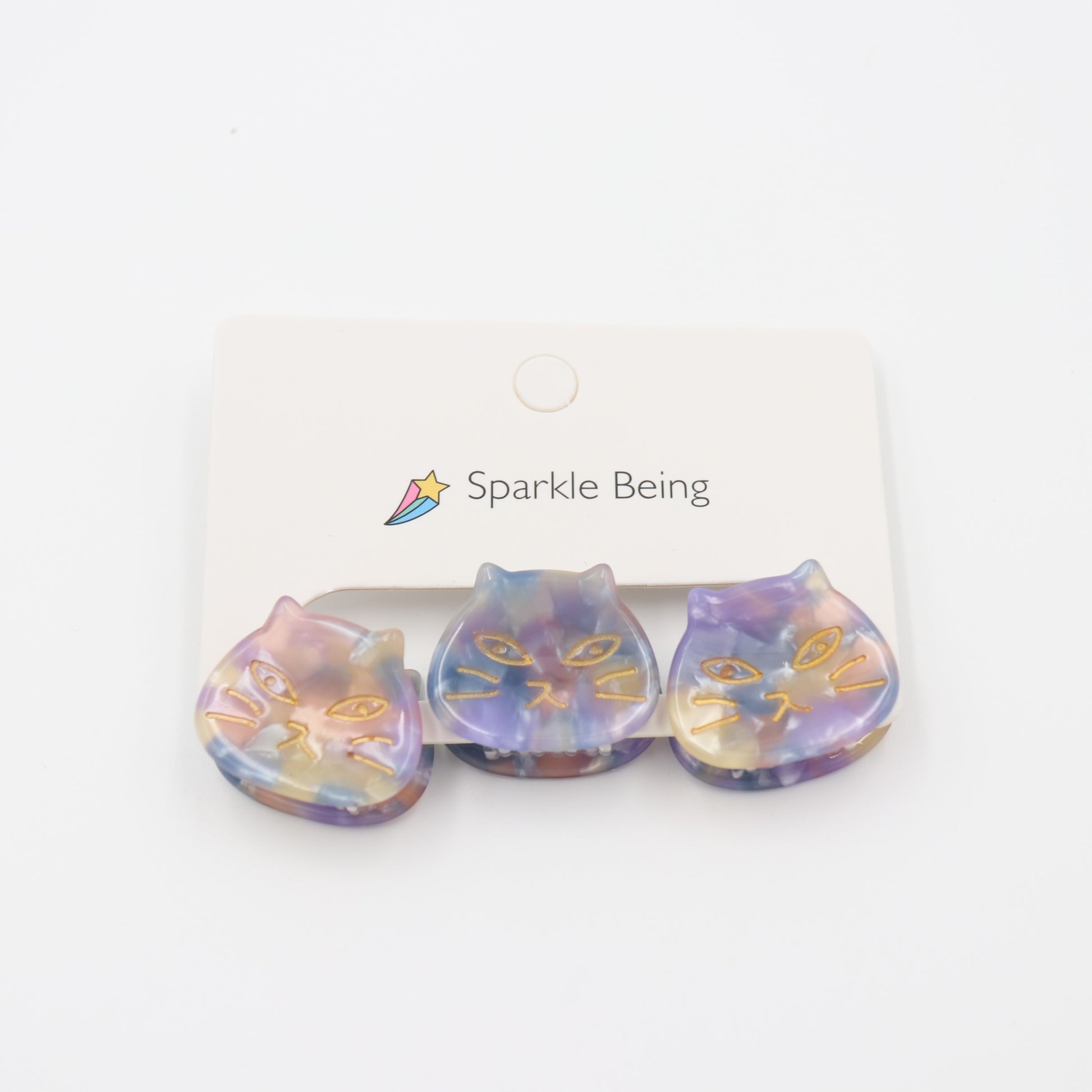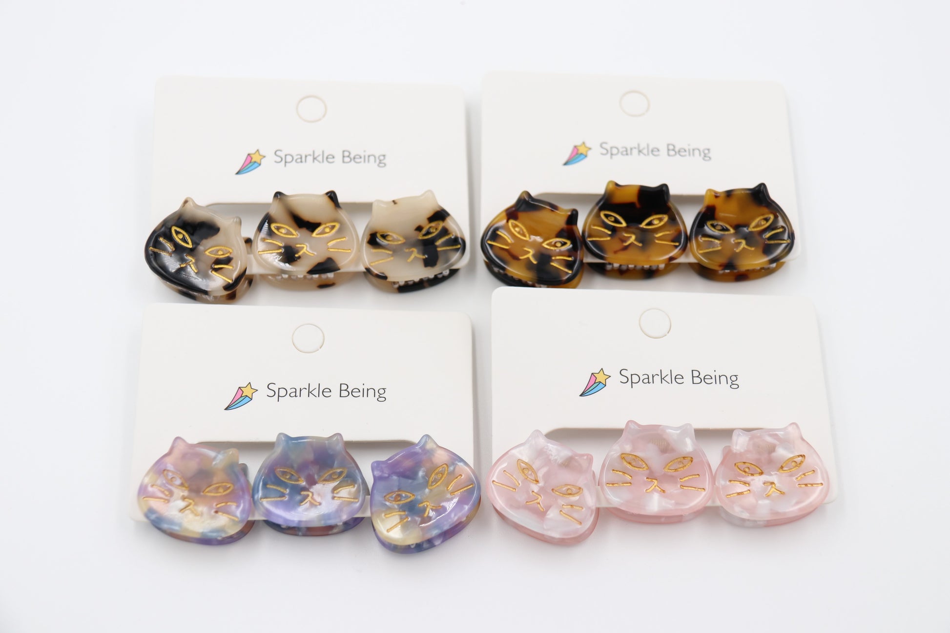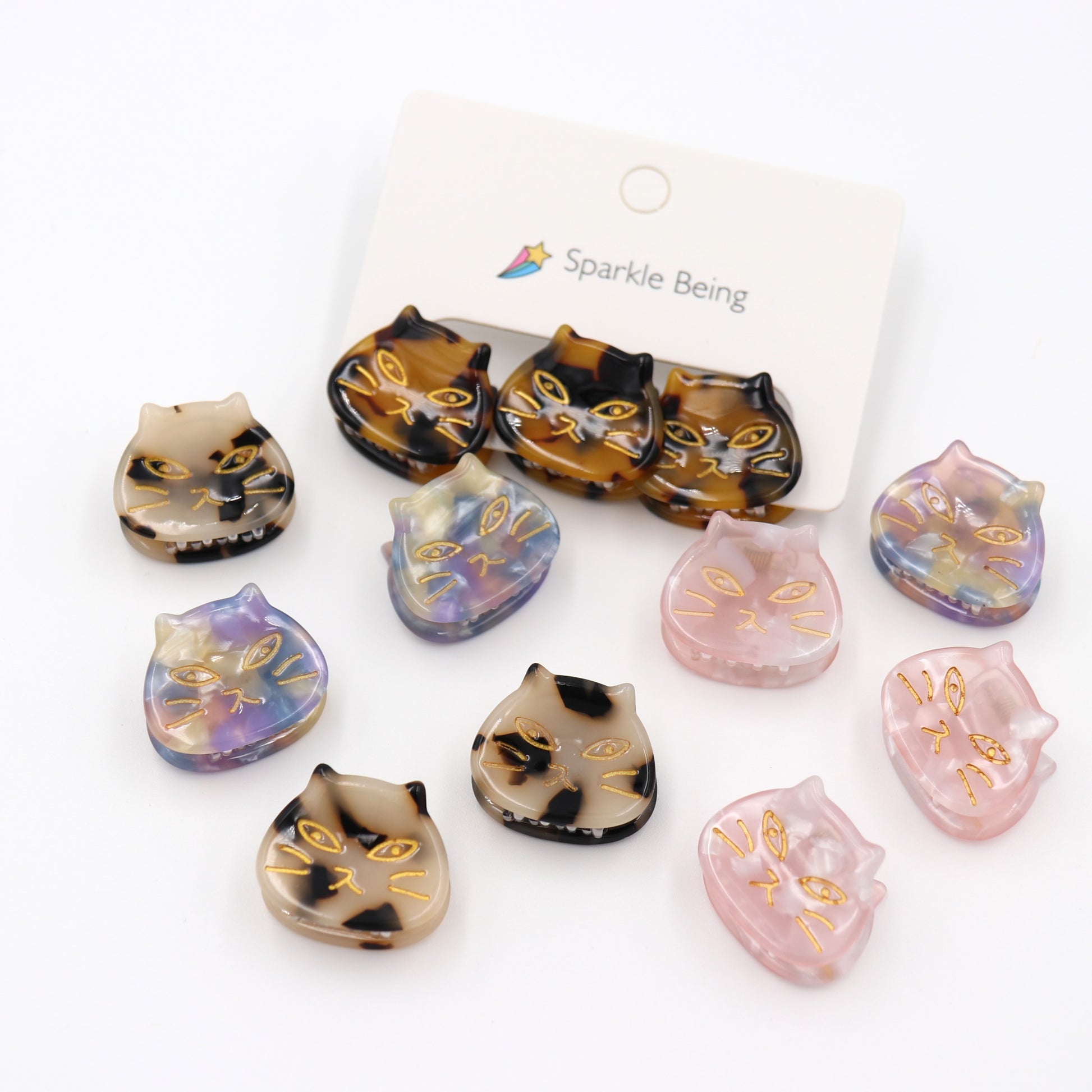 1 Inch Cat Head Acetate Hair Claw & Hair Clip - Set of 3