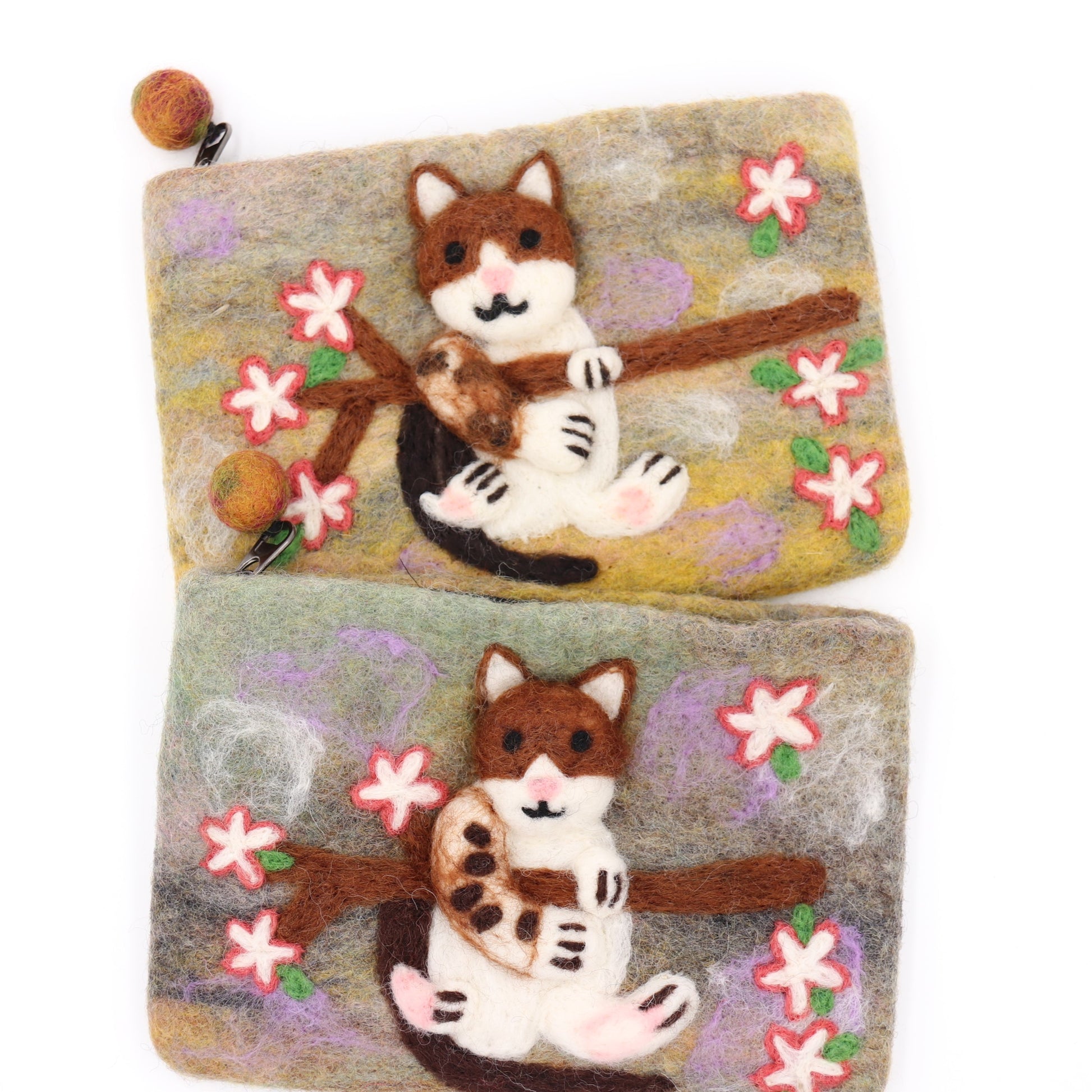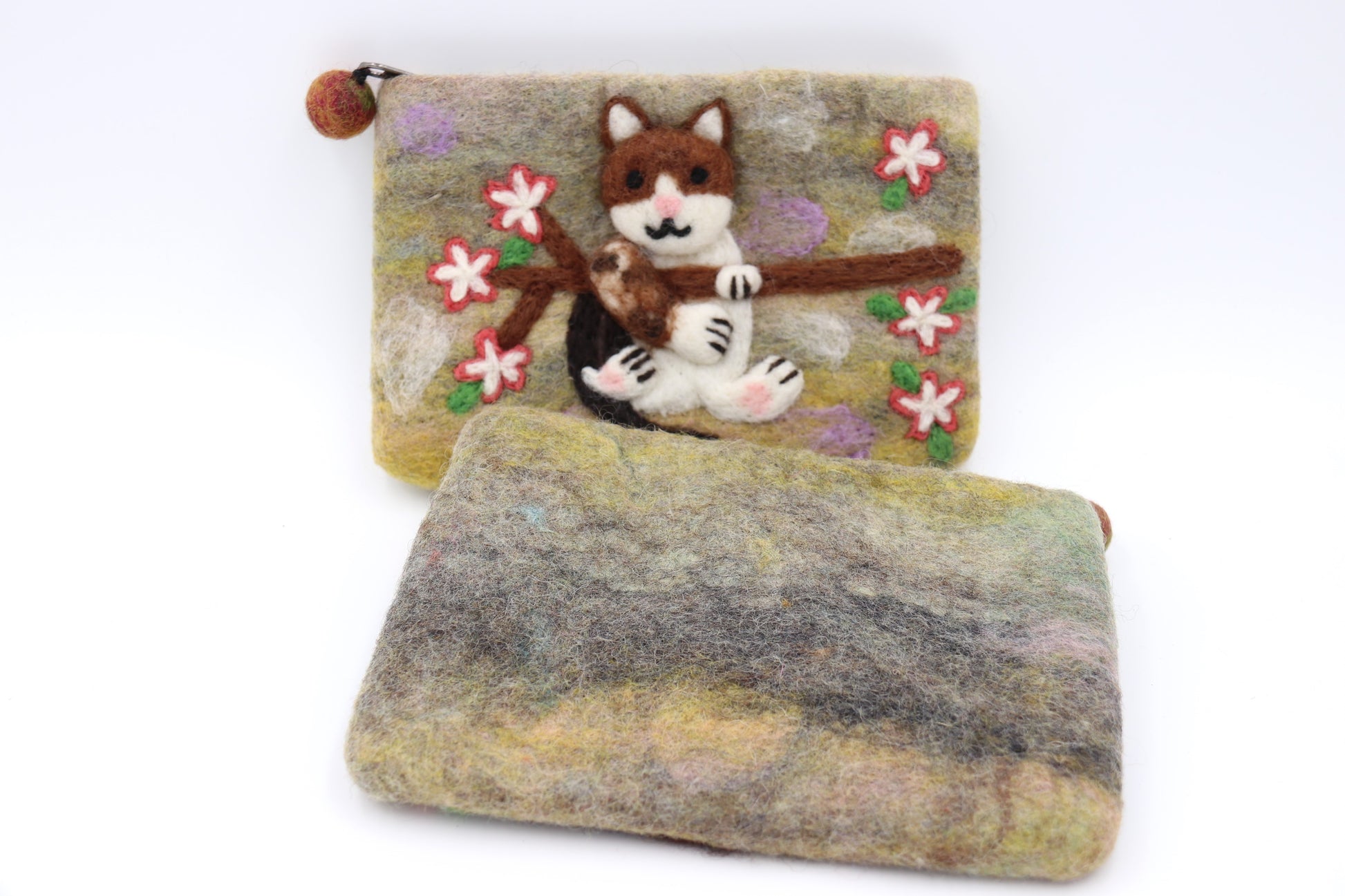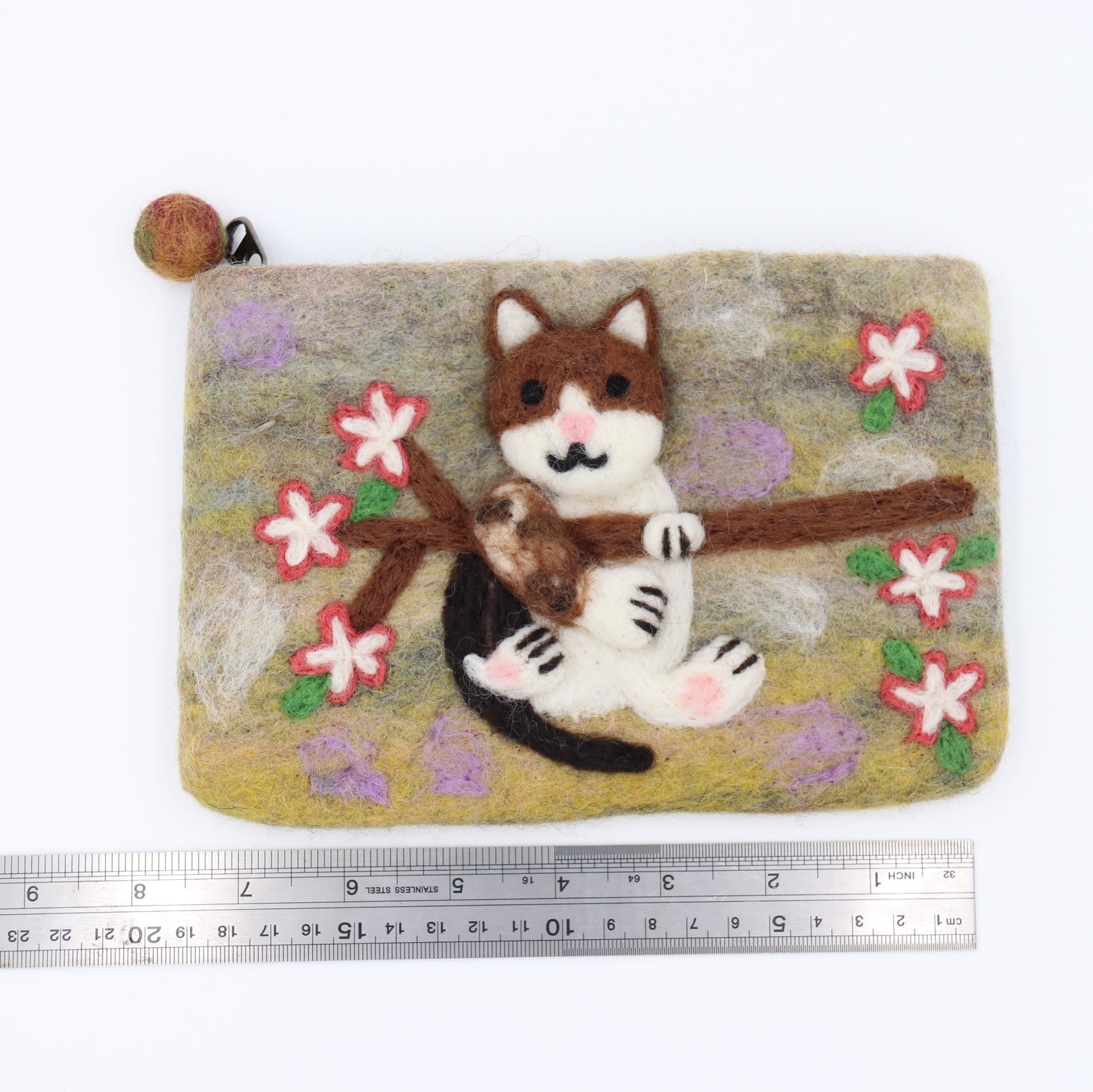 Cat in a Tree Felt Wallet - Wool Felt Pouch Hand Carry Coin Purse