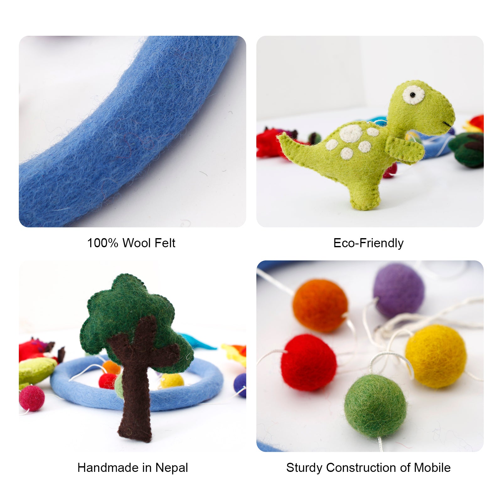 Handmade Animal Wool Felt Baby Mobile For Crib Children's & Nursery Room -Dinosaur