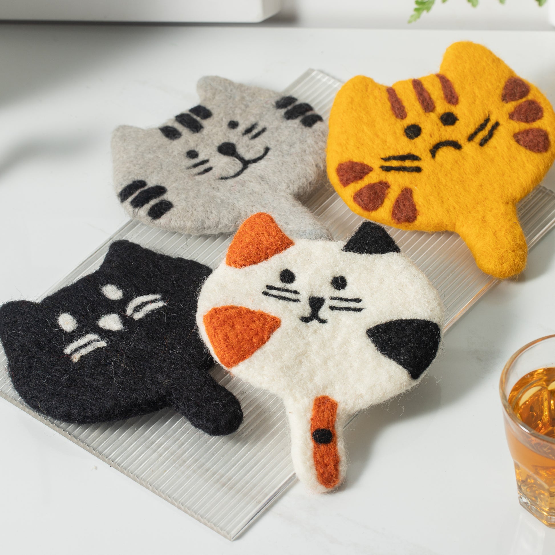 Felt Animal Coffee Cup Mug Table Mat Coasters - Curious Cat