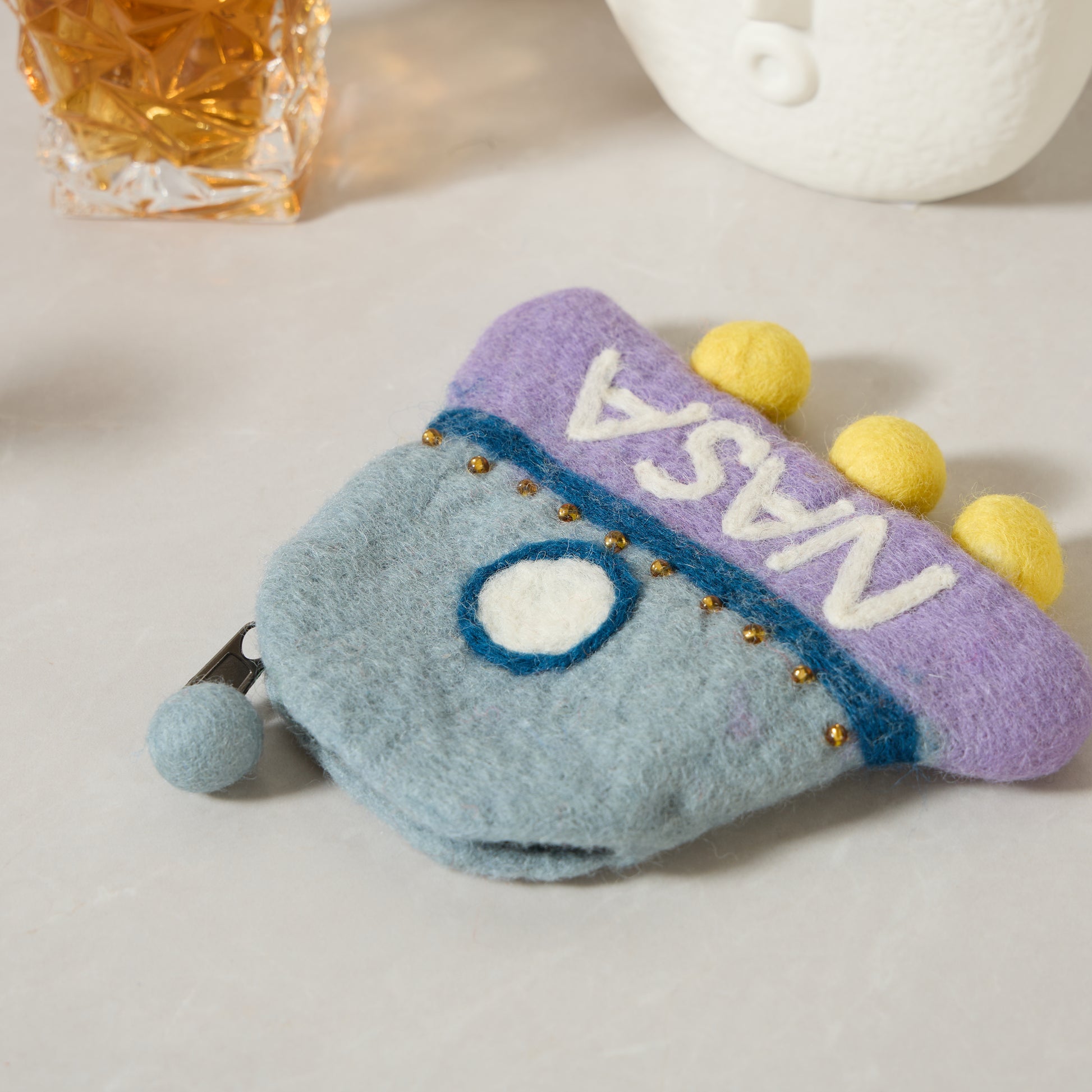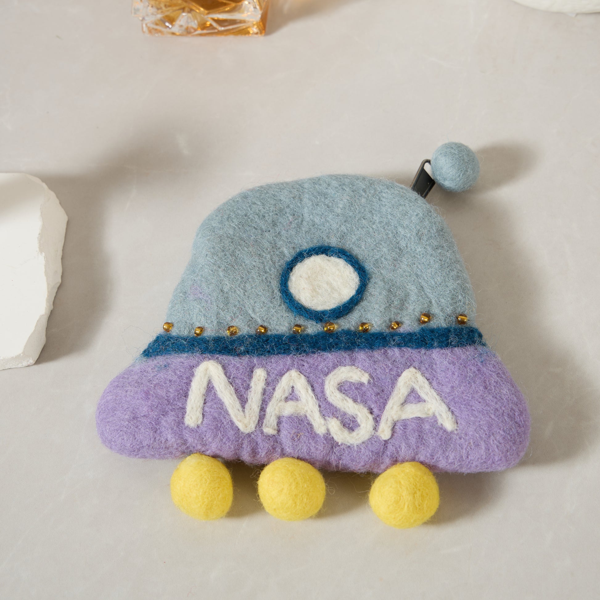 NASA Spaceship Felt Wallet - Wool Felt Pouch Hand Carry Coin Purse