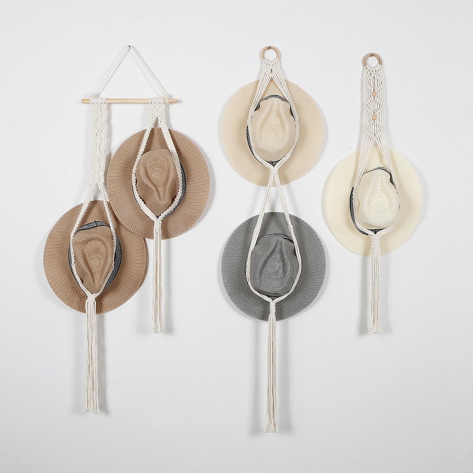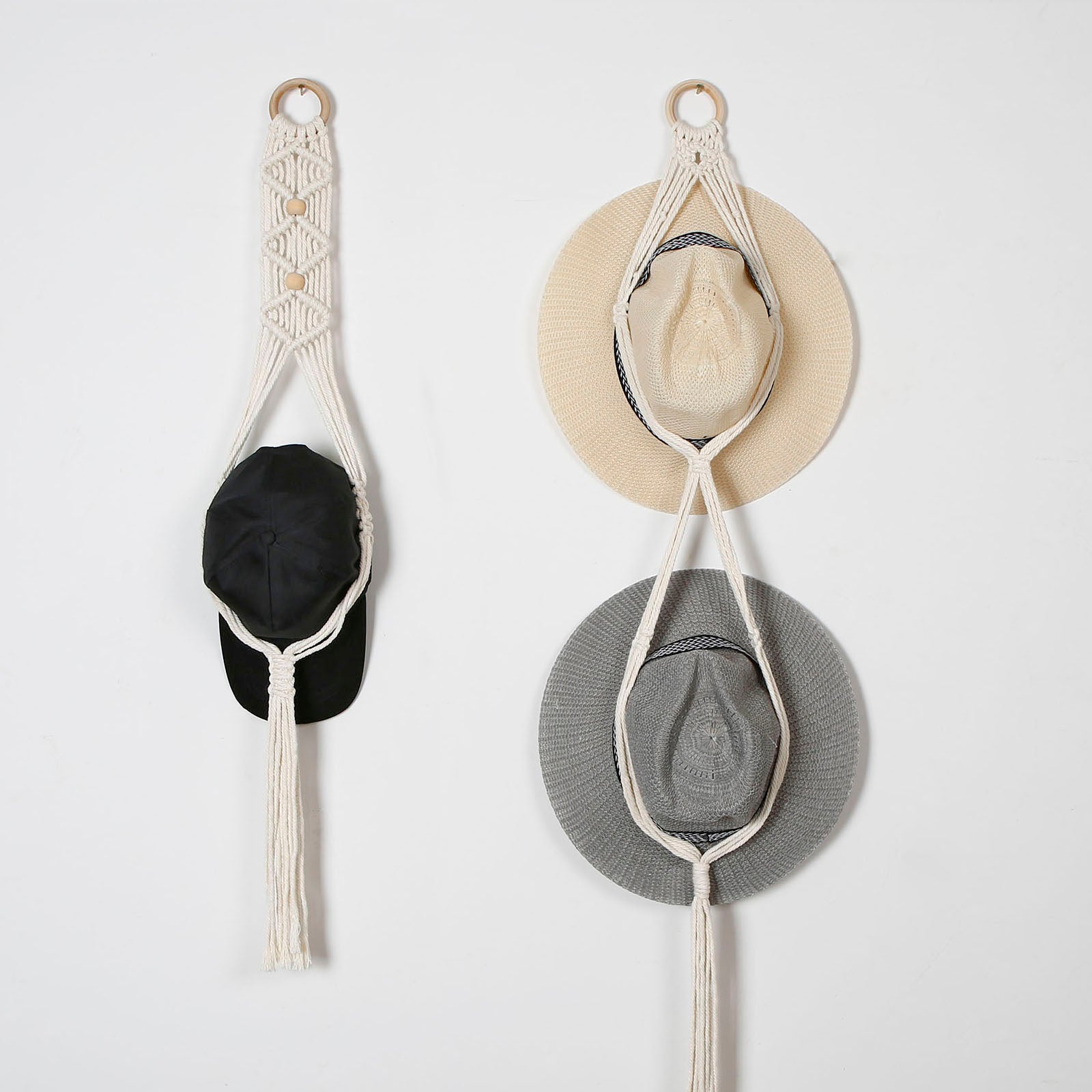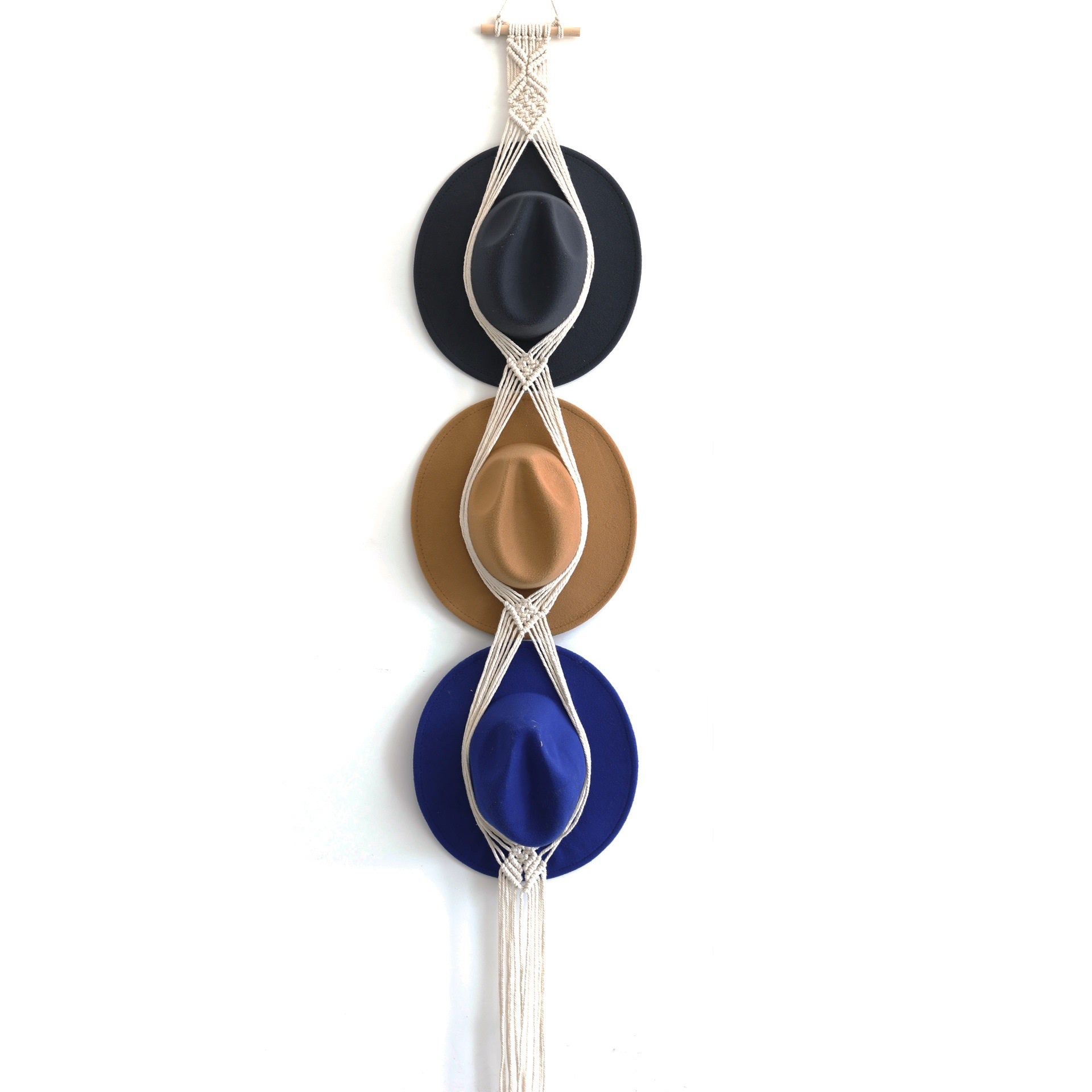 Boho Macrame Hat Display Wall Hanging - Handwoven Storage Organizer