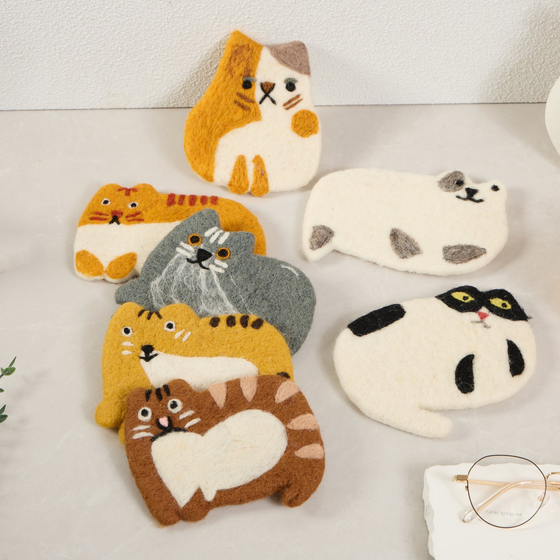 Handmade Felt Coffee Cup Mug Table Coasters - Scaredy Cats