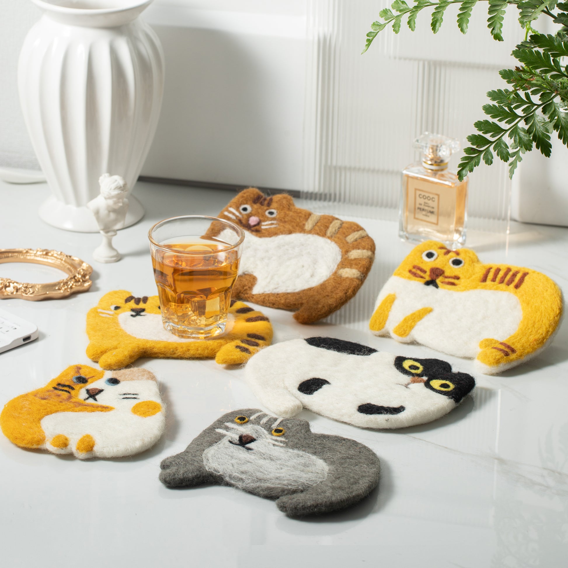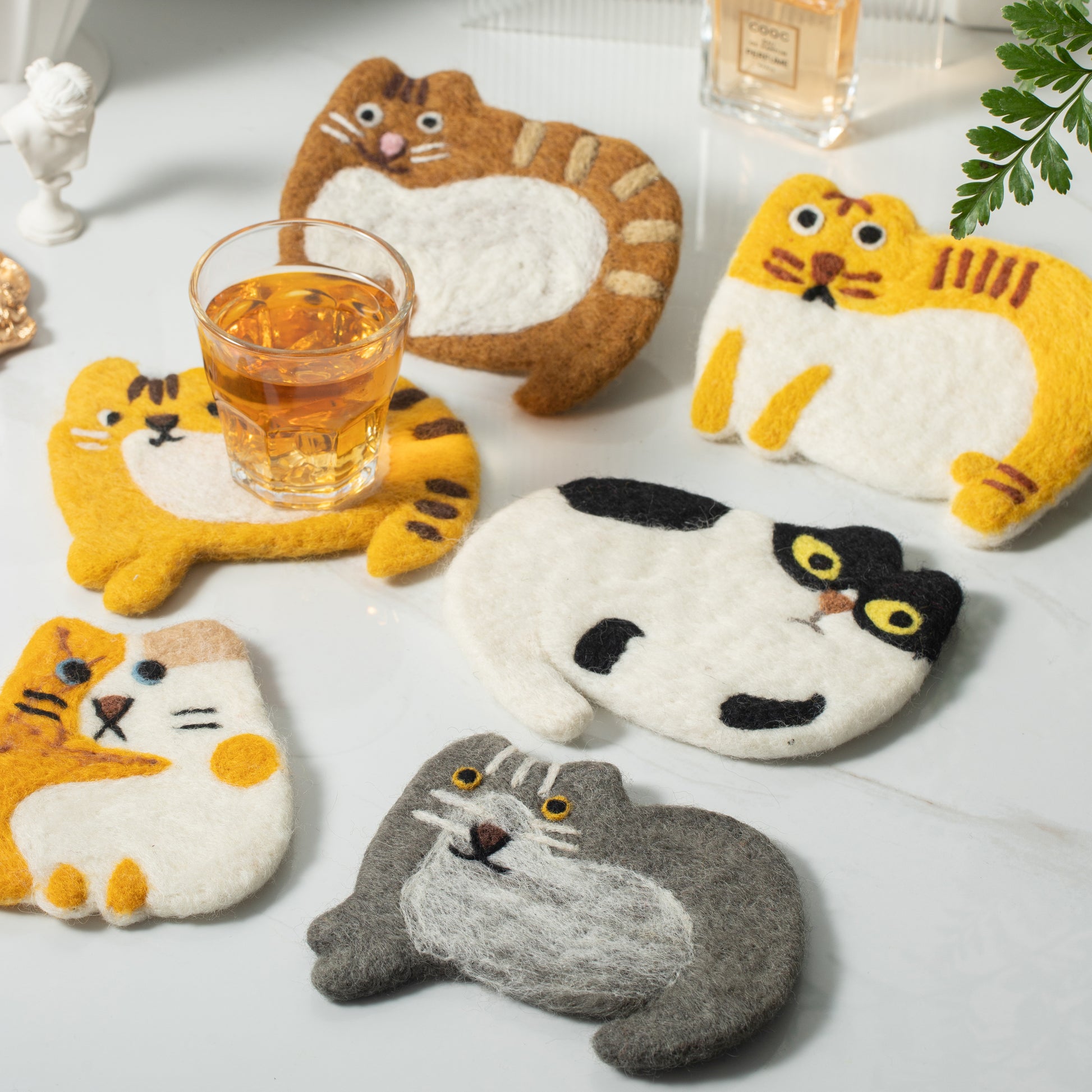 - Handcrafted wool felt coasters are soft, light, and better at absorbing liquids than cork or stone coasters.