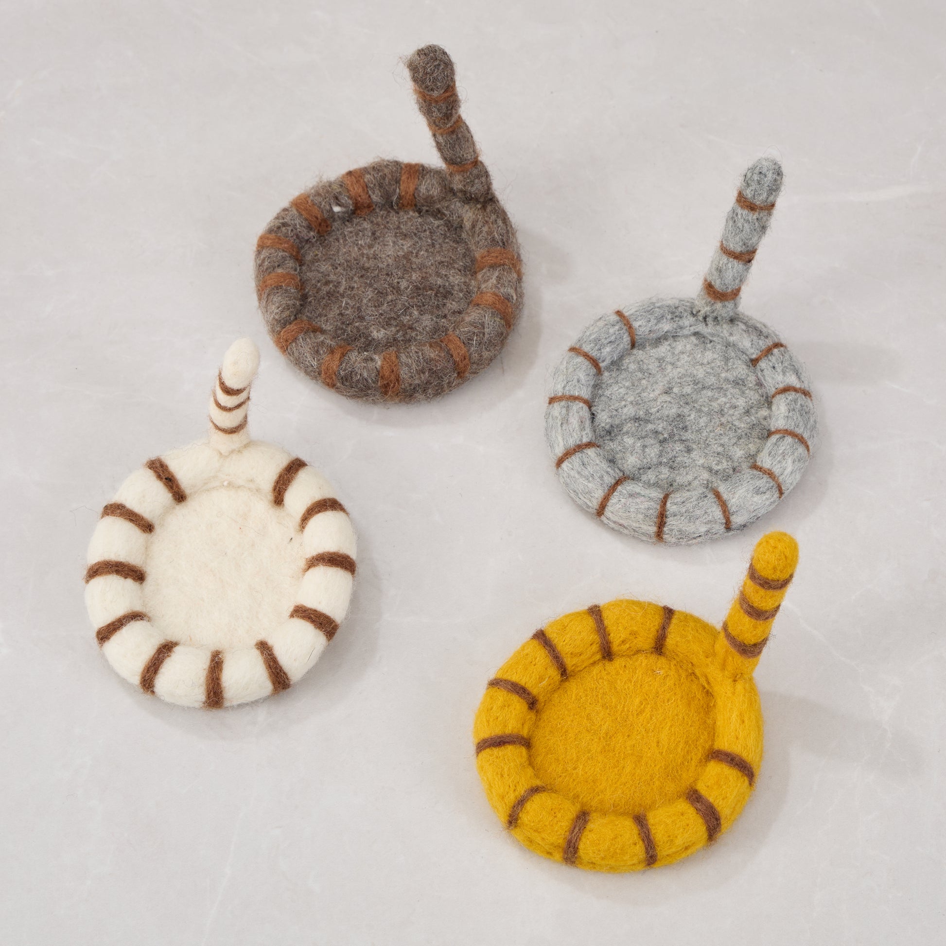 Handmade in Nepal, each of our high-quality coasters are uniquely crafted with a cute design perfect to display on your coffee table! These adorable wool felt coasters absorb drips, spills, and condensation to protect your furniture, tabletops, and countertops.