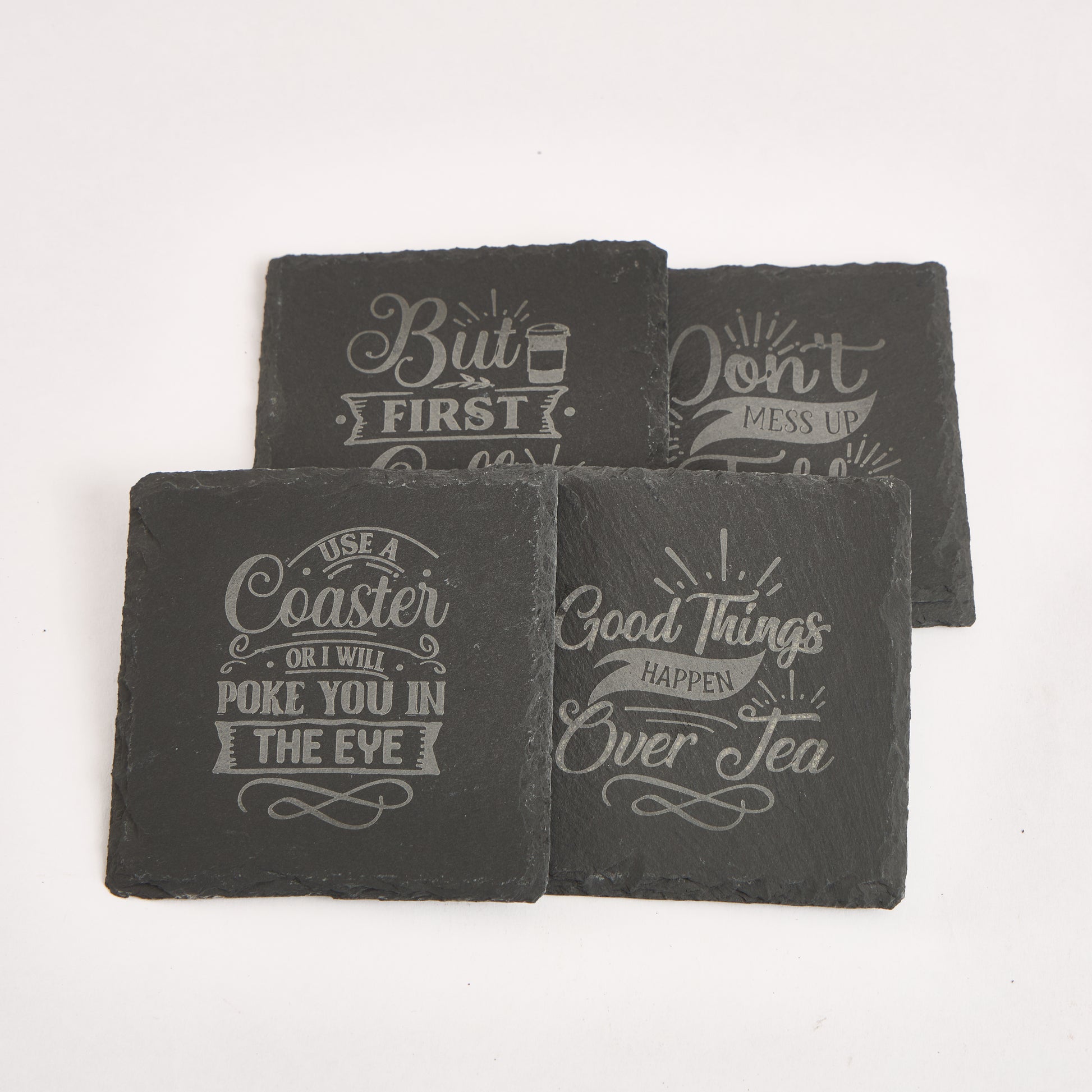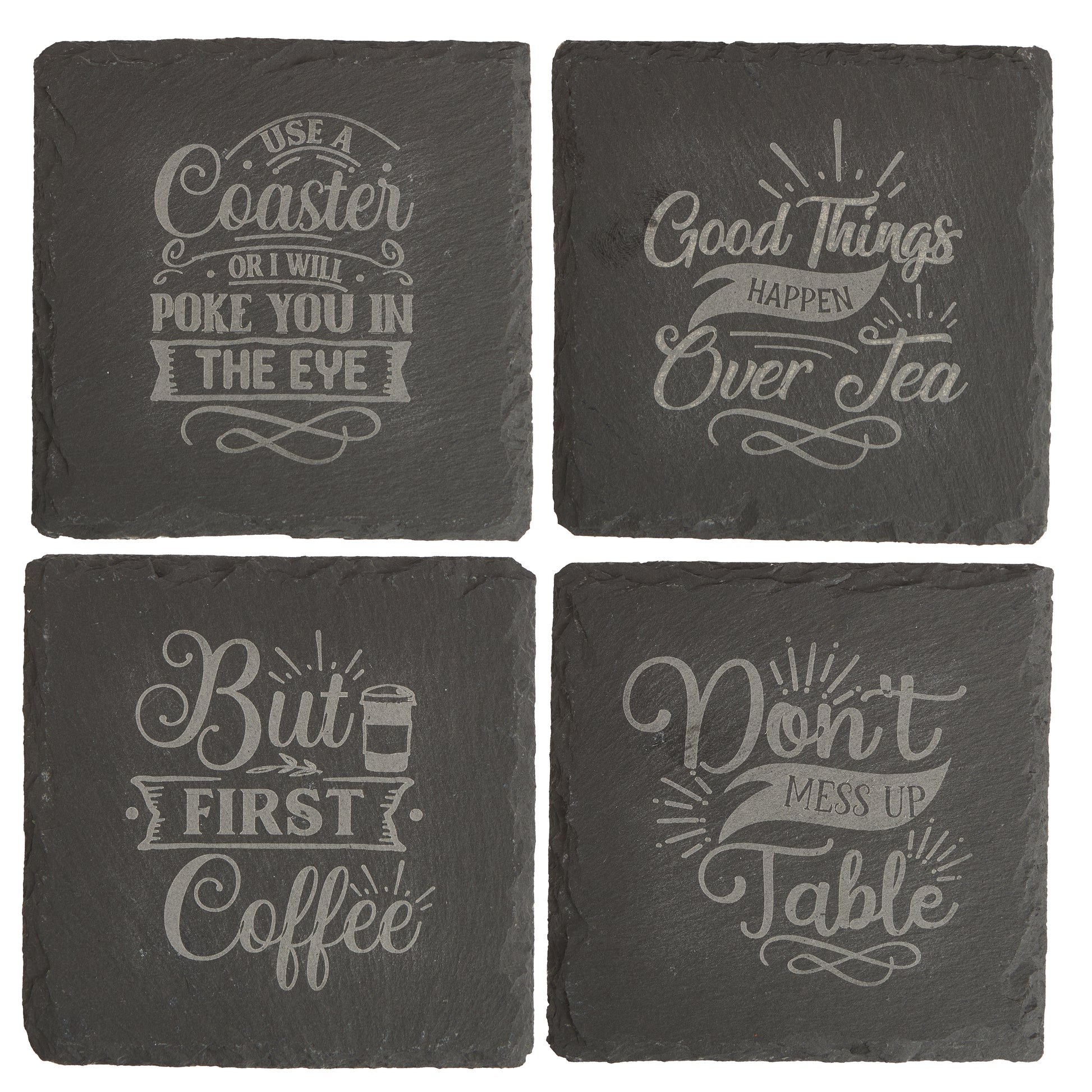 Funny Slate Coaster – Engraved Drink Coasters with Quotes | Coffee & Tea Lovers Gift