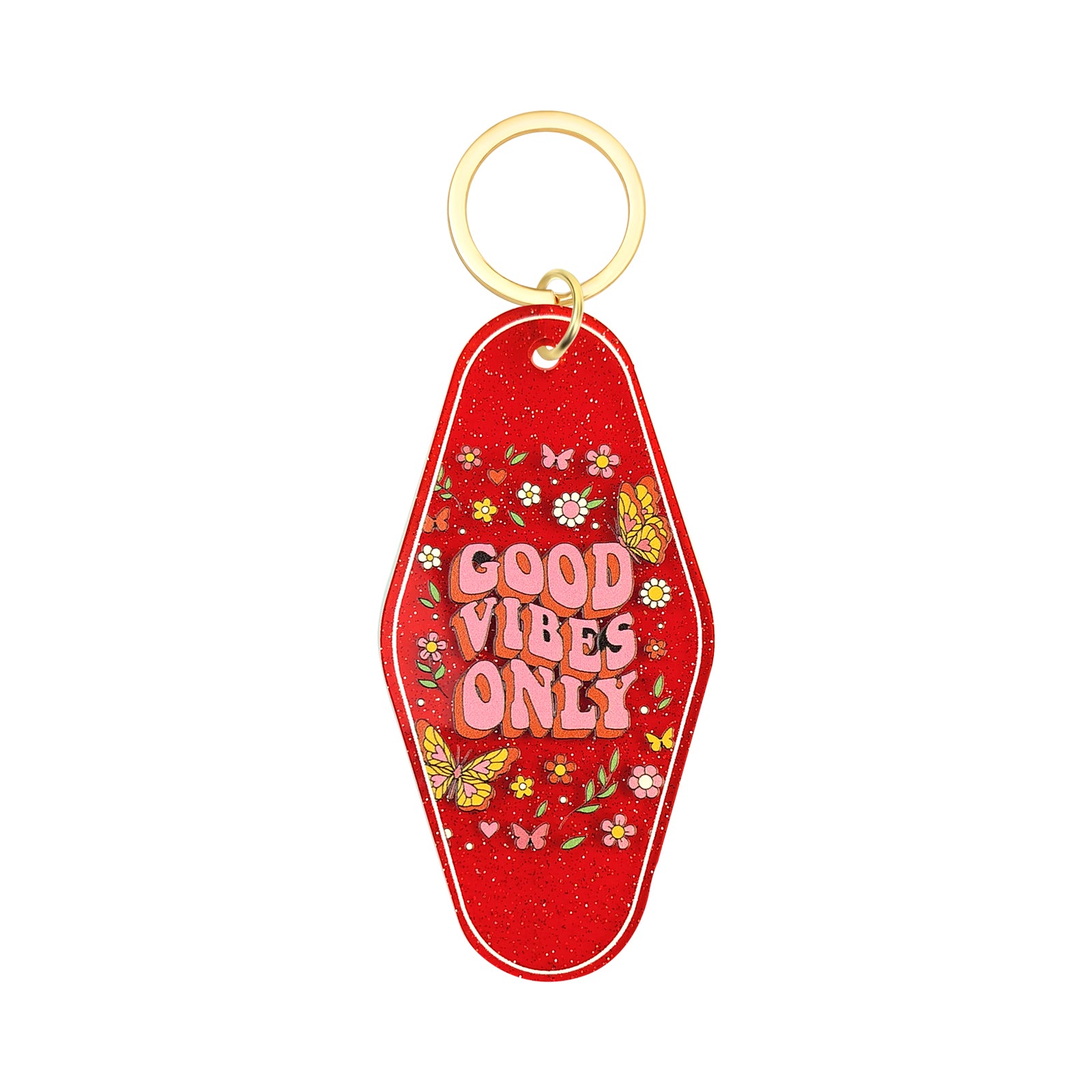 Good Vibes Only Motel Keychain - Vintage Nostalgia Motivational Hotel Keychain