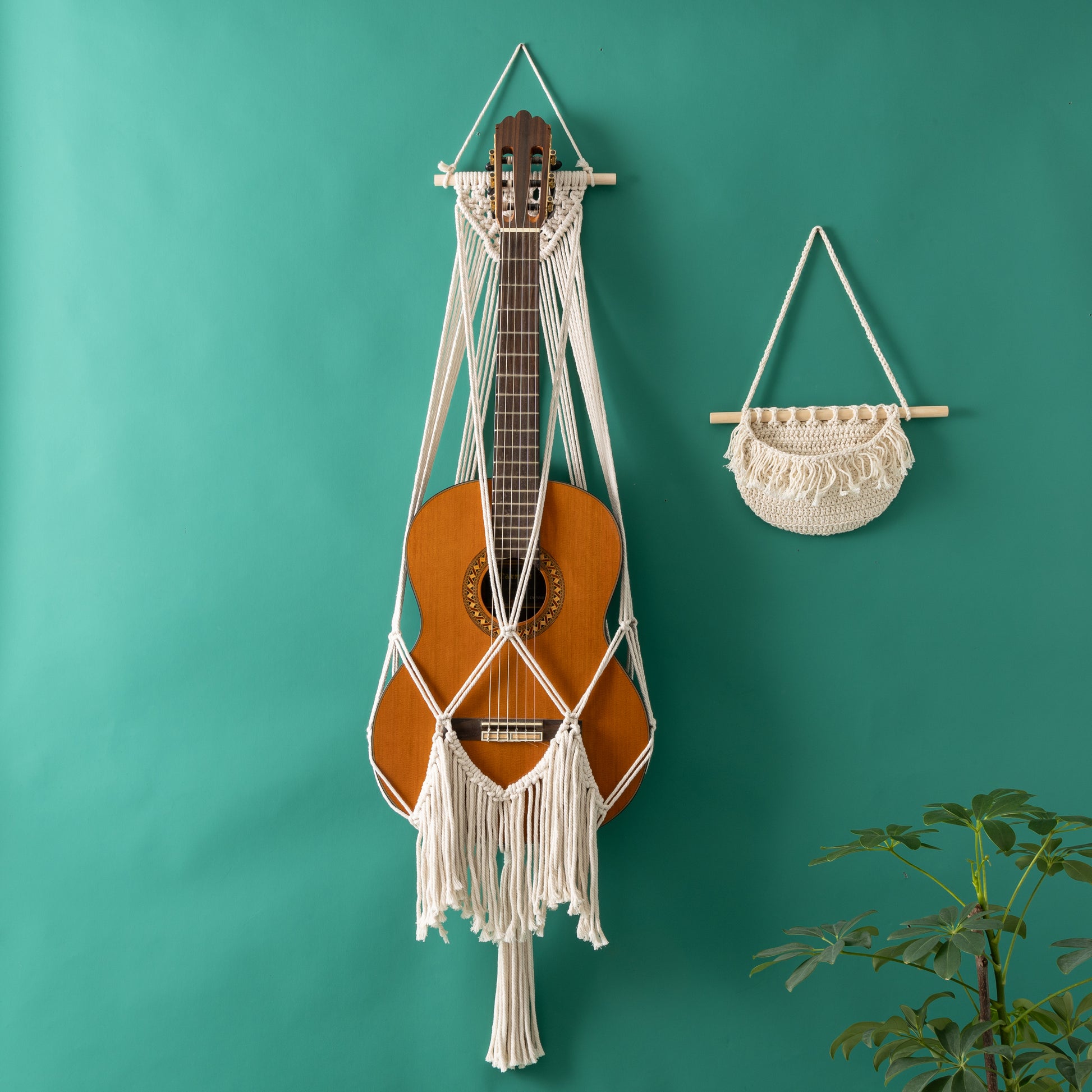 Elevate your musical haven with our handcrafted Macramé Guitar Hanger, a perfect fusion of practicality and bohemian charm. Designed to securely cradle your cherished instrument while adding a touch of artisanal elegance to your space, this unique hanger is a must-have for guitar enthusiasts and interior decor aficionados alike.