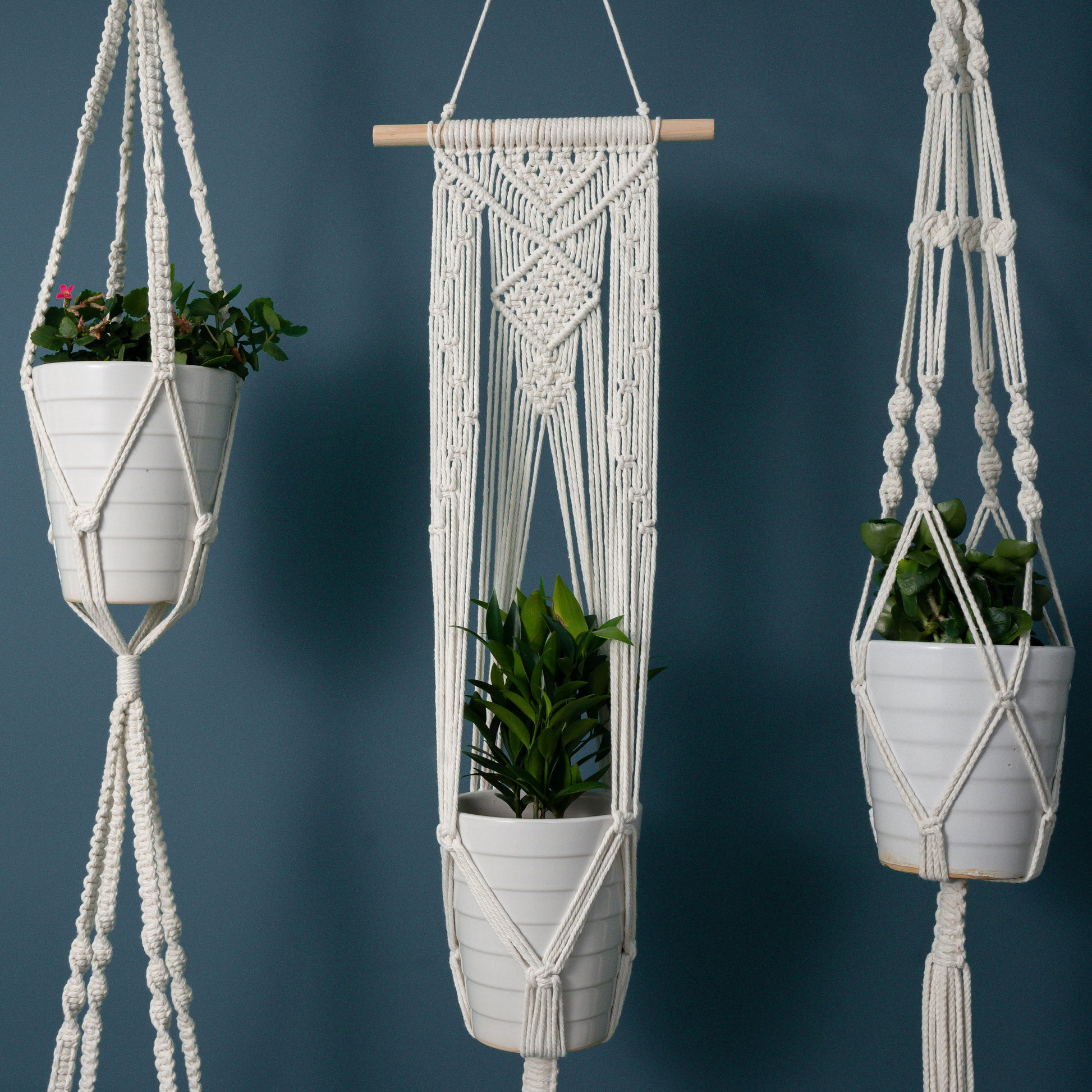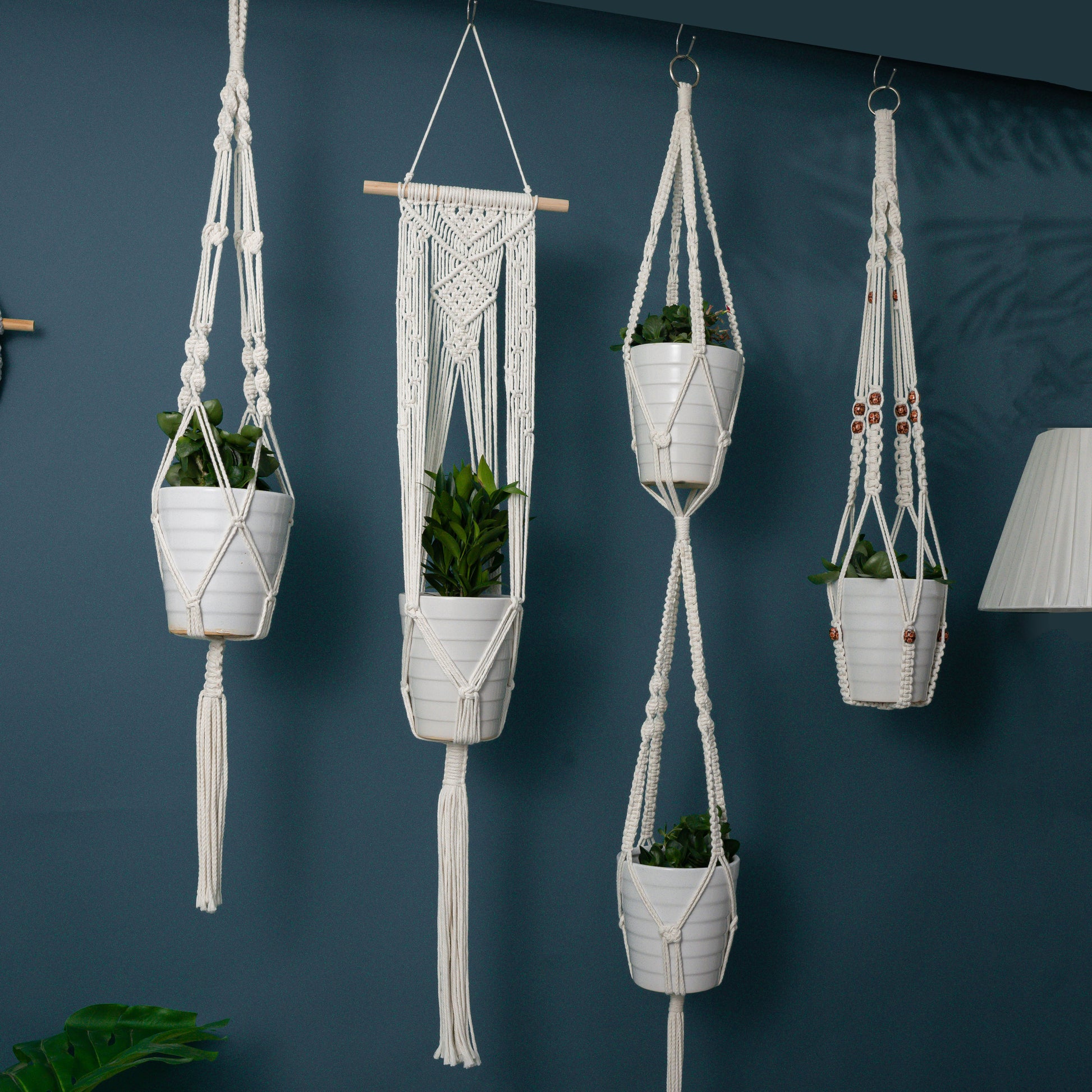 Handmade Cotton Macrame Rope Plants Hanging Pots Holder Stand Hangers Set of 4