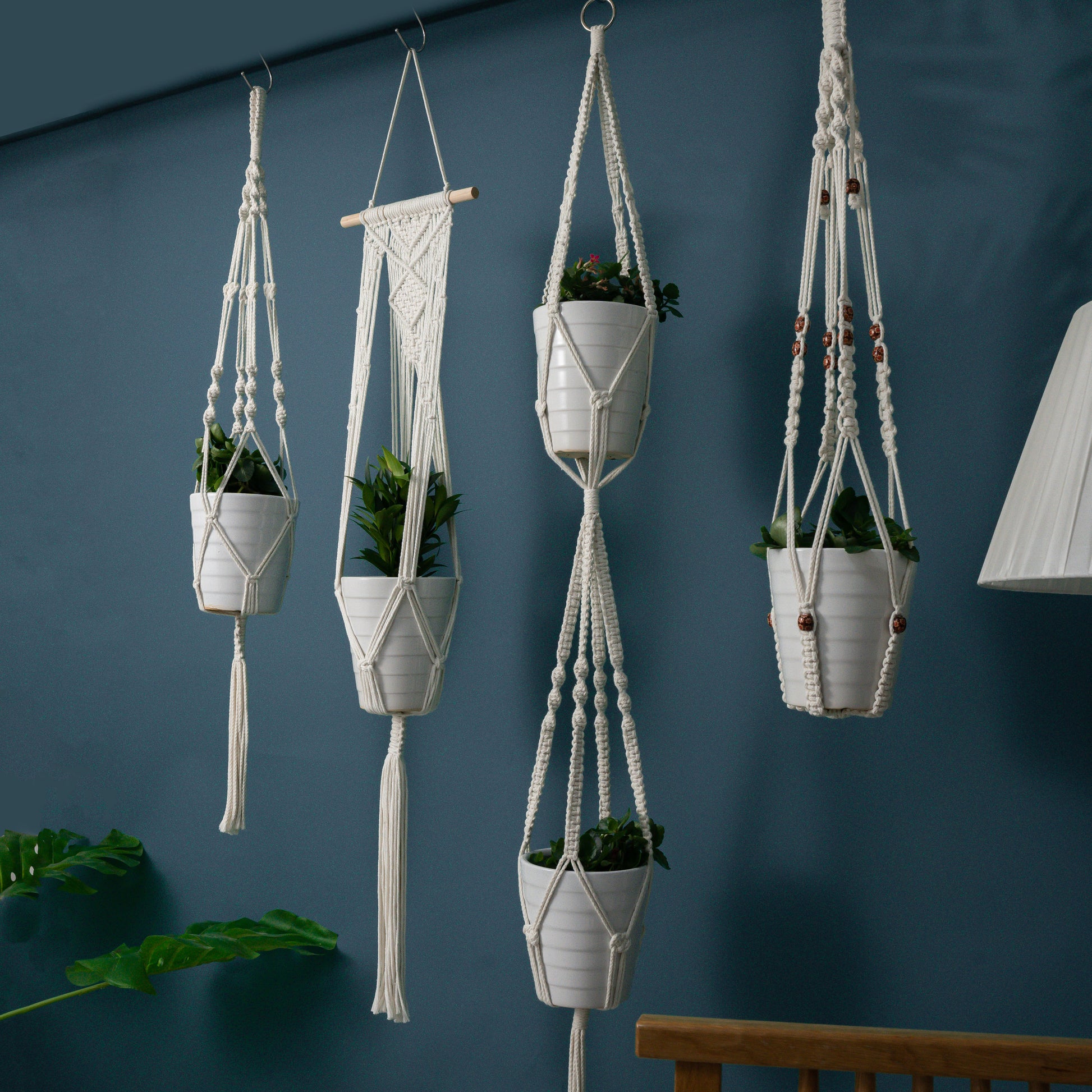 - SAVE SPACE -- These 4 different stylish macrame hanging plants planter makes a wonderful gift for housewarmings, weddings, and all occasions. You save on shelf space and can beautify any indoor/outdoor corner spaces.