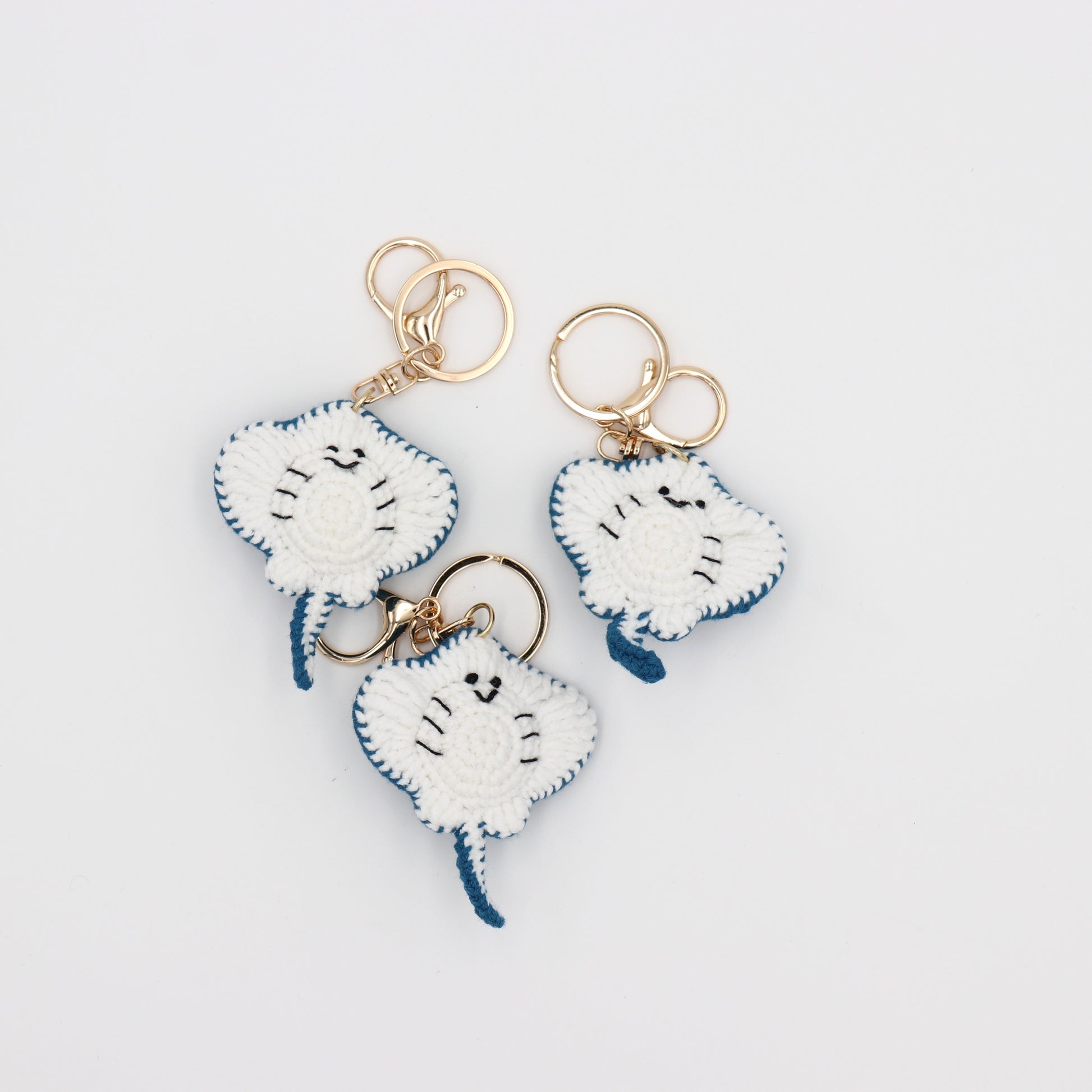 Handmade Crochet Stingray Keychain – Cute Ocean Animal Bag Charm