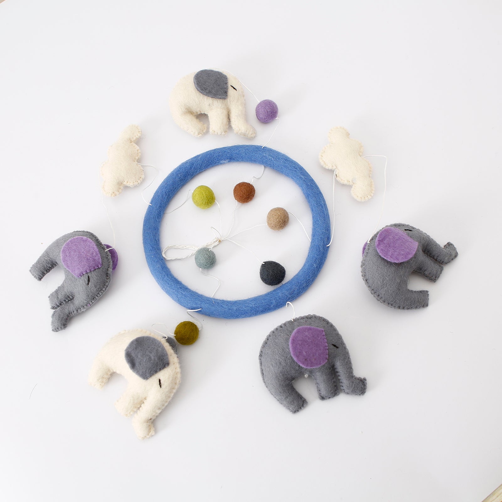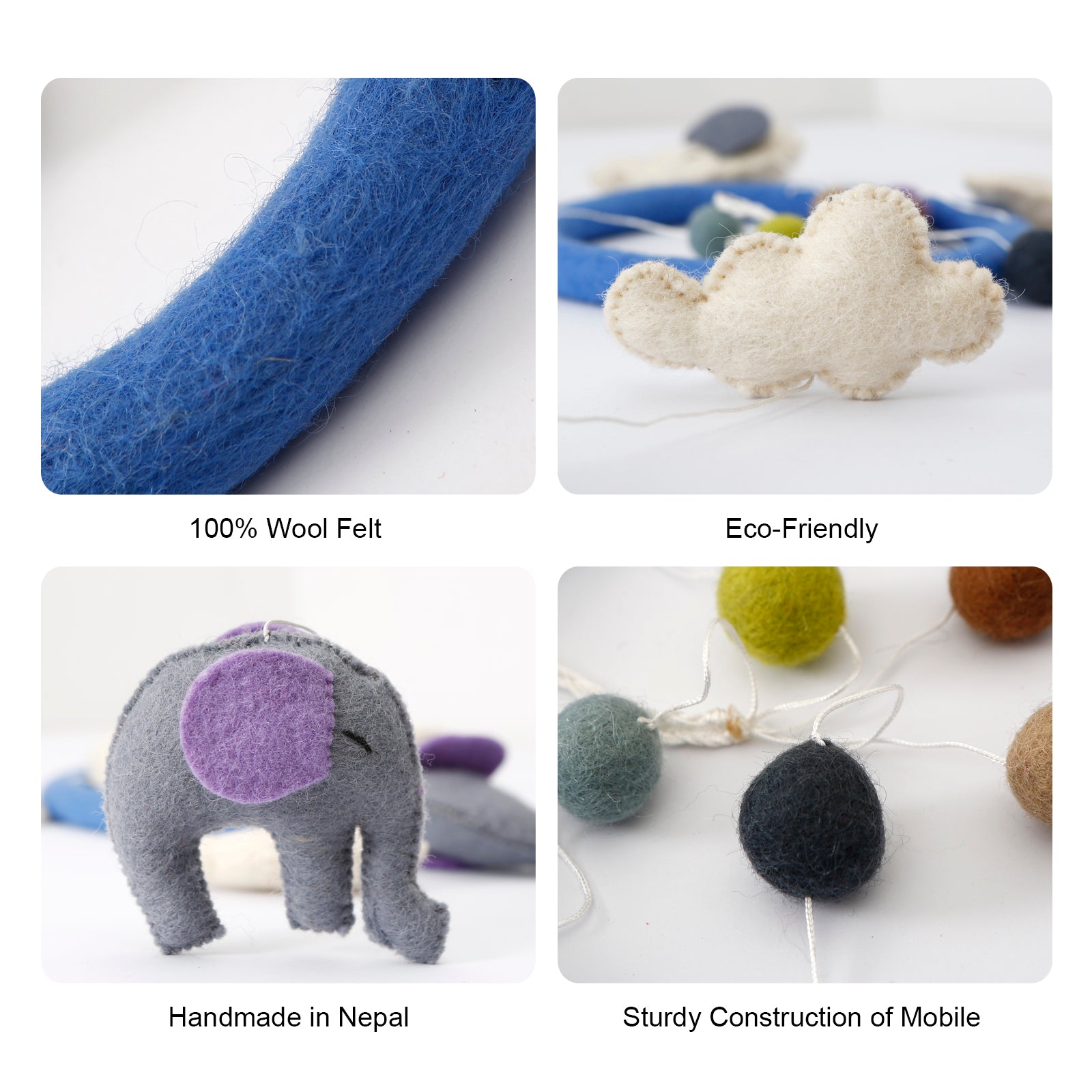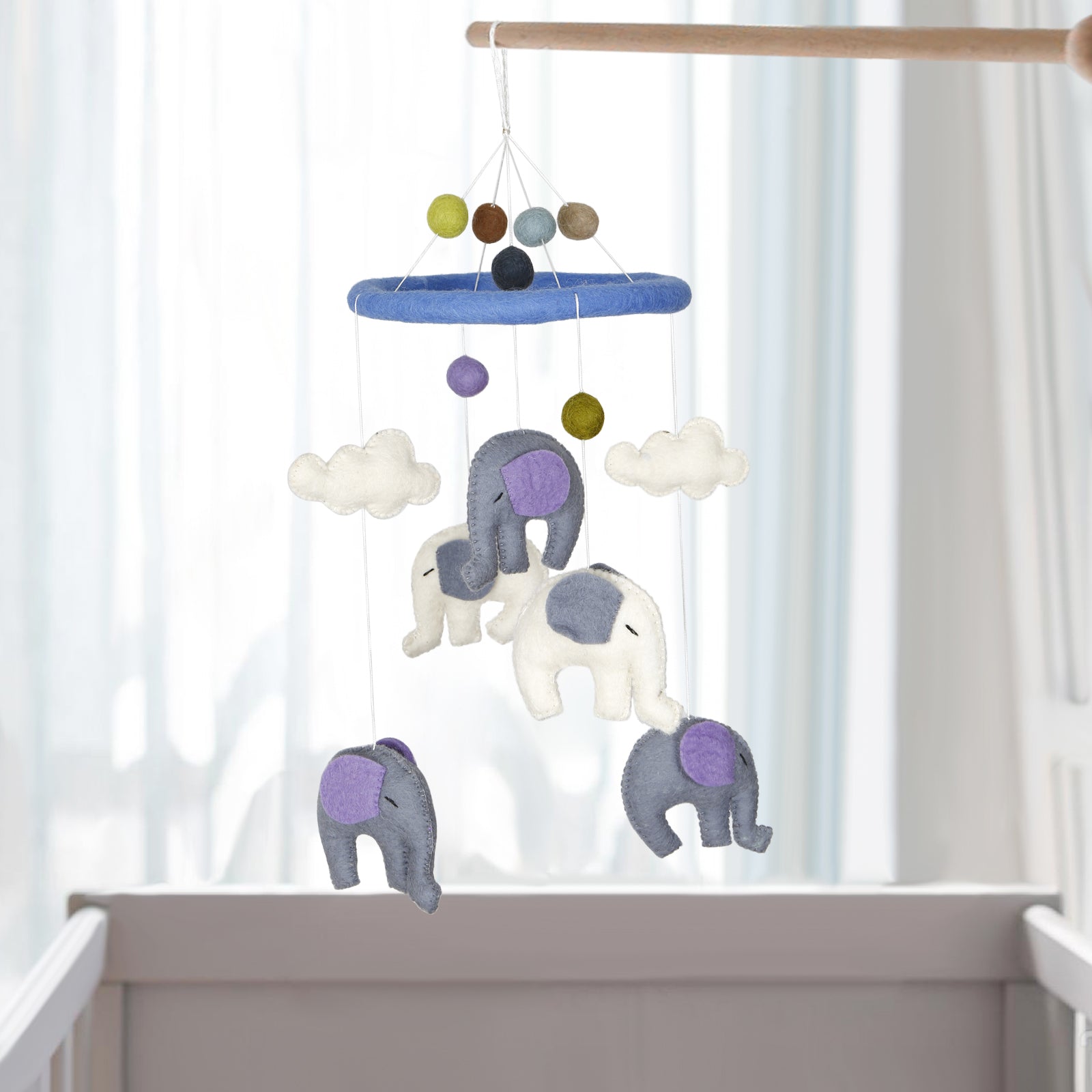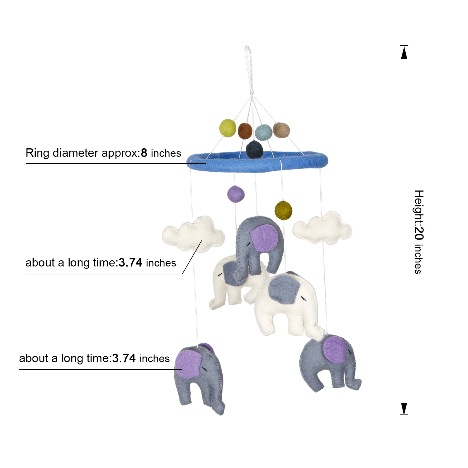 Handmade Animal Wool Felt Baby Mobile For Crib Children's & Nursery Room - Elephant