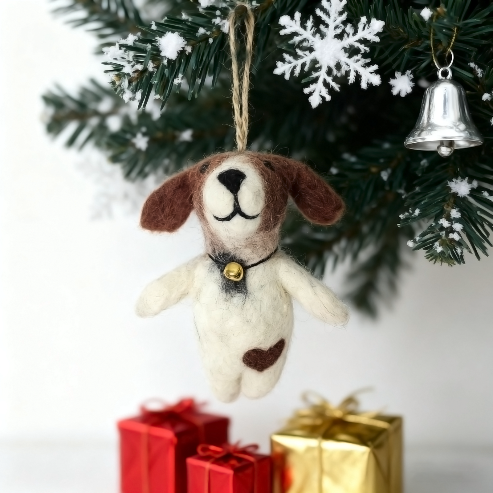 Handmade Poppy Dog Wool Felt Christmas Ornament - Artisan Crafted in Nepal