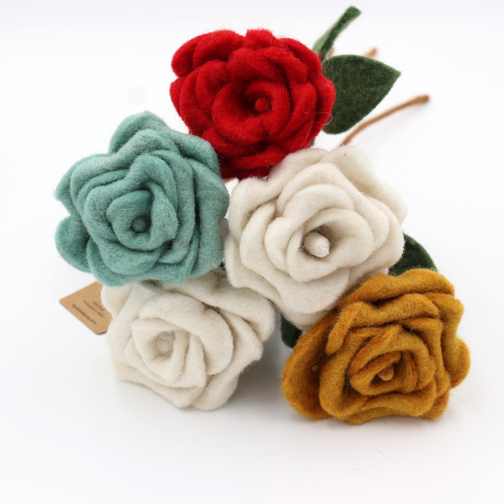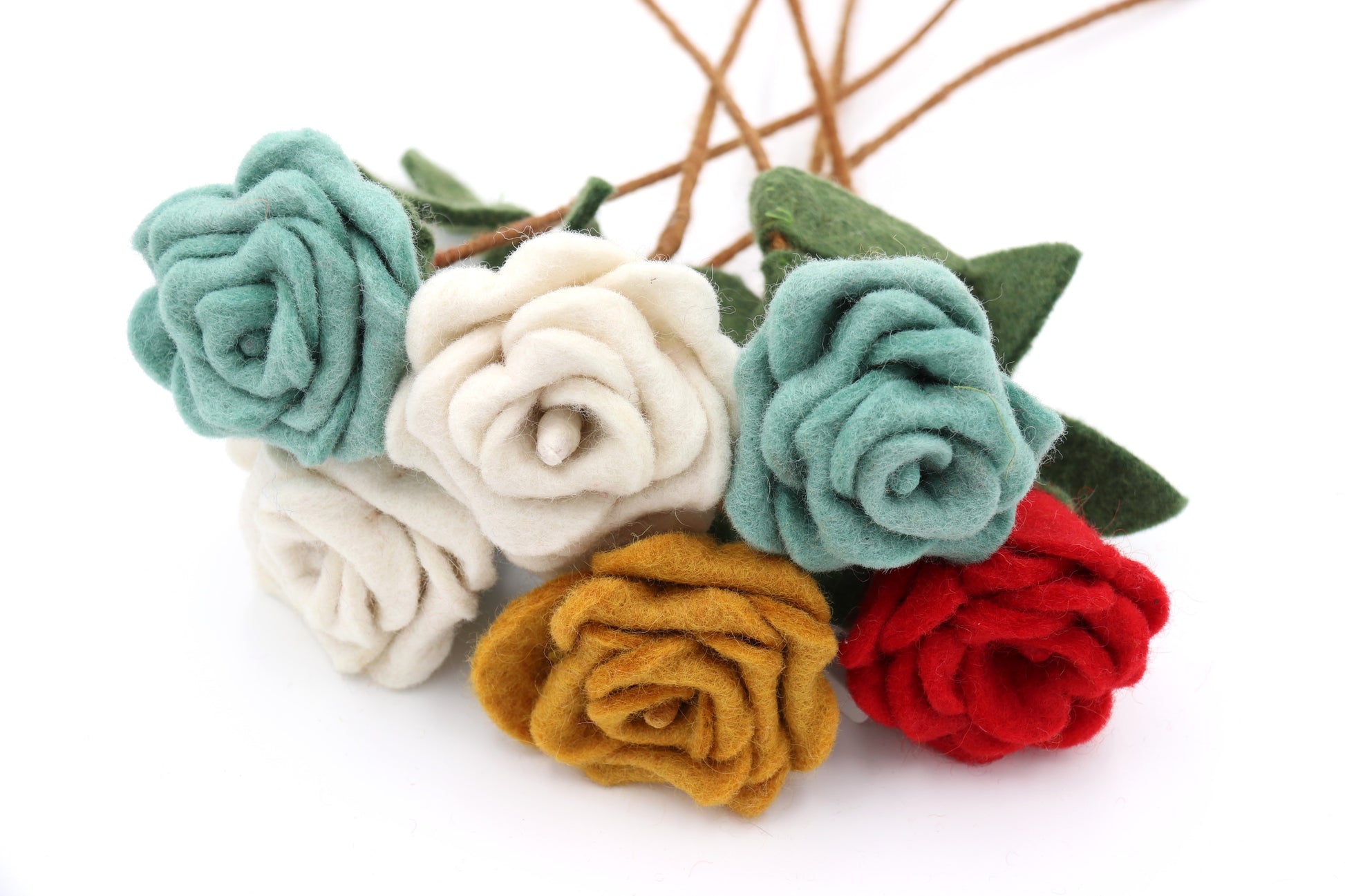 - Handcrafted wool felt flowers are soft to the touch and provide a long-lasting burst of color