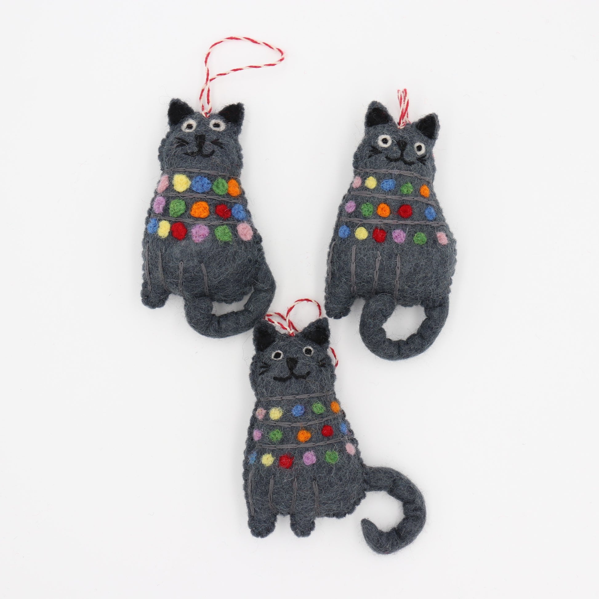 Handmade Black Cat Wool Felt Ornament – Made in Nepal