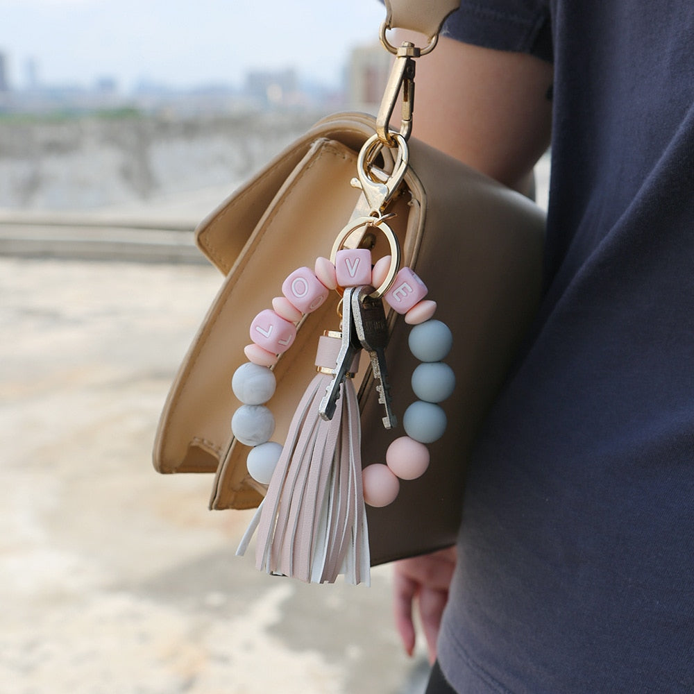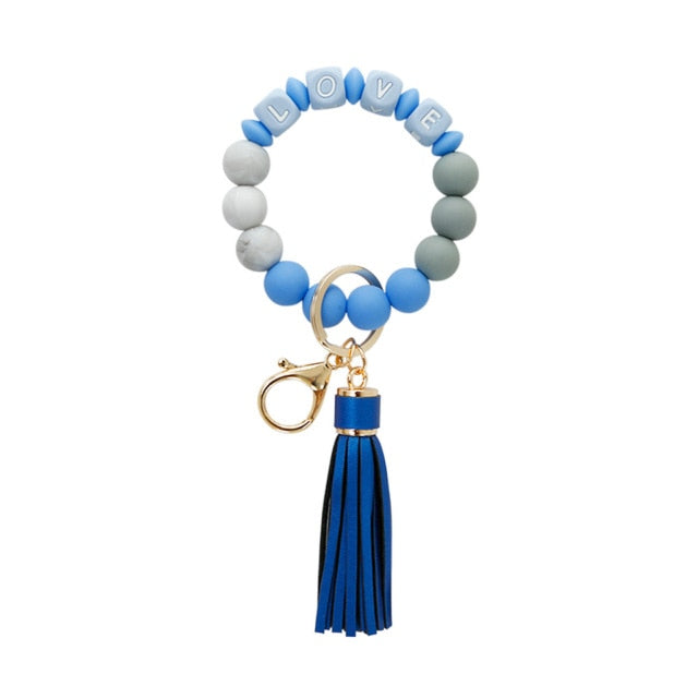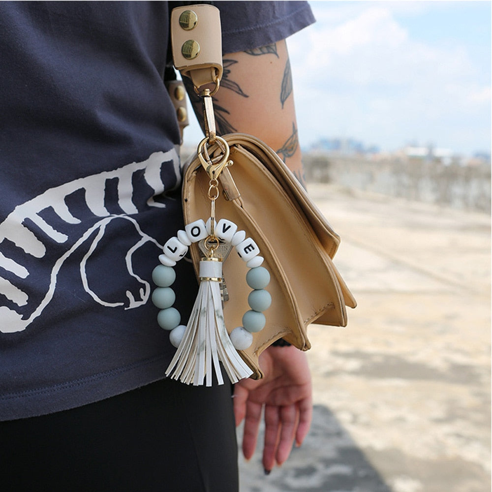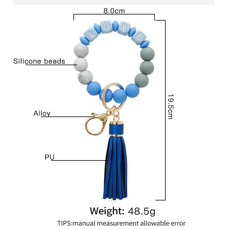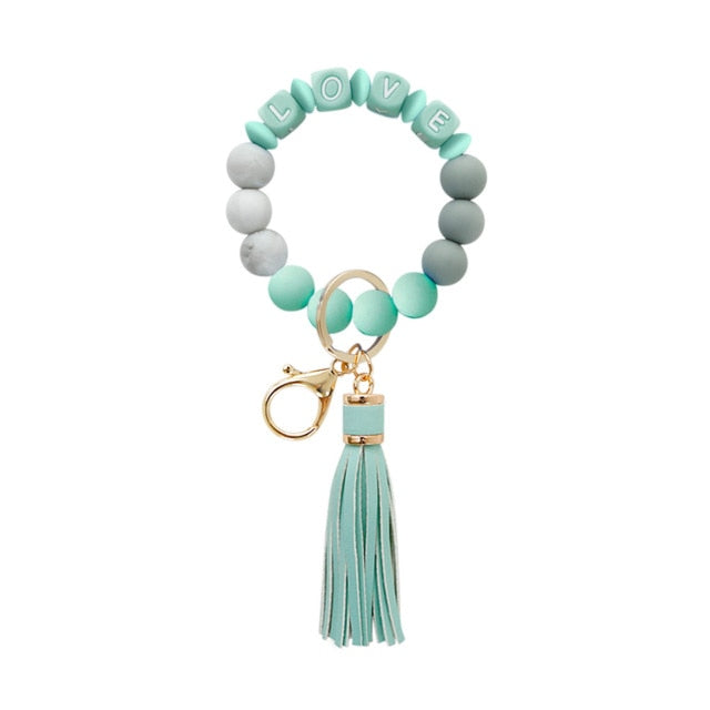 LOVE Silicone Bracelet Beaded Bangle Wristlet Keychain