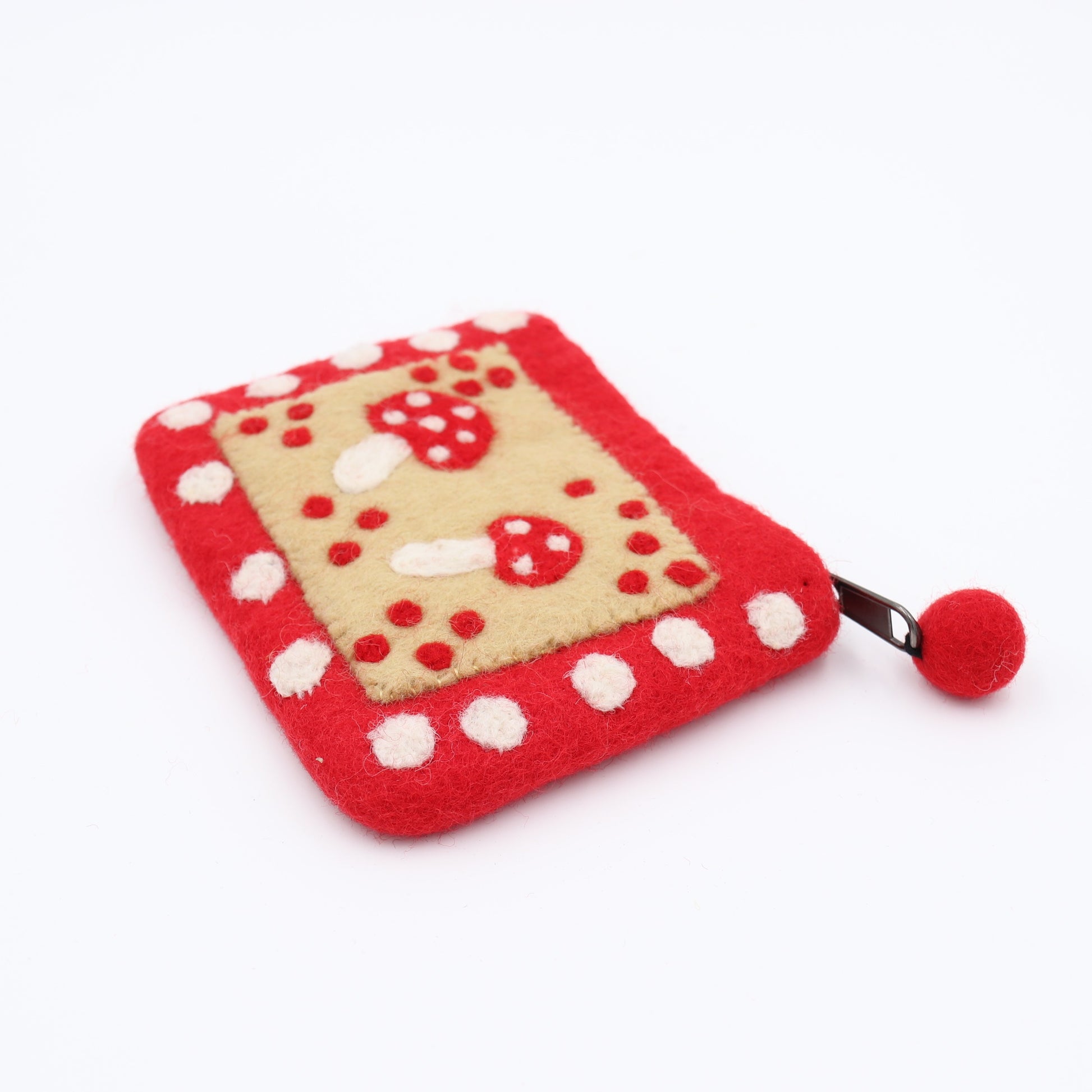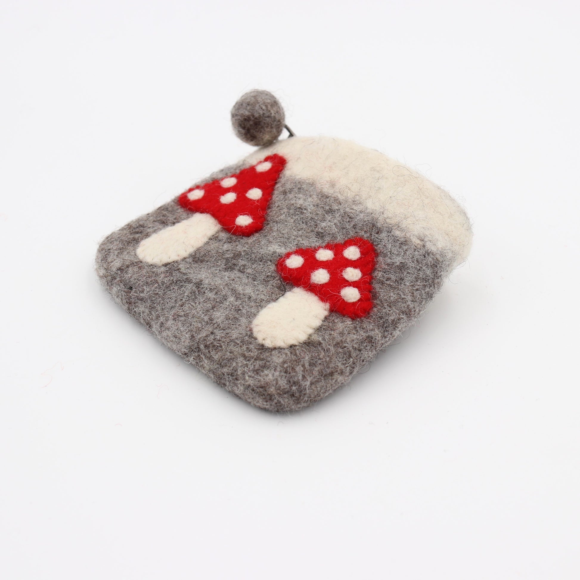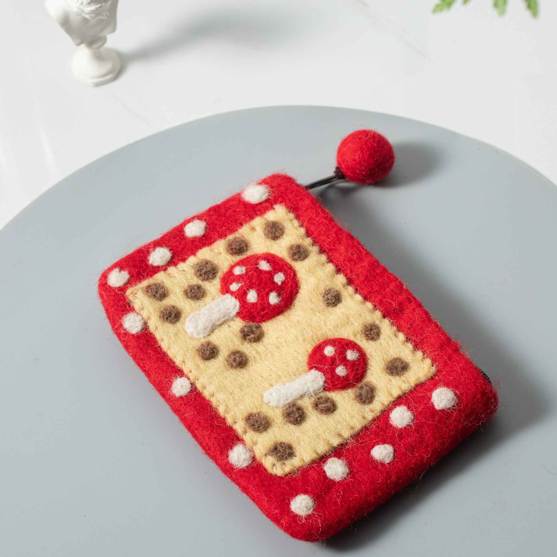 Mushroom Felt Wallet - Wool Felt Pouch Hand Carry Coin Purse
