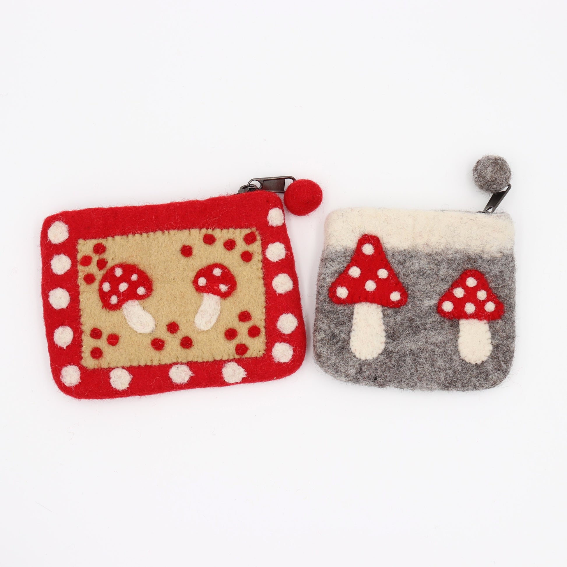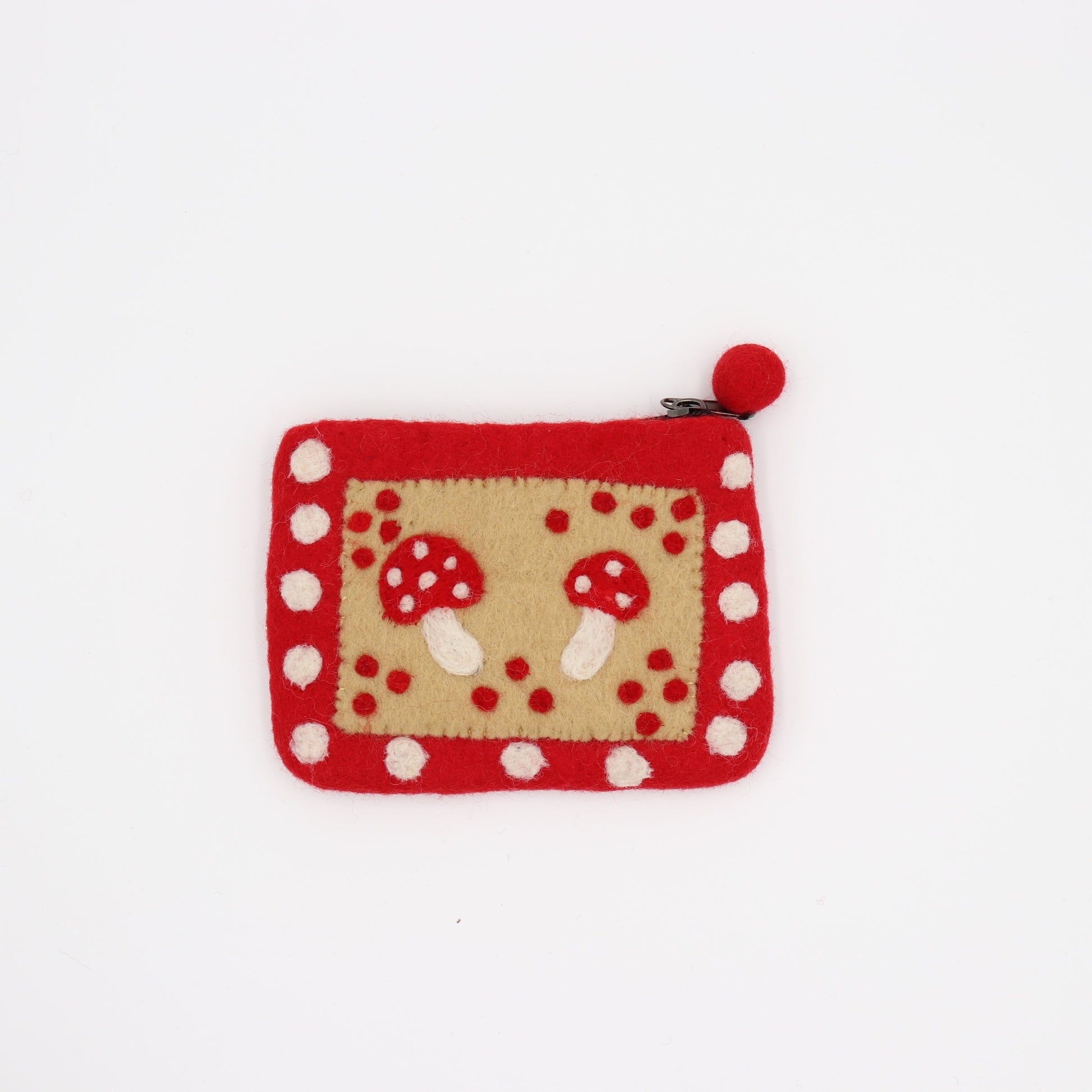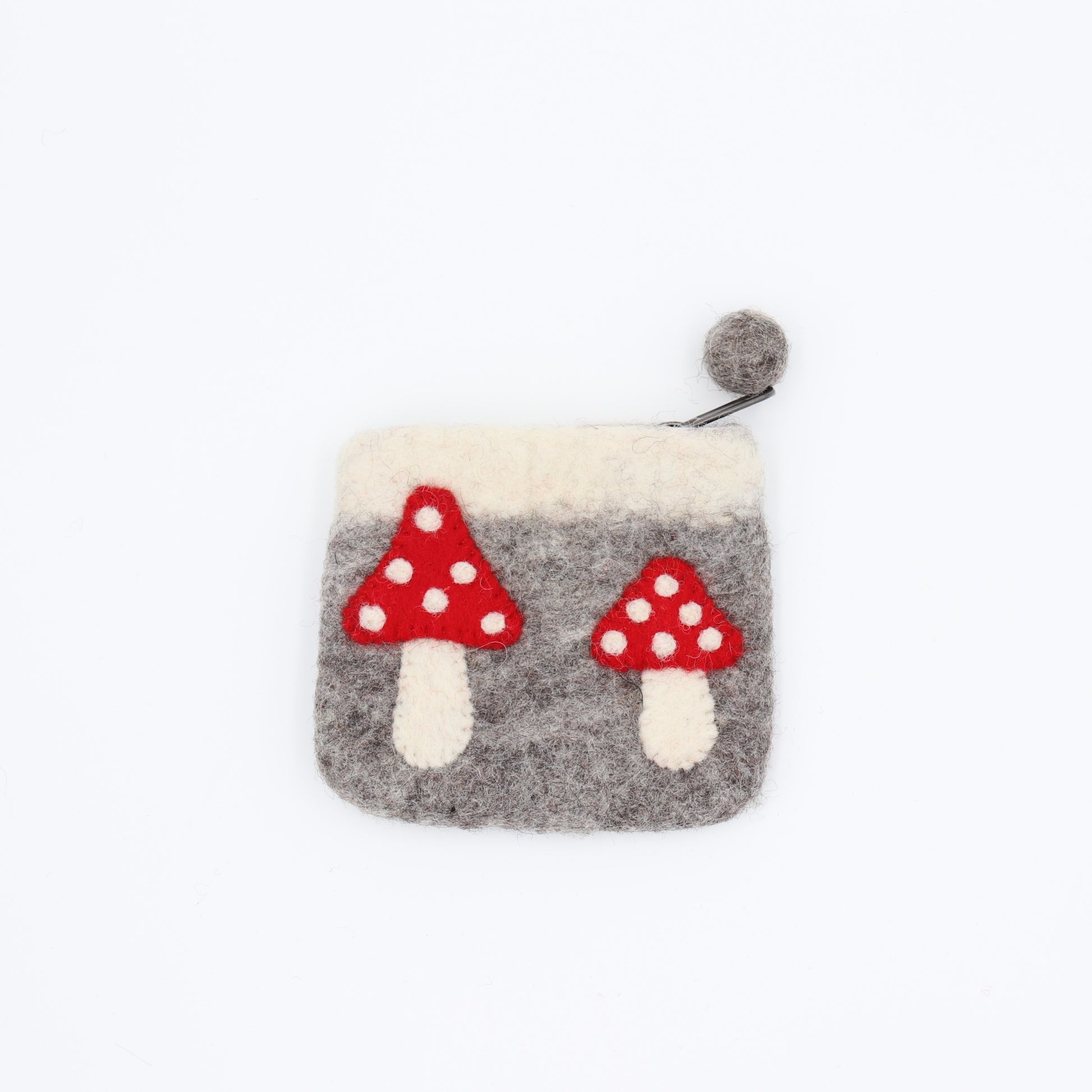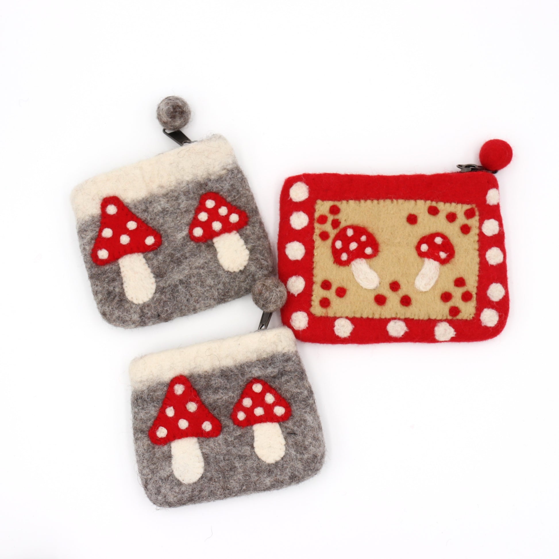 Mushroom Felt Wallet - Wool Felt Pouch Hand Carry Coin Purse