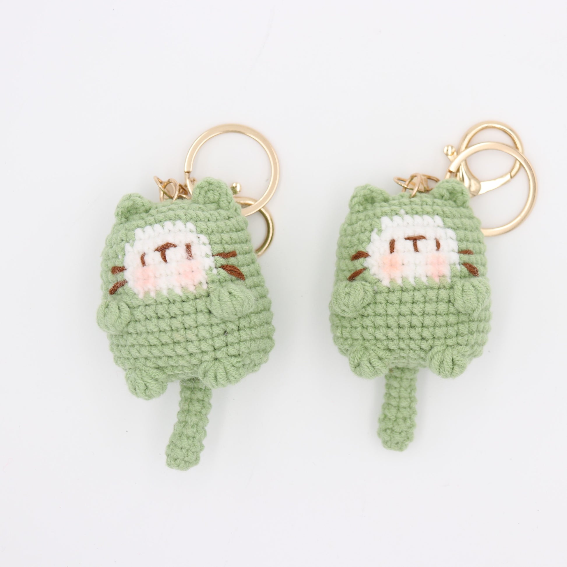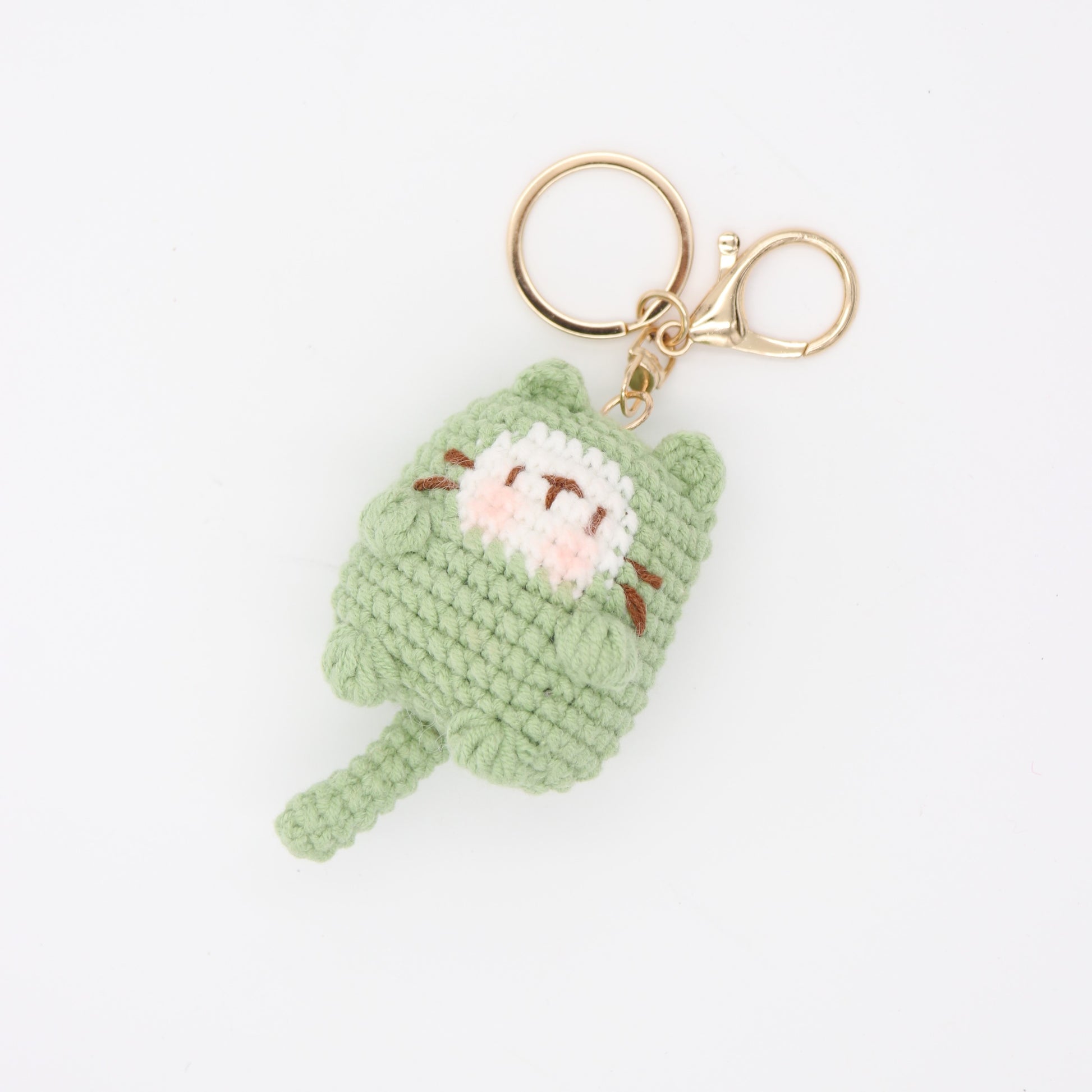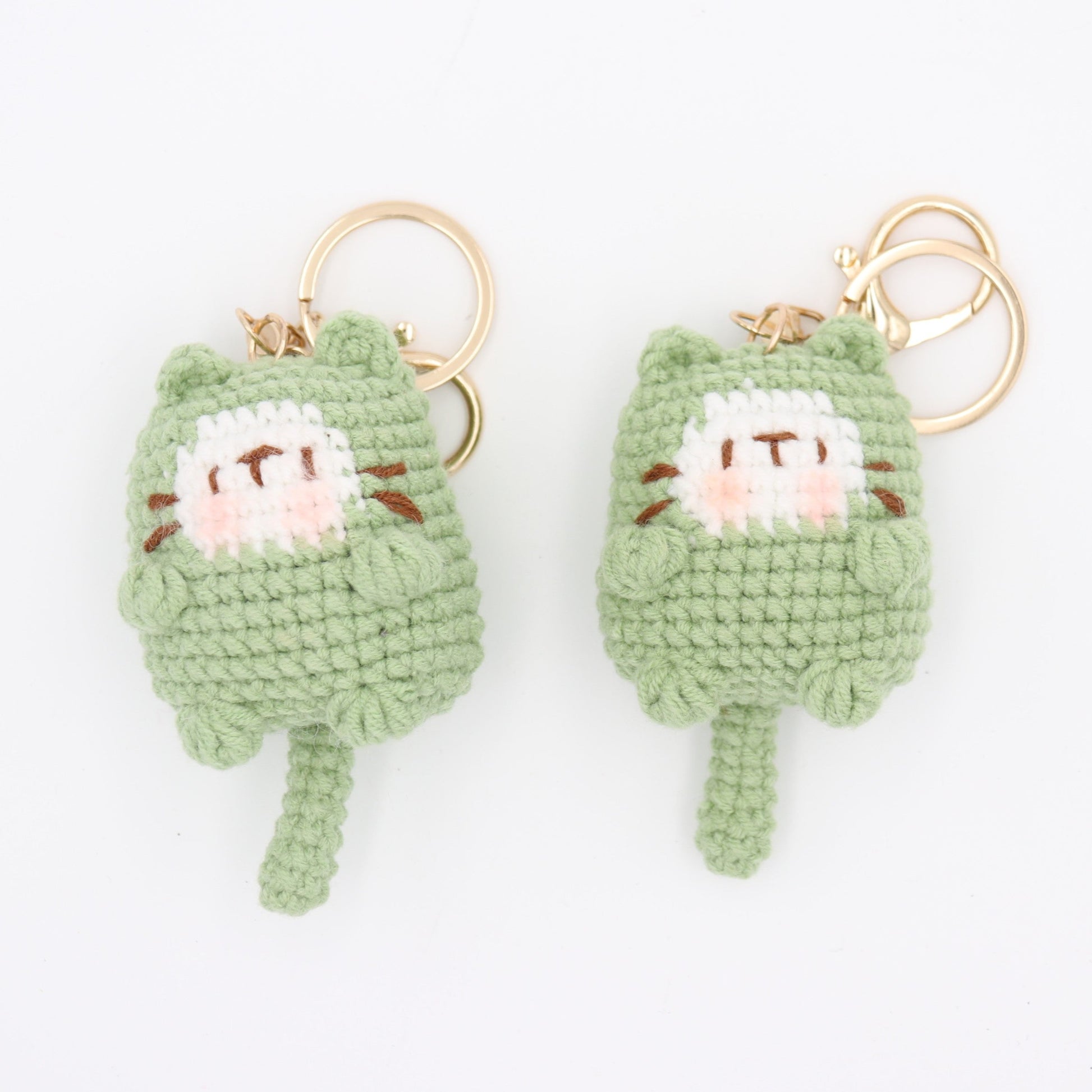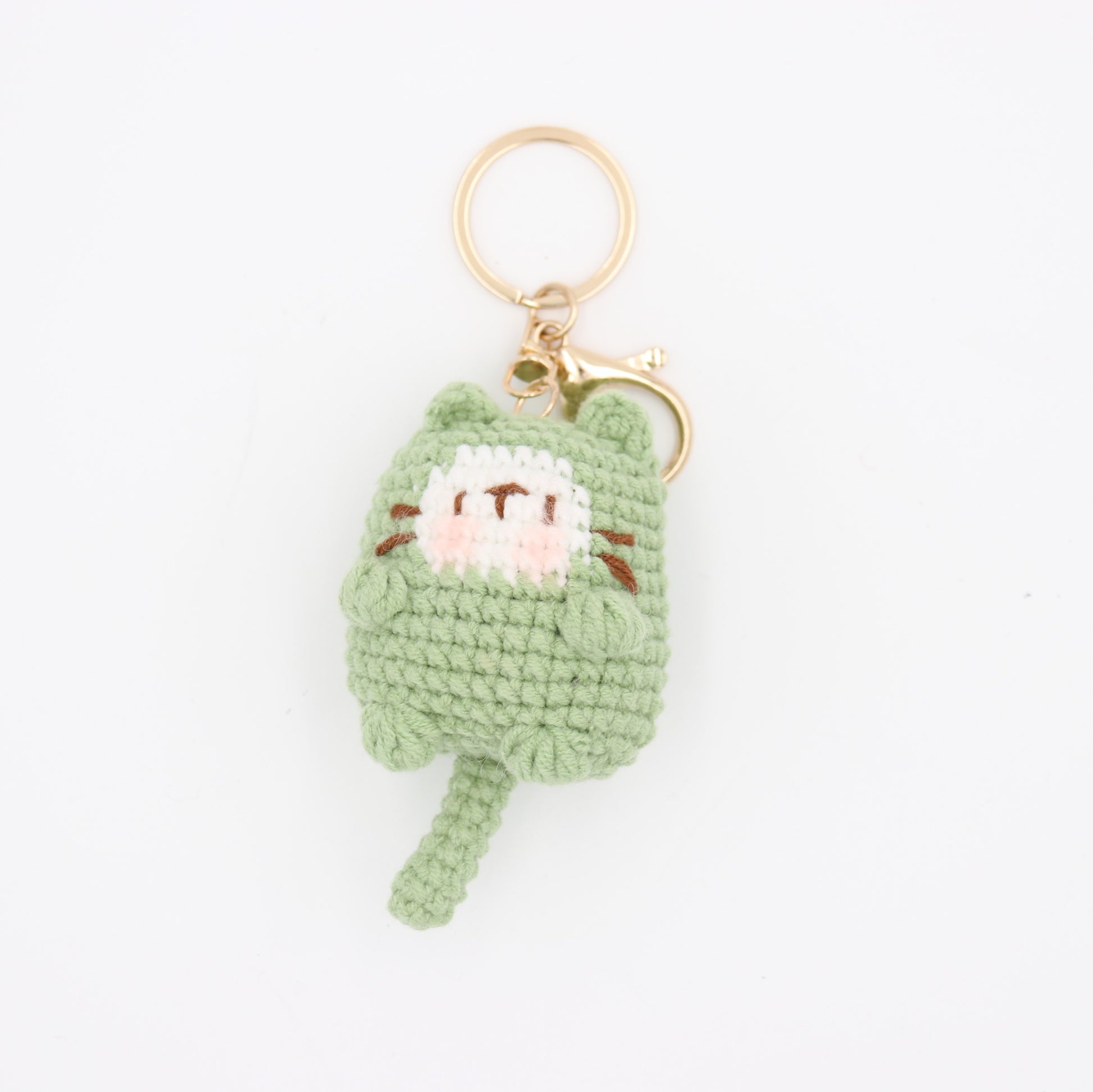 Hand-Crochet Green Cat Keychain - Purrfect in Green Cat