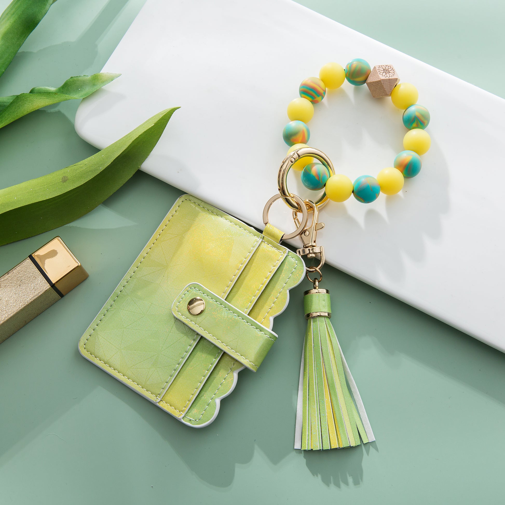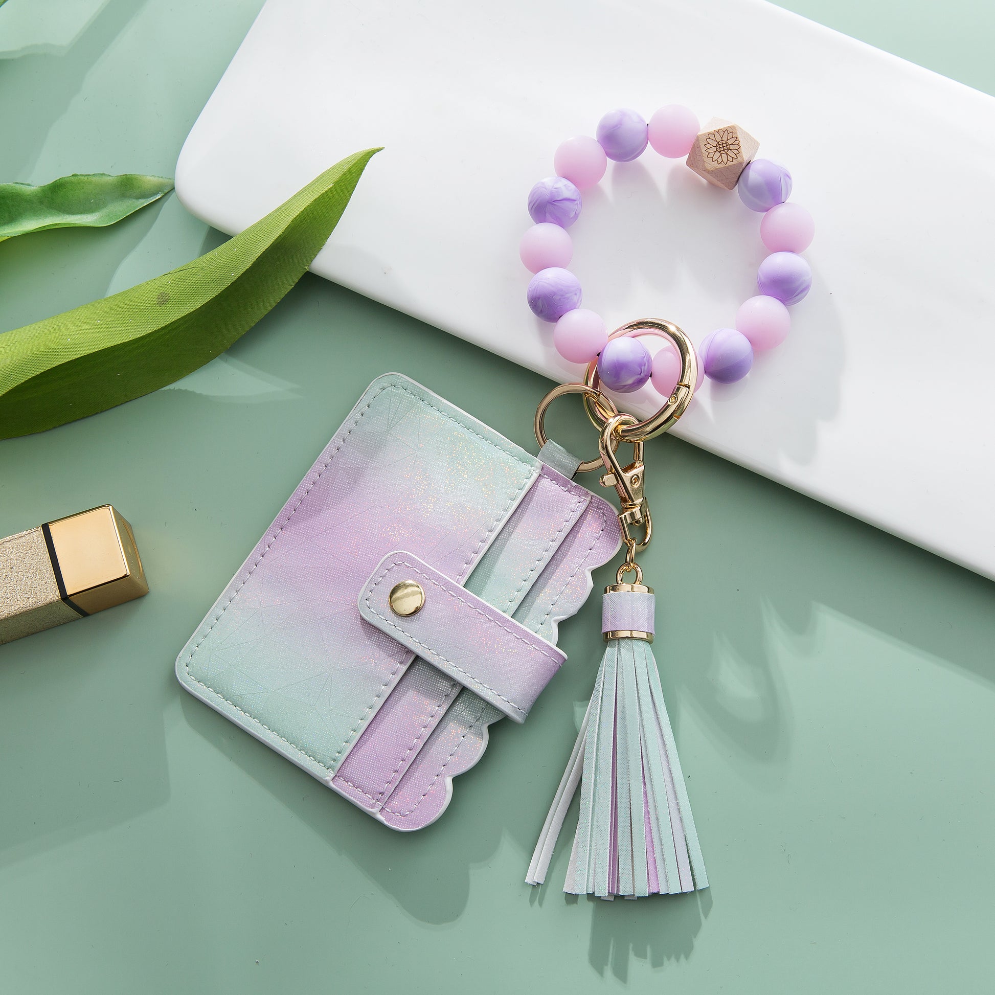 Silicone Wristlet - Wallet Keychain Card holder Case with Glow-In-the-Dark Bracelet - Fun Accessory with 90s Vibes