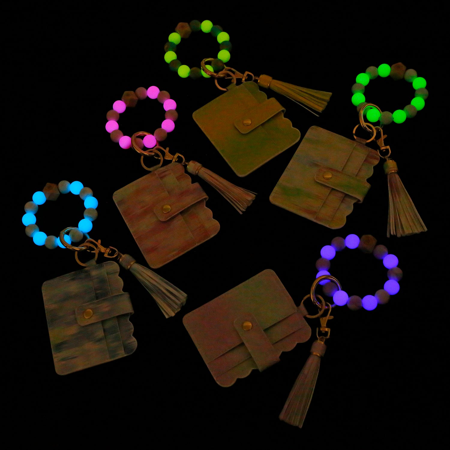 - Material: Vegan leather, glow-in-the-dark silicone, wood bead