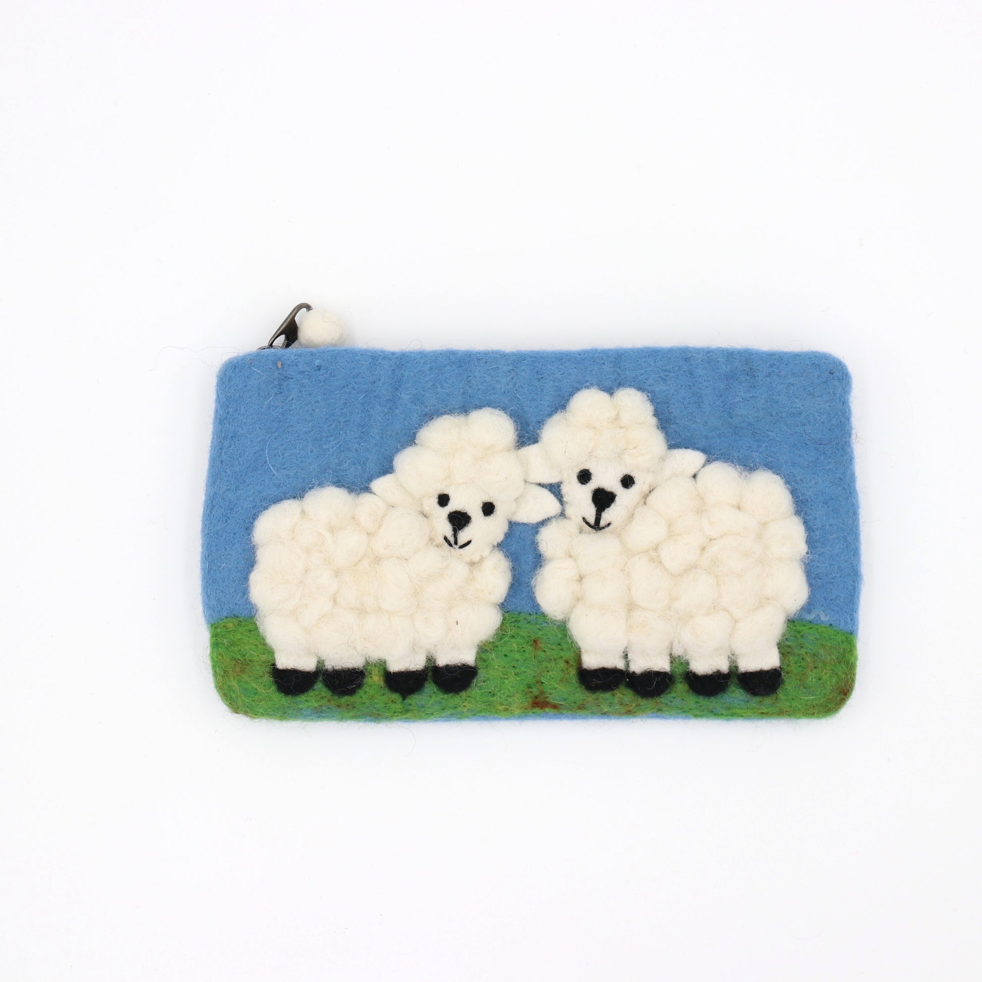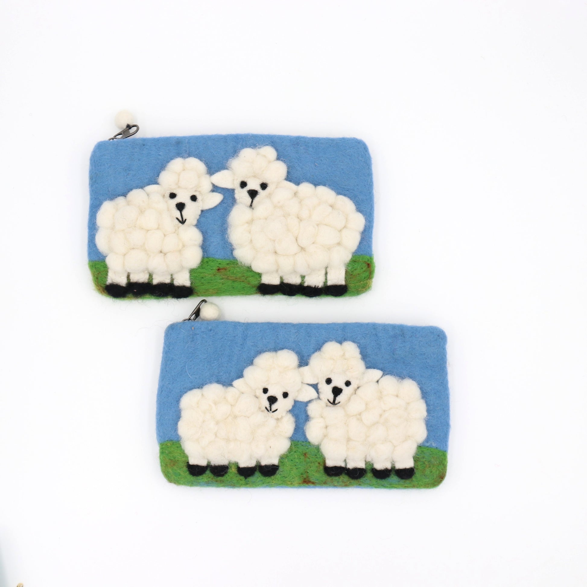 Smiling Sheep Felt Wallet - Wool Felt Pouch Hand Carry Coin Purse