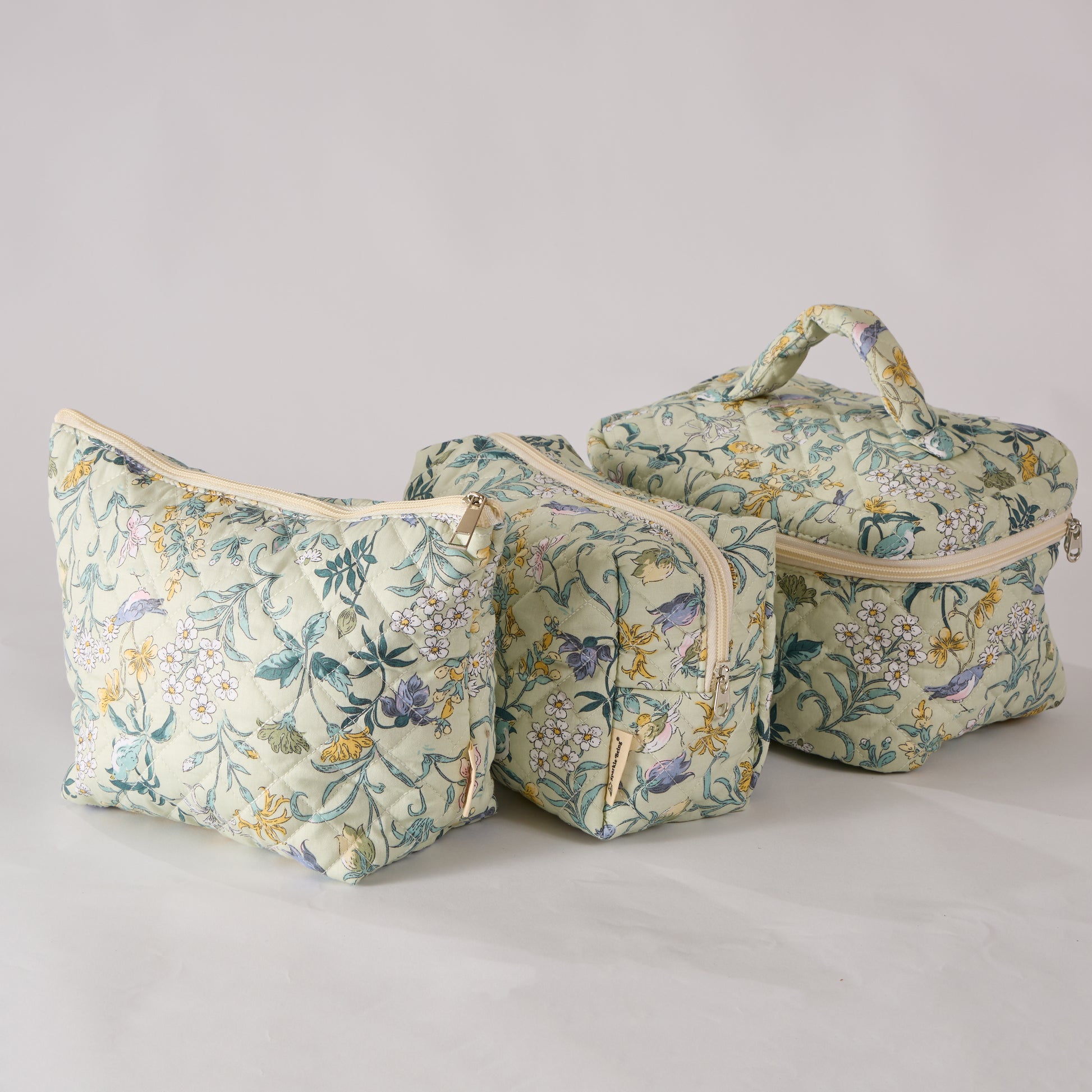 Spring Serenity Floral Quilted Makeup Bag - Small Pouch Travel Toiletry Organizer