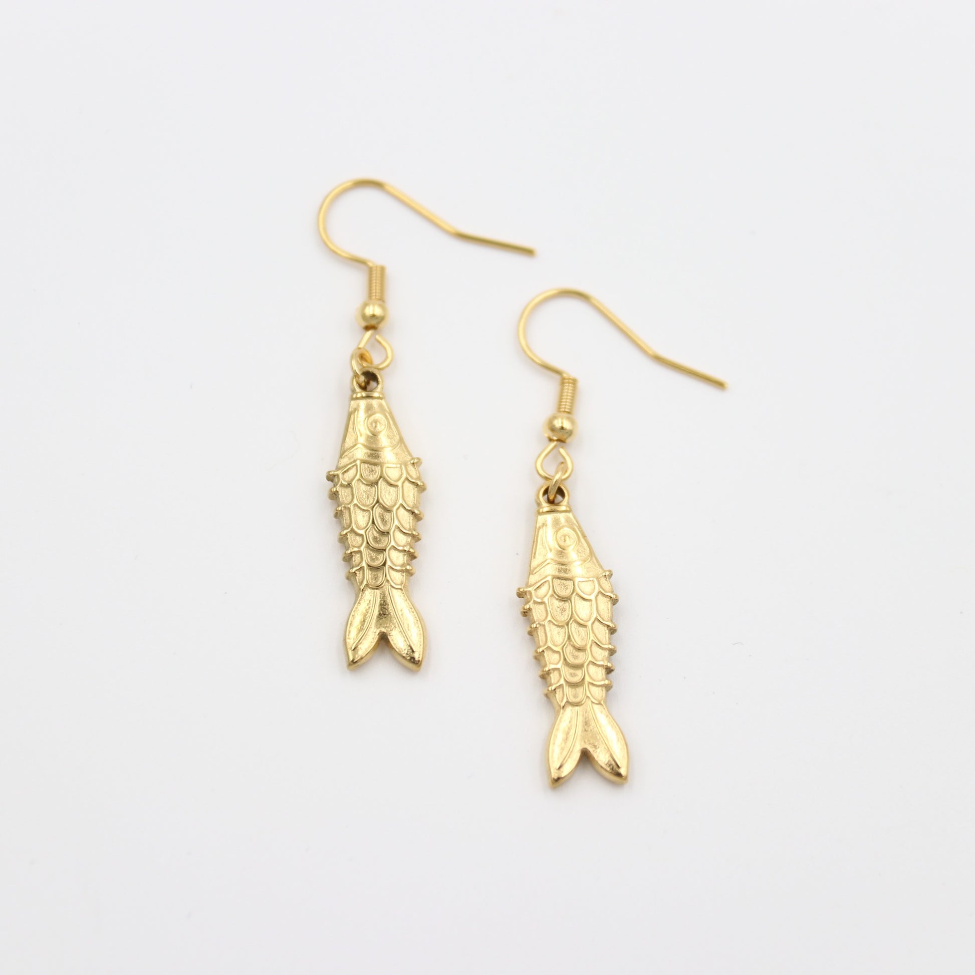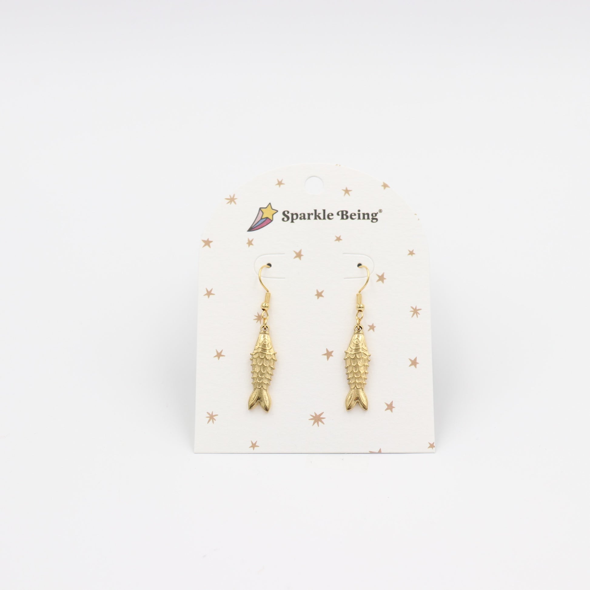 Make a splash with these charming Golden Fish earrings—the perfect blend of quirky fun and everyday style. Whether you're a lover of aquatic aesthetics or just fishing for compliments, these earrings will reel you in. These fishy friends bring movement, shine, and a whole lot of personality to your look. Great with beachwear, festival fits, or as a playful twist on your everyday outfit
