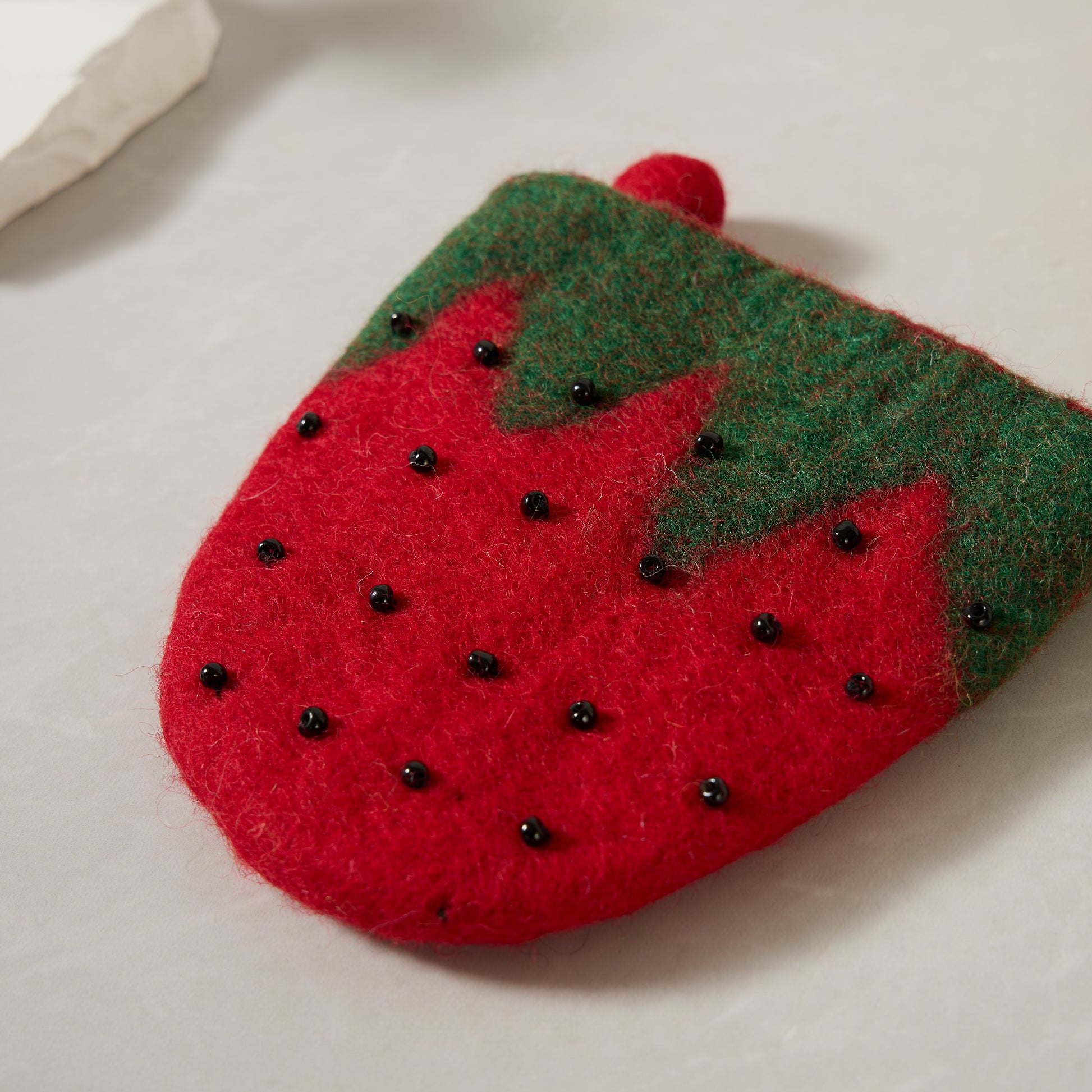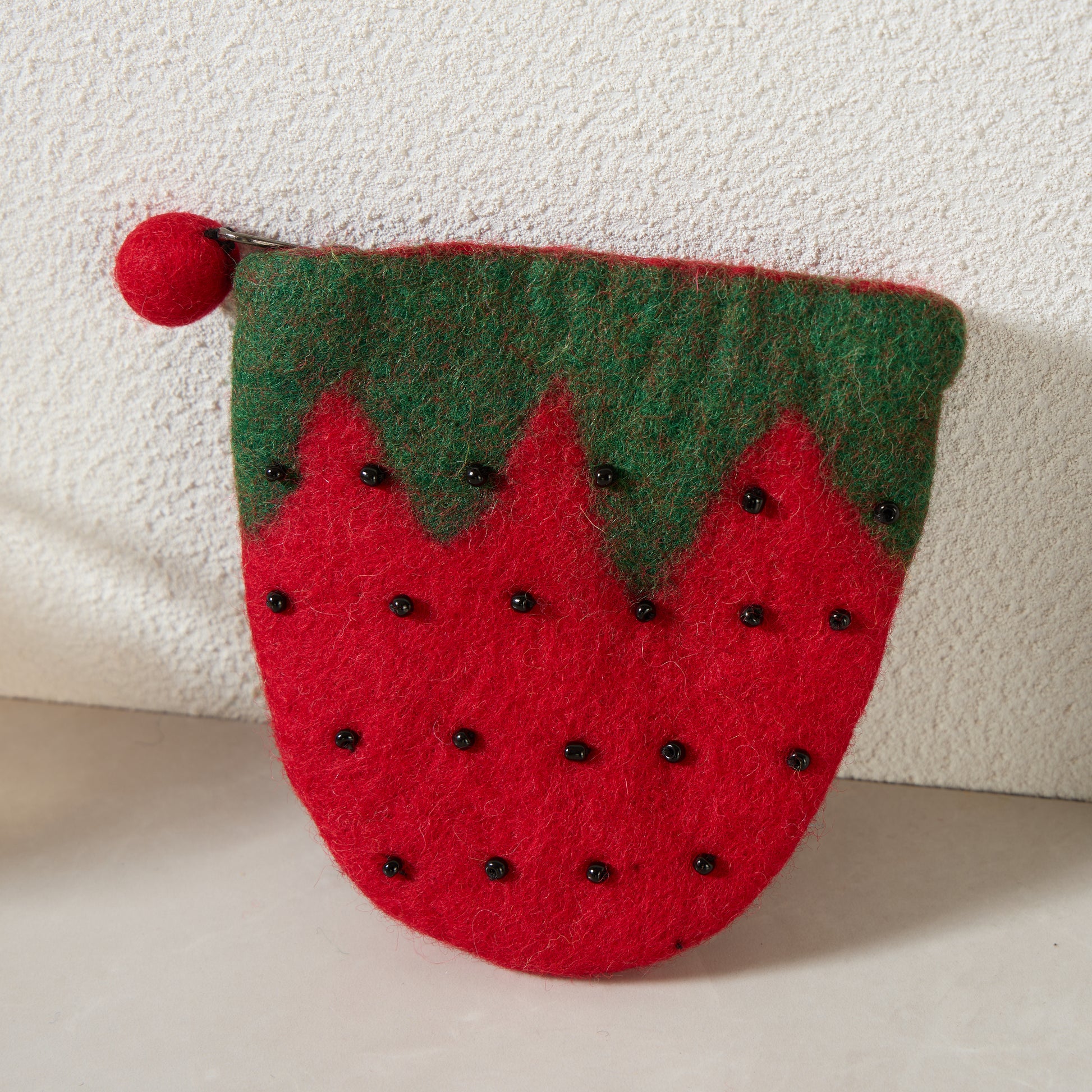Strawberry Felt Wallet - Wool Felt Pouch Hand Carry Coin Purse