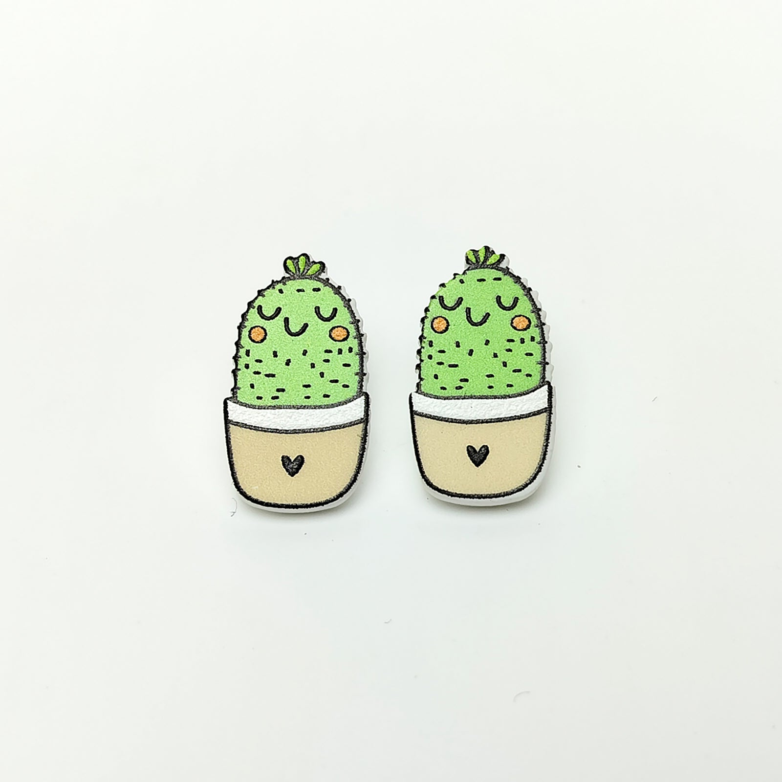 Adorable and full of charm, these smiling cactus studs sit in a cream pot decorated with a tiny heart. With their whimsical design and cozy personality, they make the perfect gift for plant lovers and daydreamers alike.