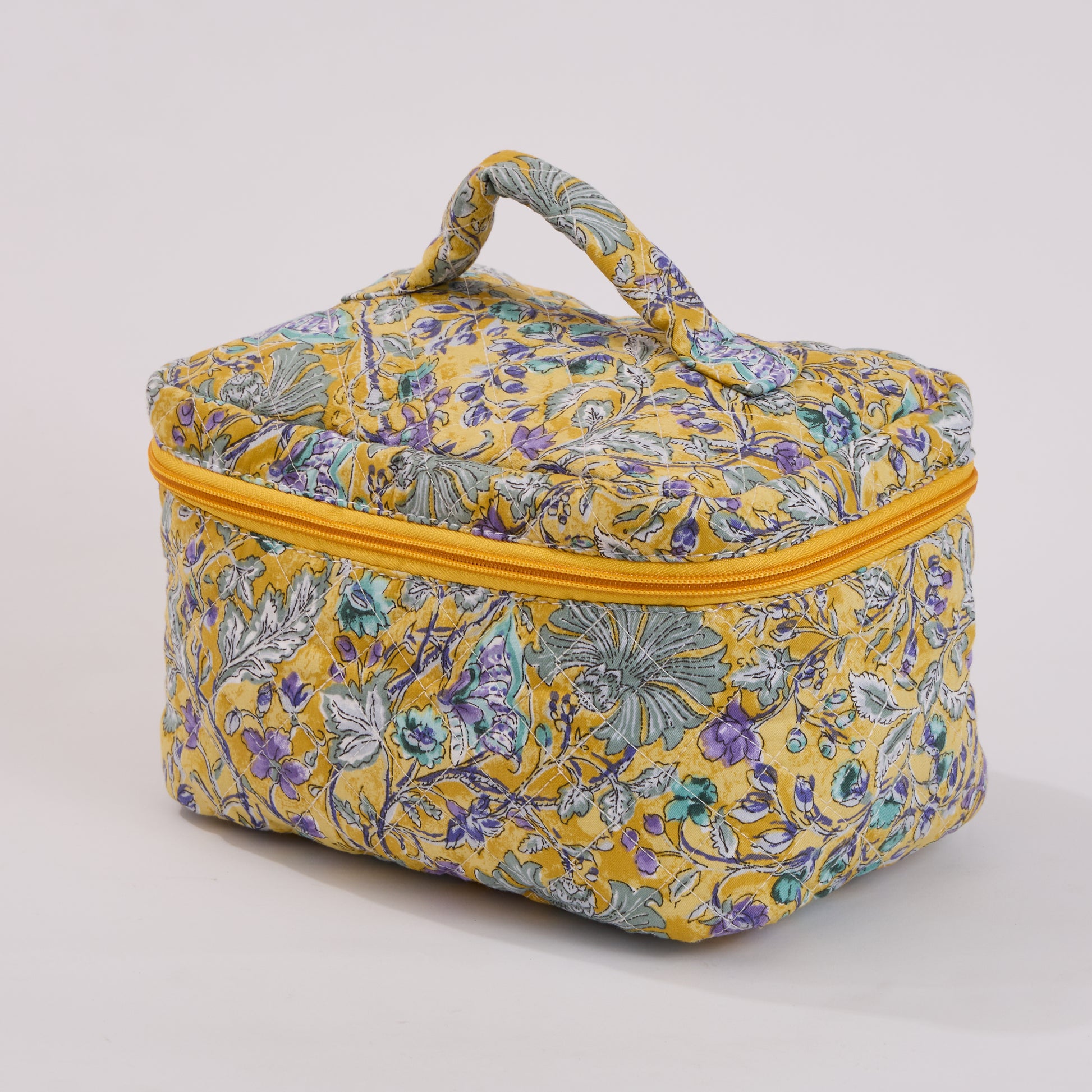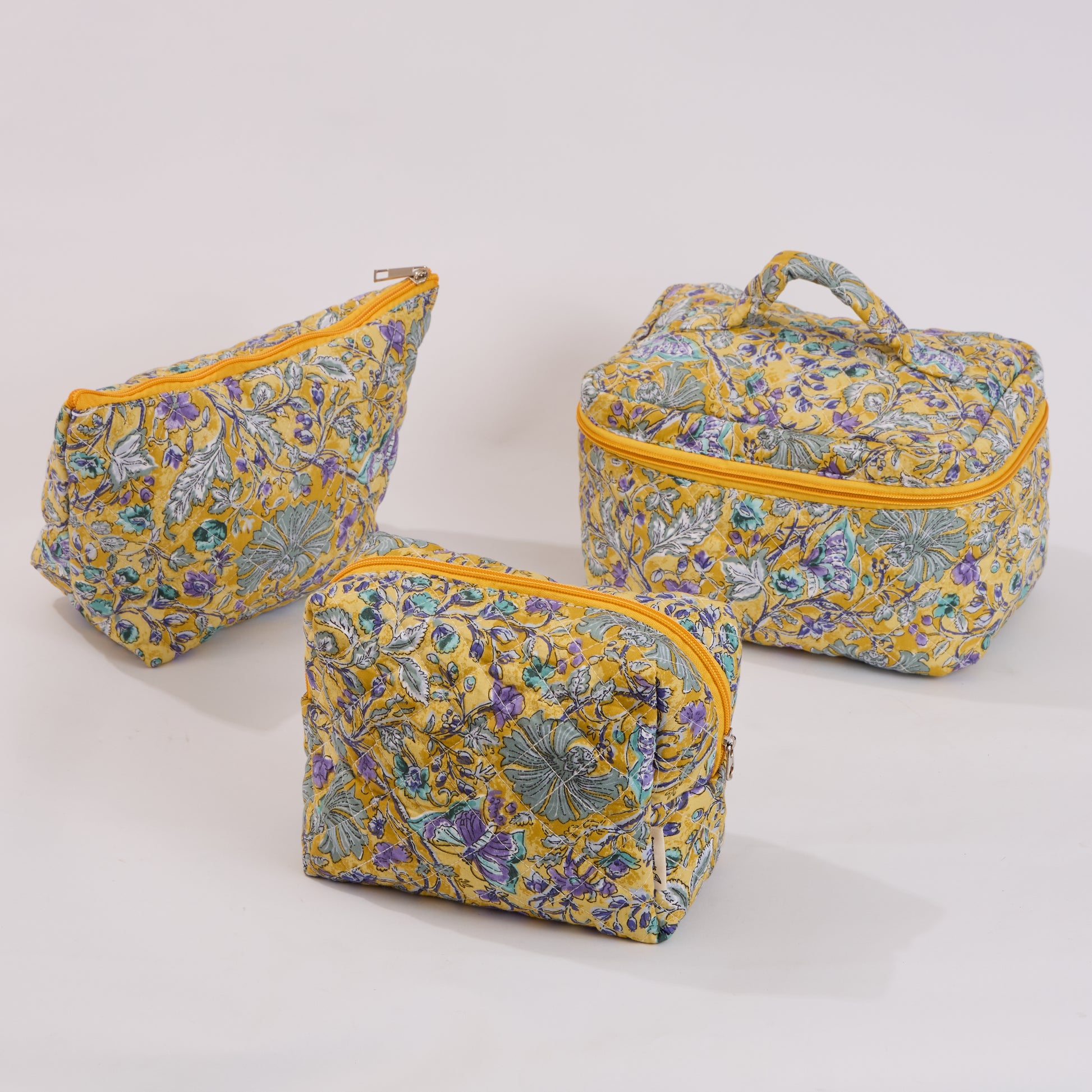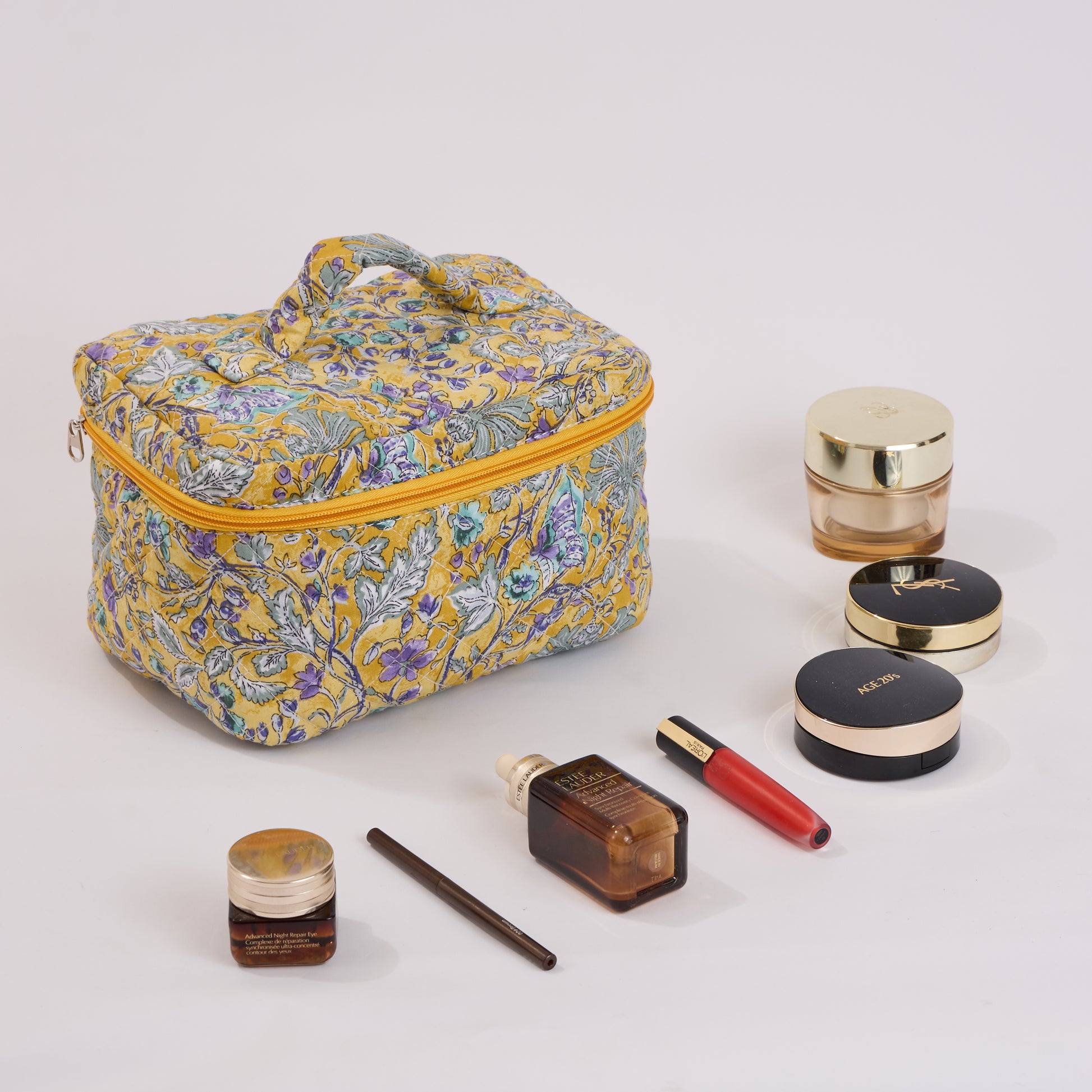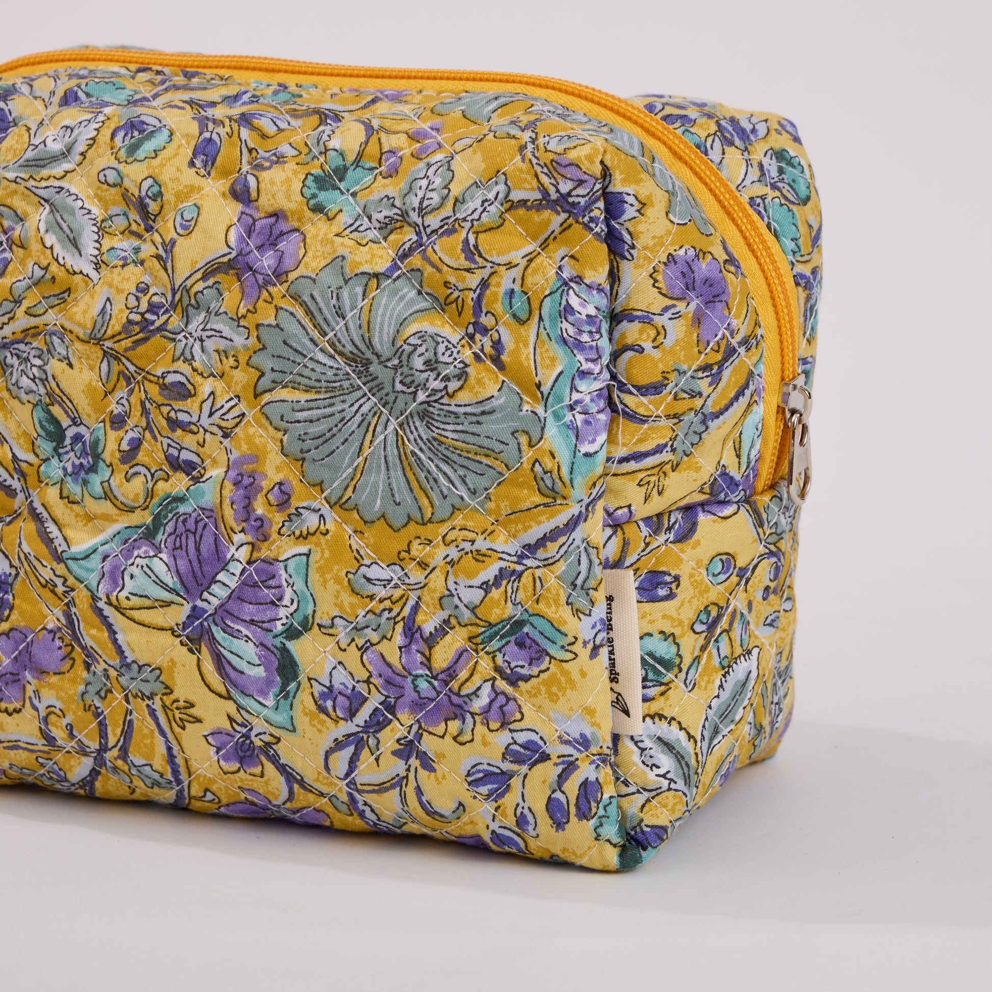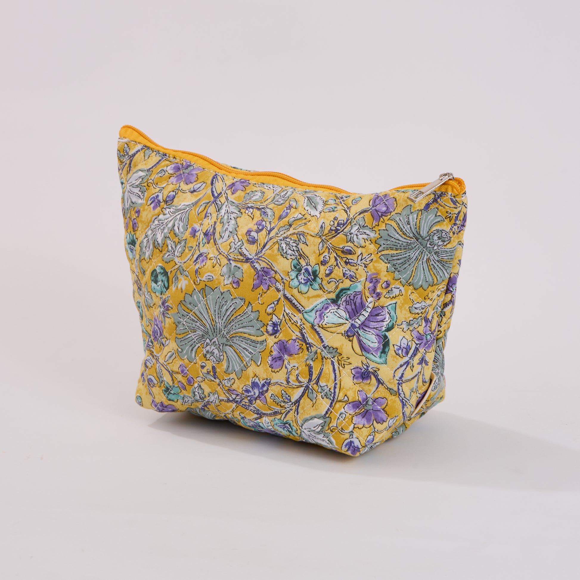 Stay organized on the go with this cute and stylish Floral Quilted Makeup Pouch! Made with a quilted material, this small cosmetic bag features a beautiful floral and butterfly design that is sure to catch everyone's eye. The pouch has a convenient zipper closure to keep your items secure, making it the perfect travel-friendly toiletry bag.