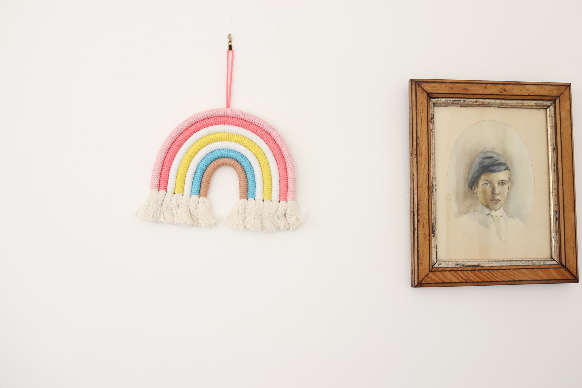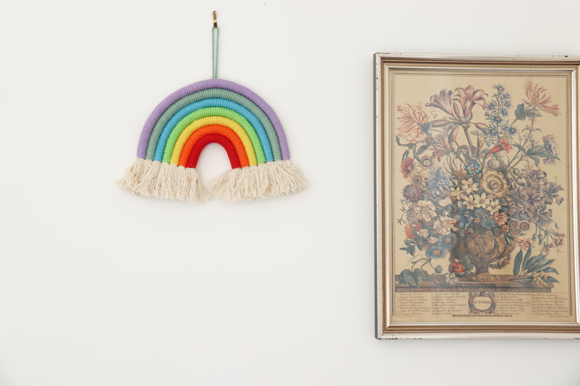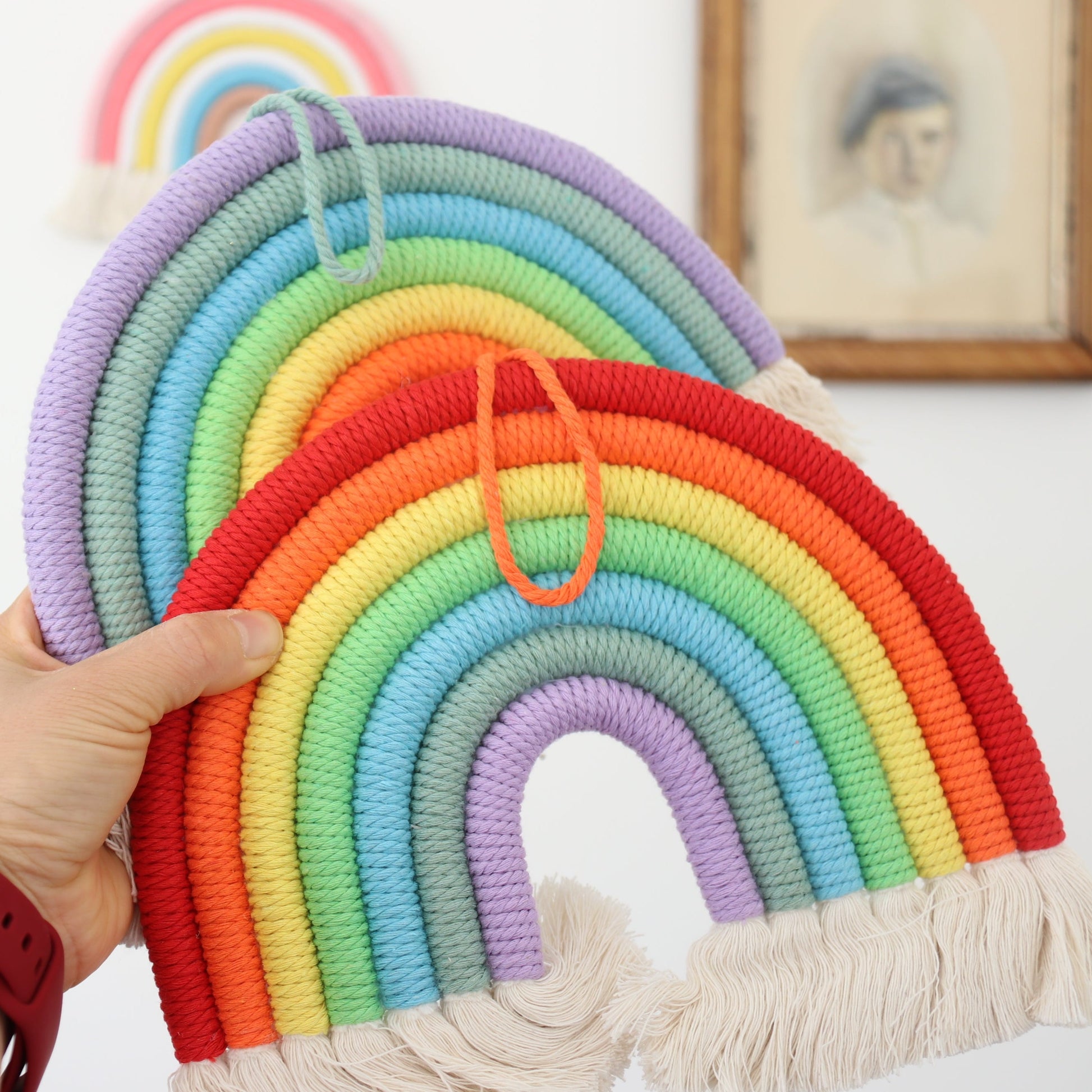 Hand-Woven Macrame Hanging Wall Decoration for Home - Rainbow with Short Tassel