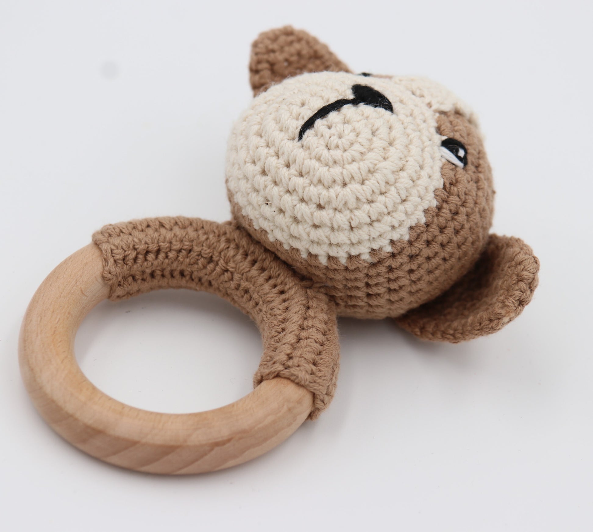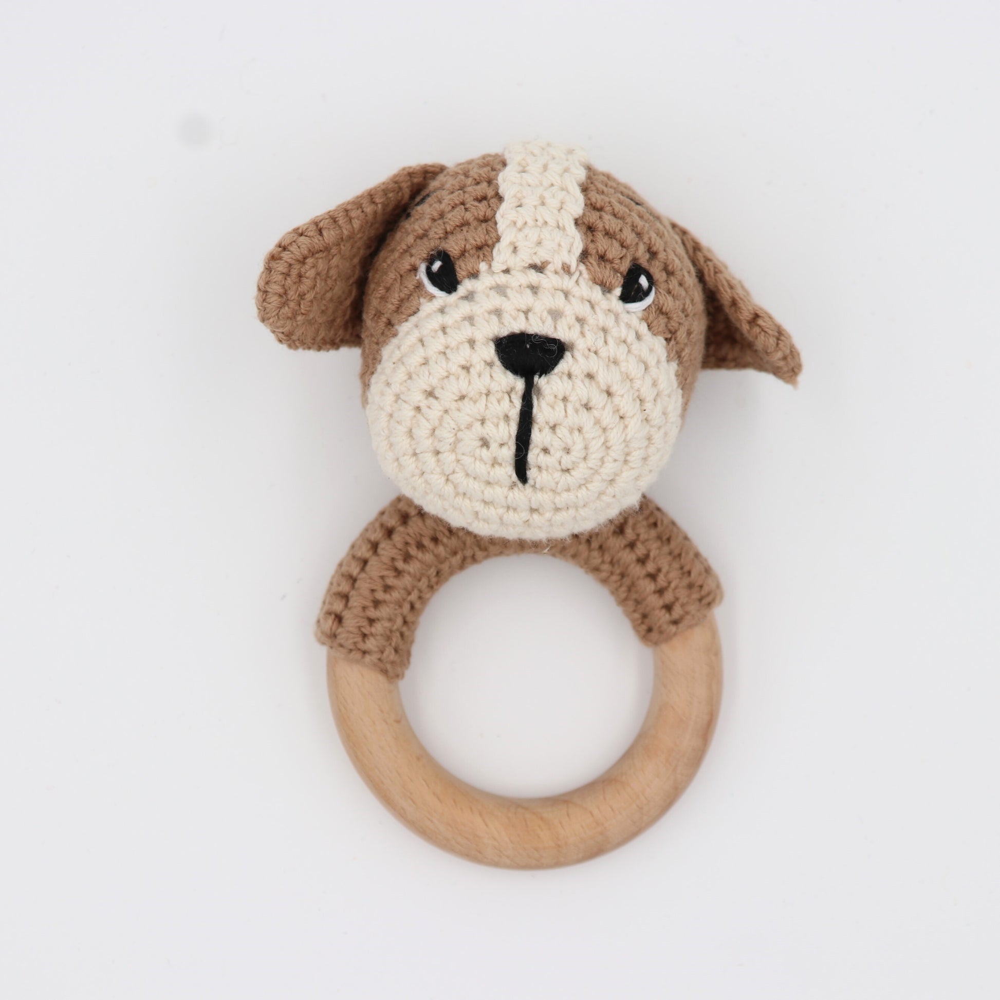 Wooden Baby Rattle Crochet Toy - Puppy