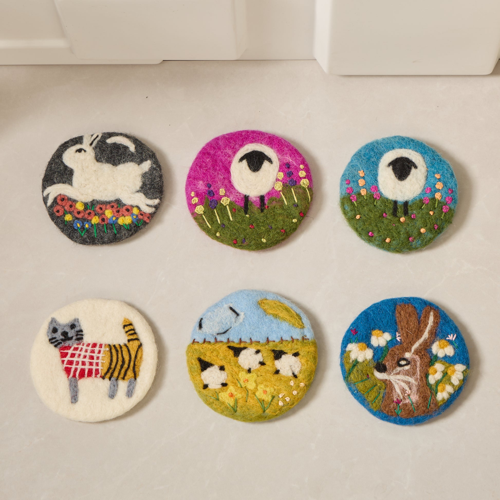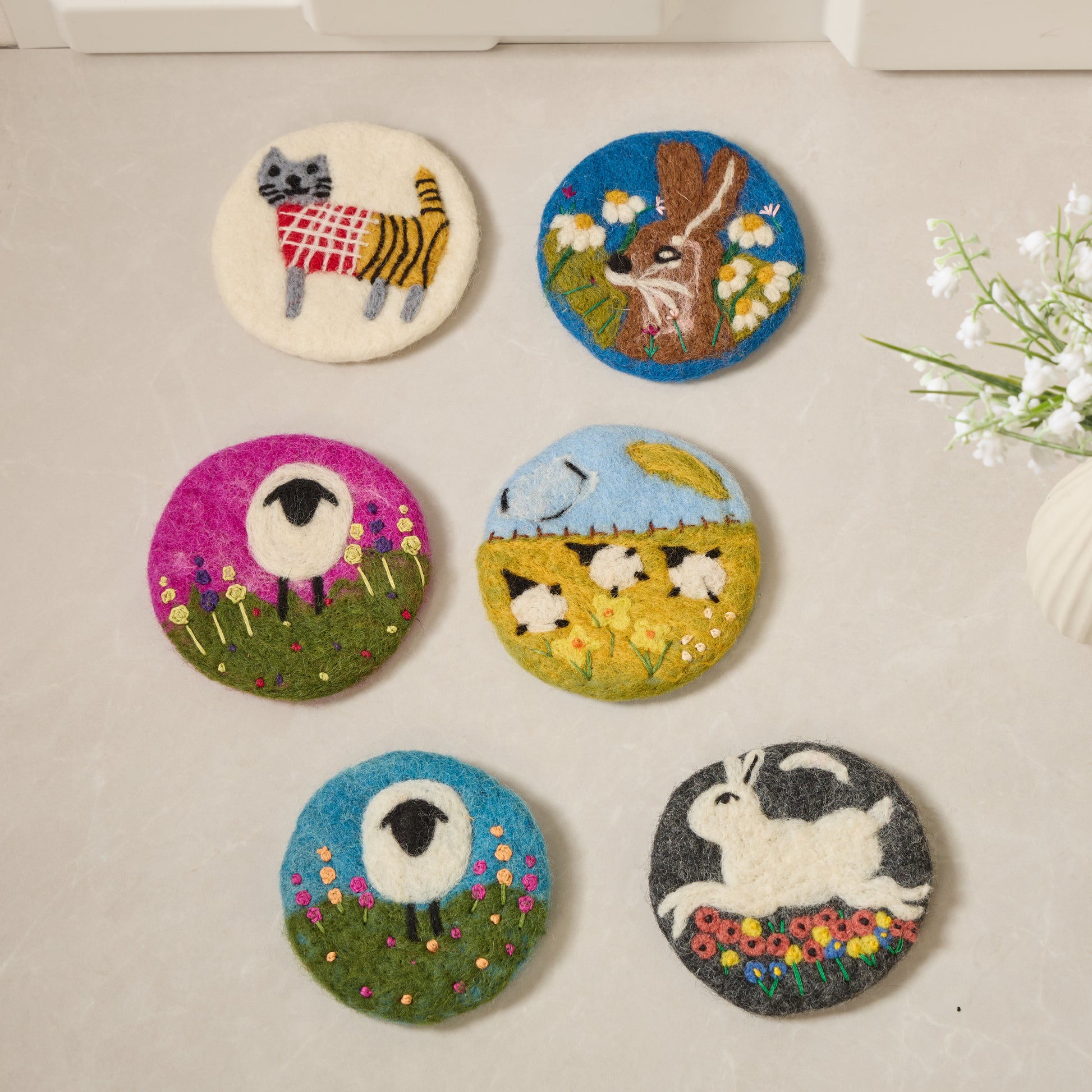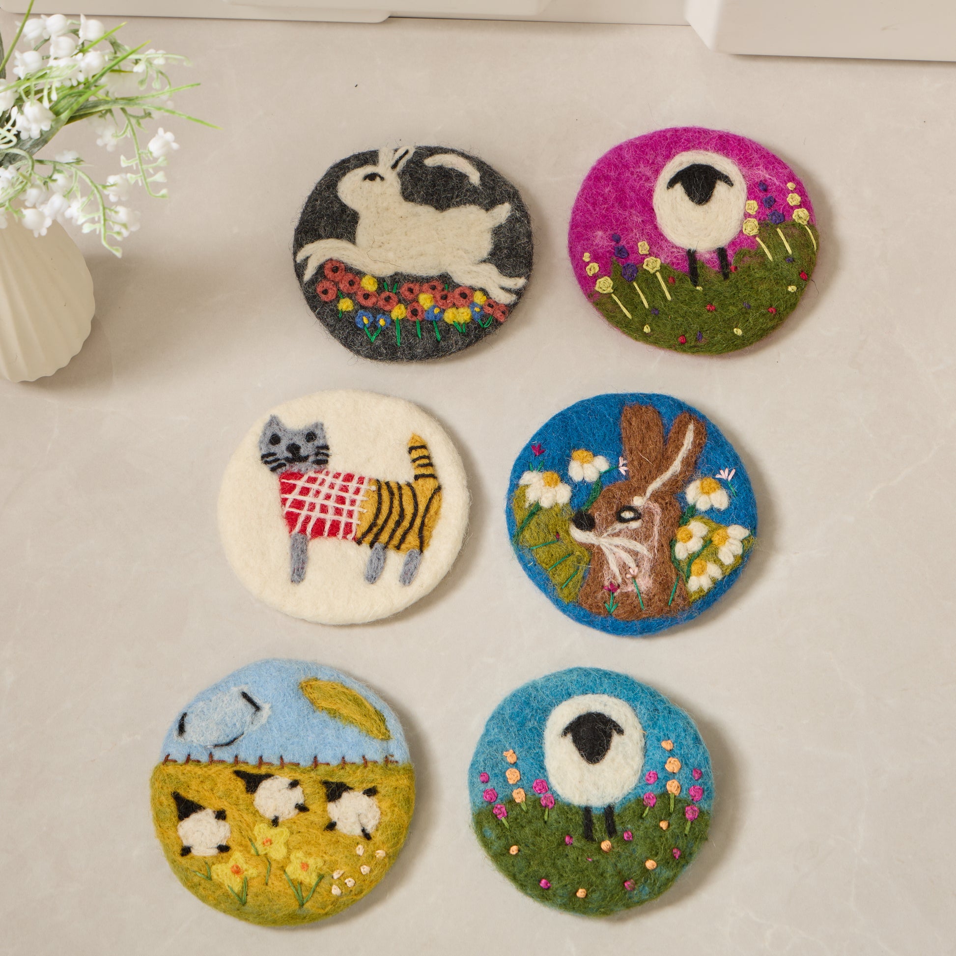 Wool Felt Coffee Cup Mug Table Mat Coasters - Sheep, Bunny, Cat