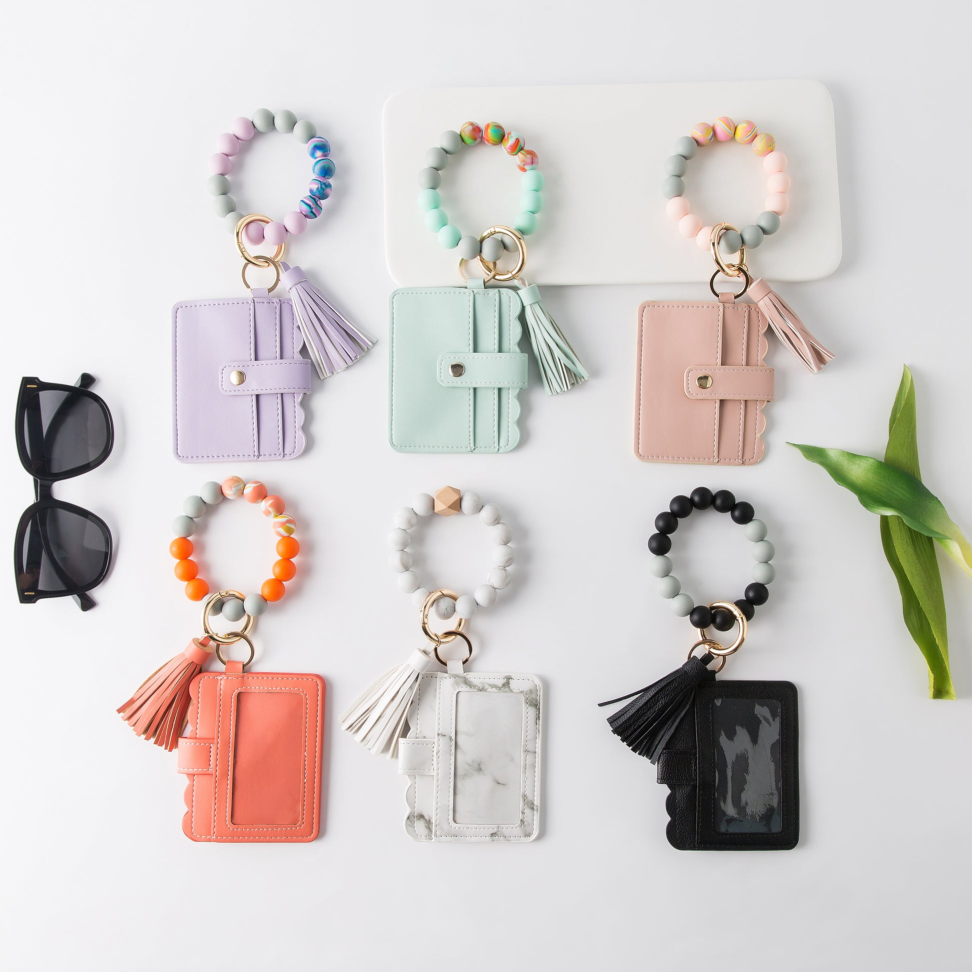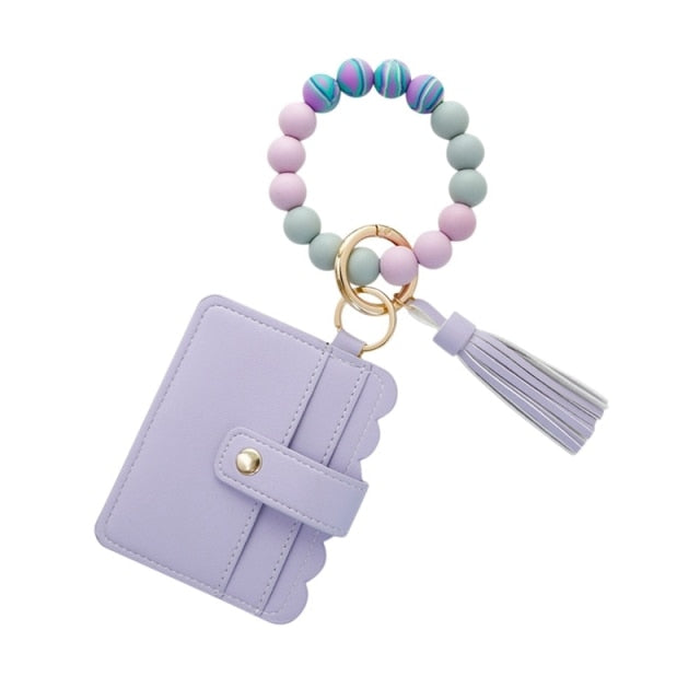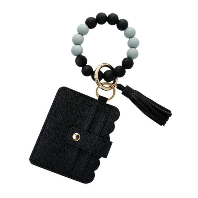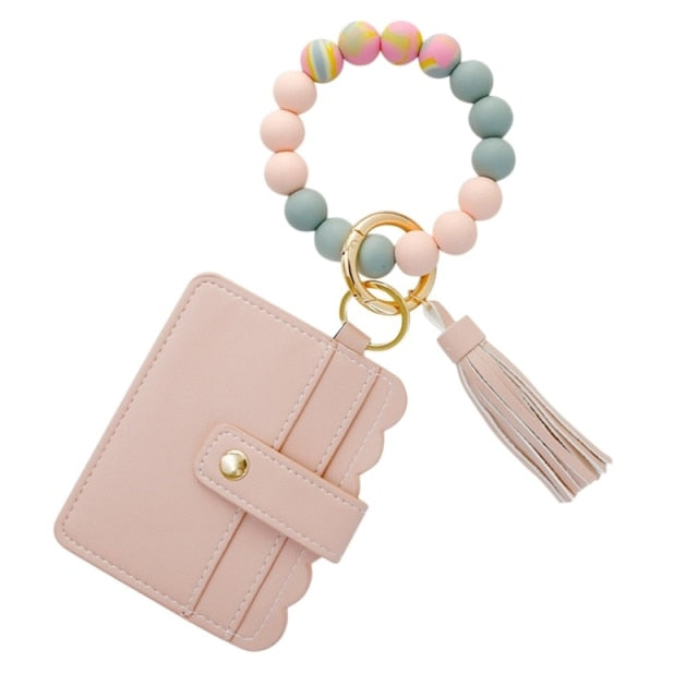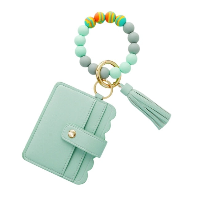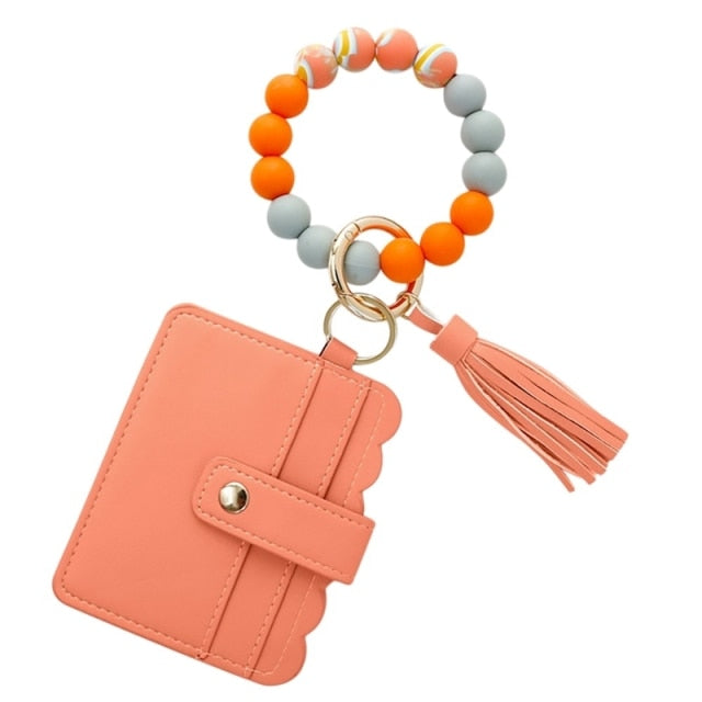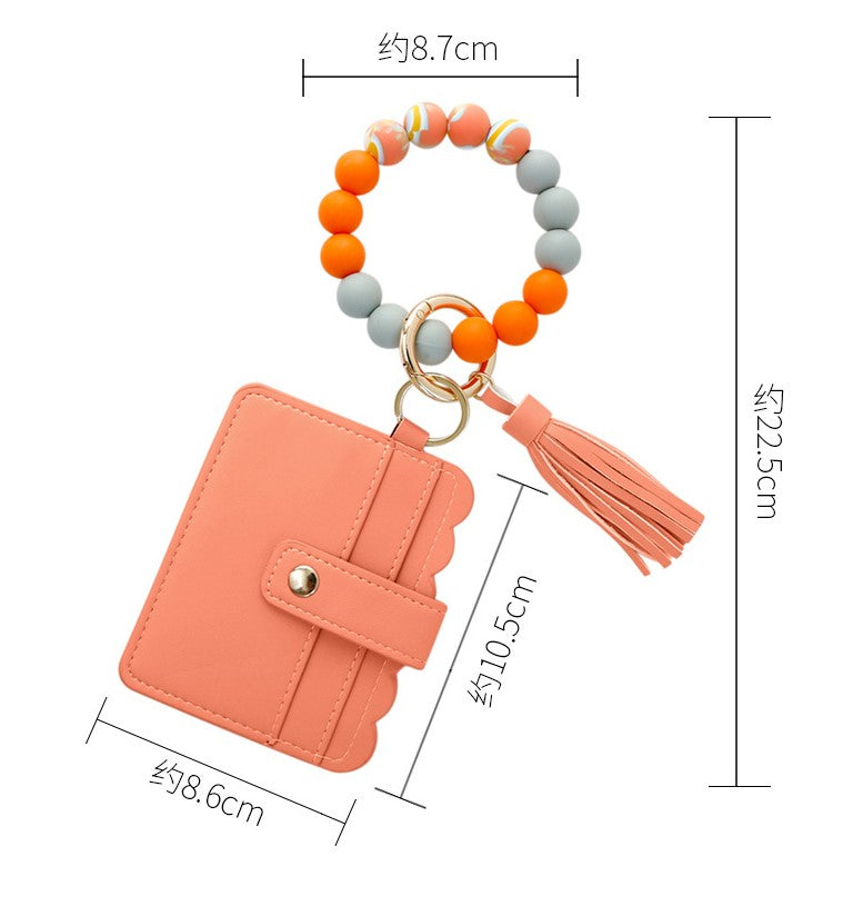 Silicone Tassel Beaded Bangle Wristlet Keychain Bracelet With Card Holder Wallet