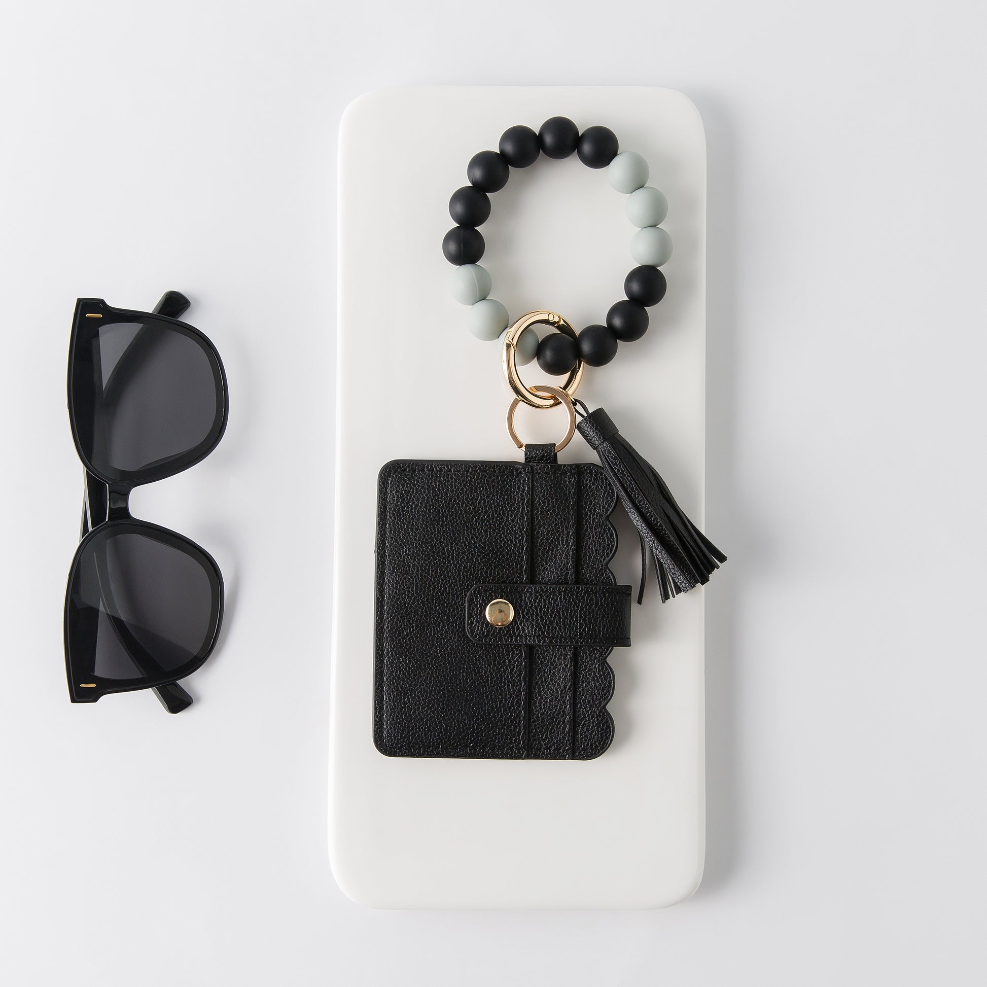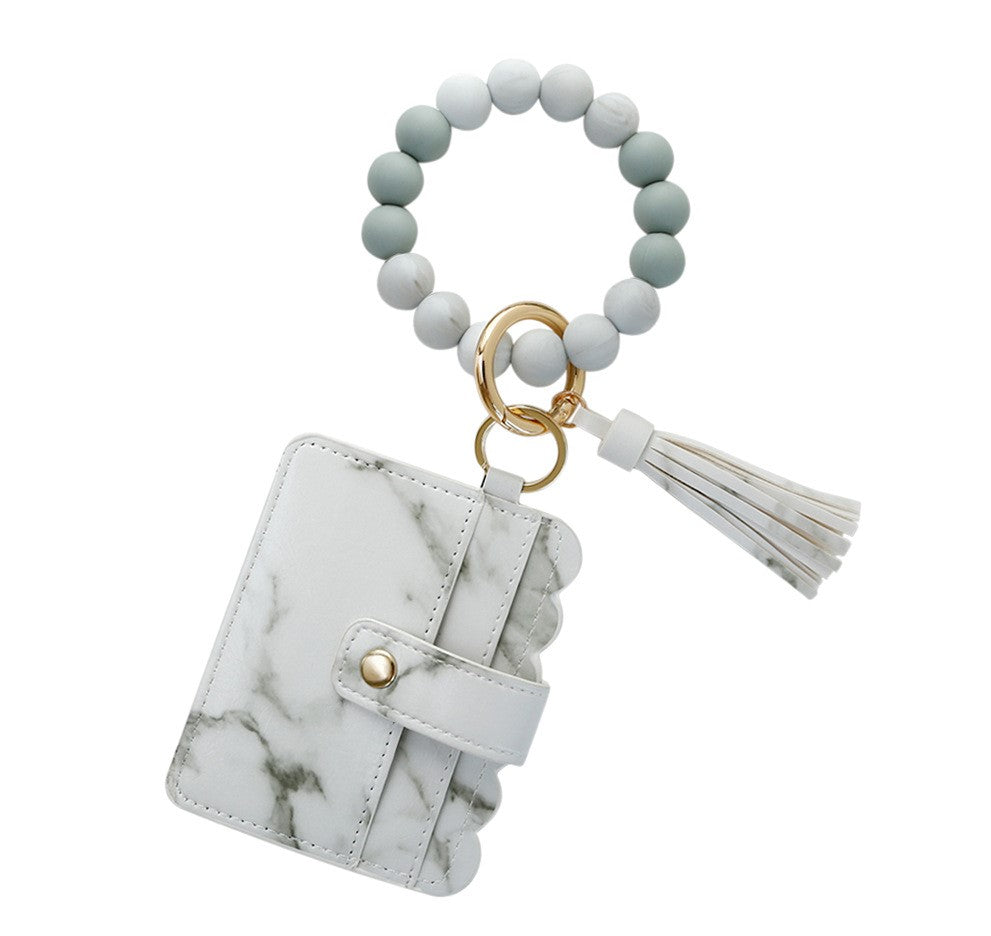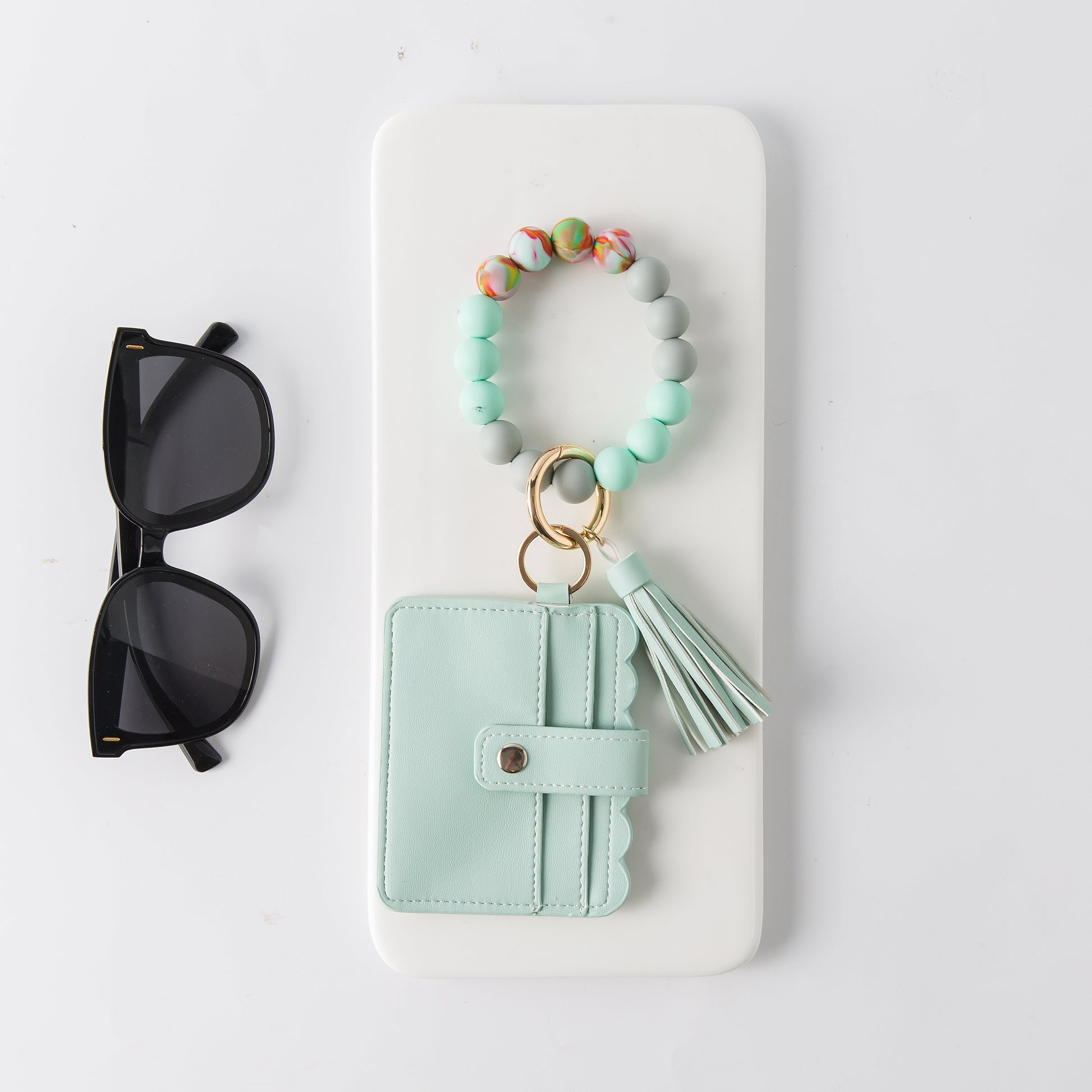 Silicone Tassel Beaded Bangle Wristlet Keychain Bracelet With Card Holder Wallet