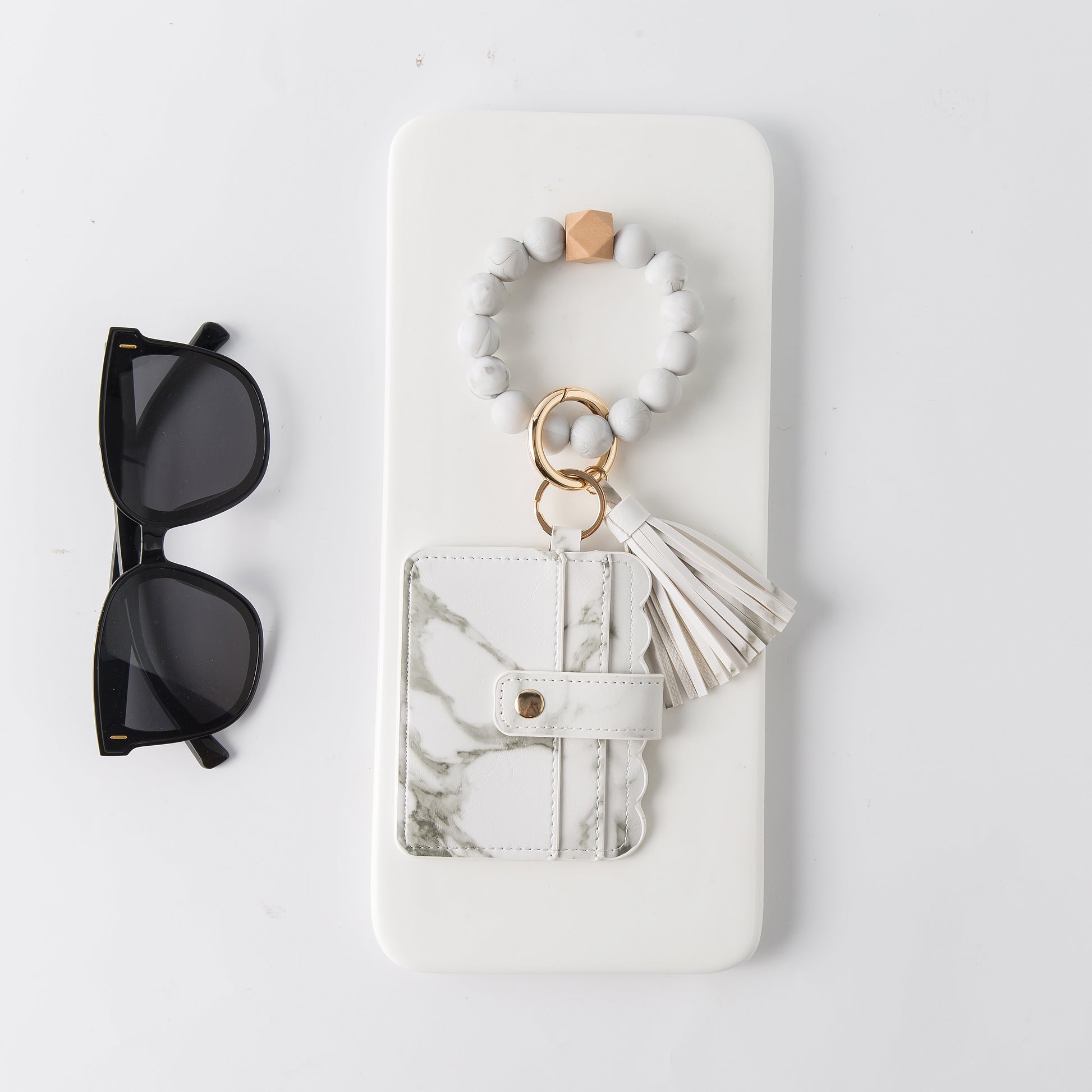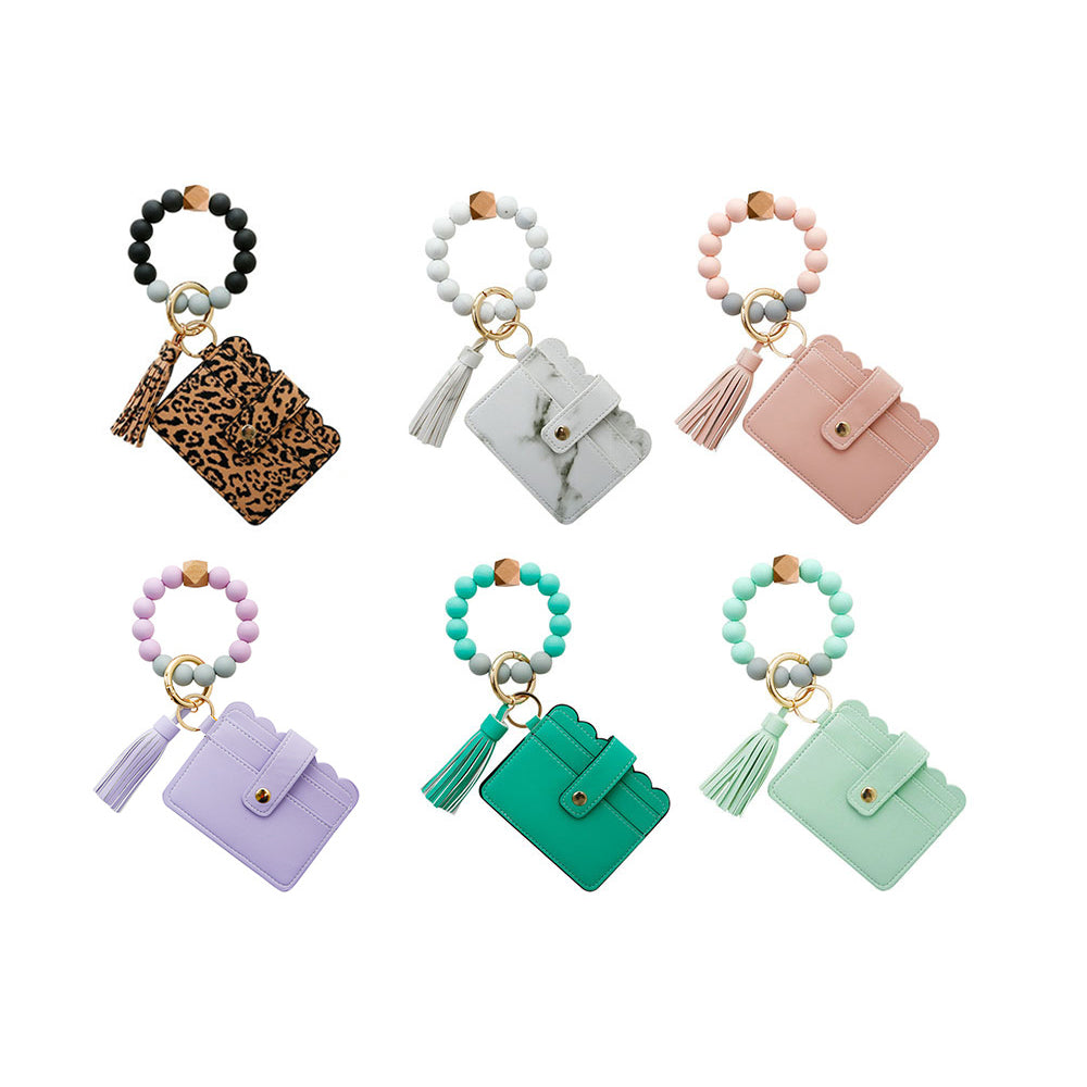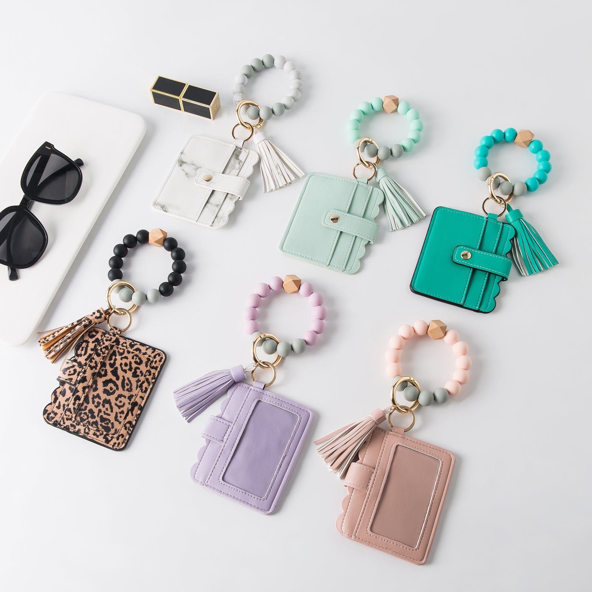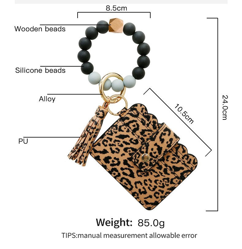 Silicone Beaded Tassel Bracelet Wristlet Bangle Keychain With Card Holder Wallet